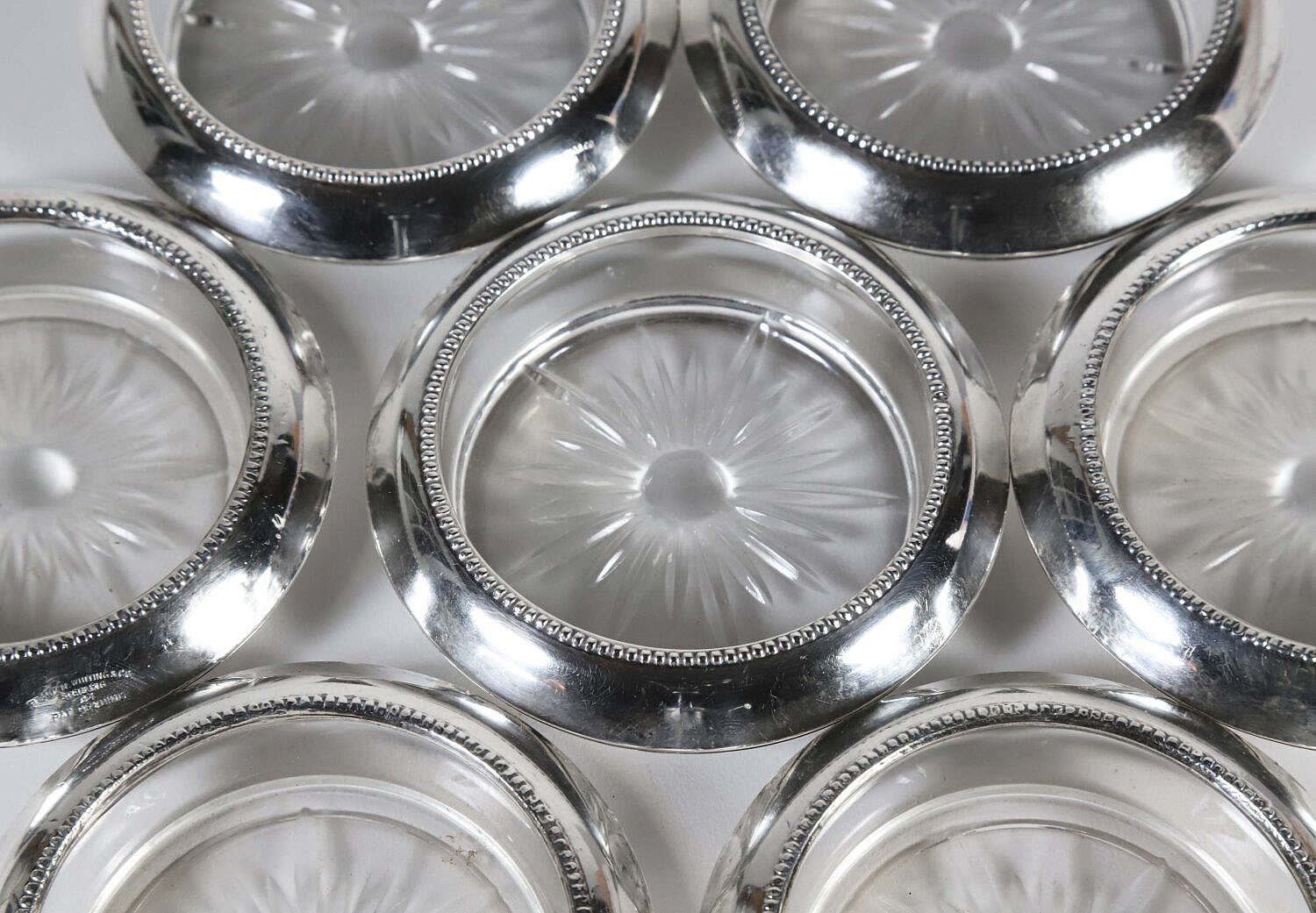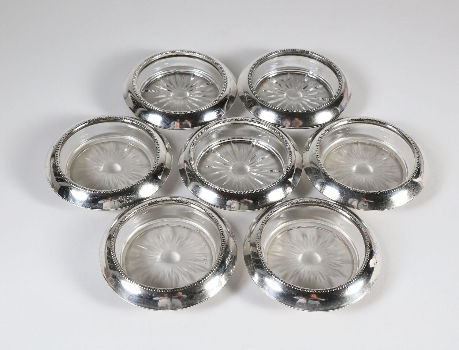 Set of 7 Sterling Silver and Crystal CoastersÂ