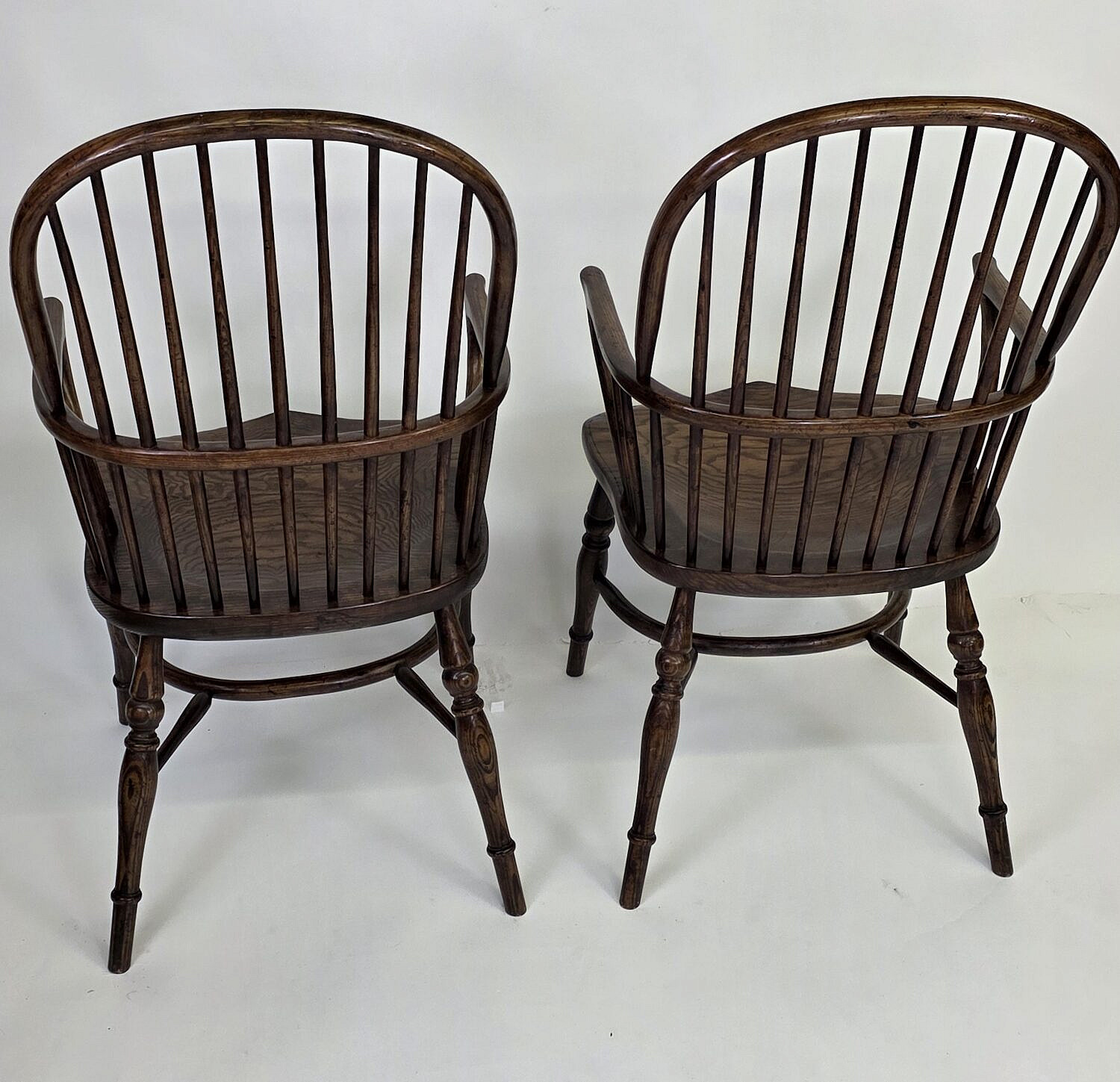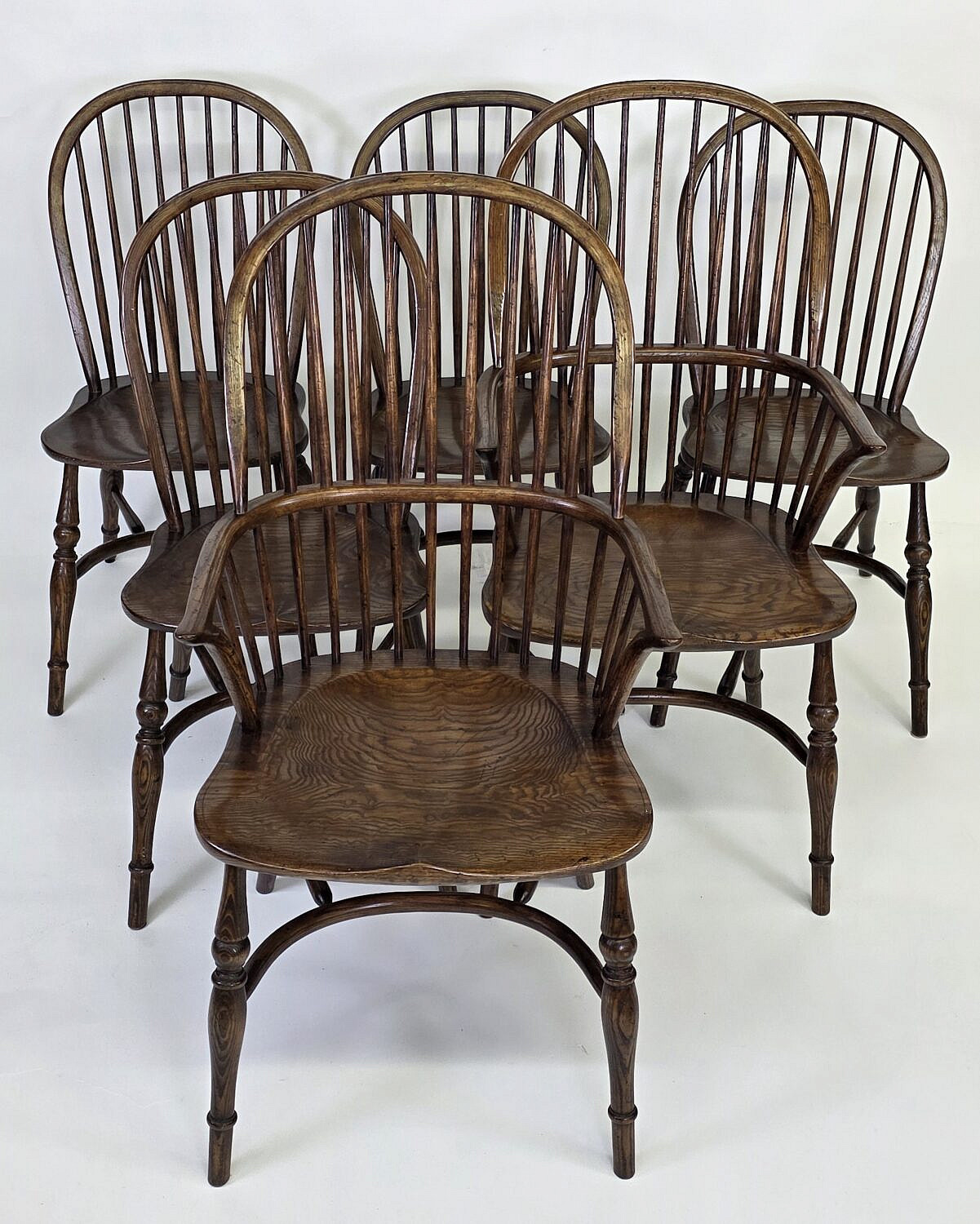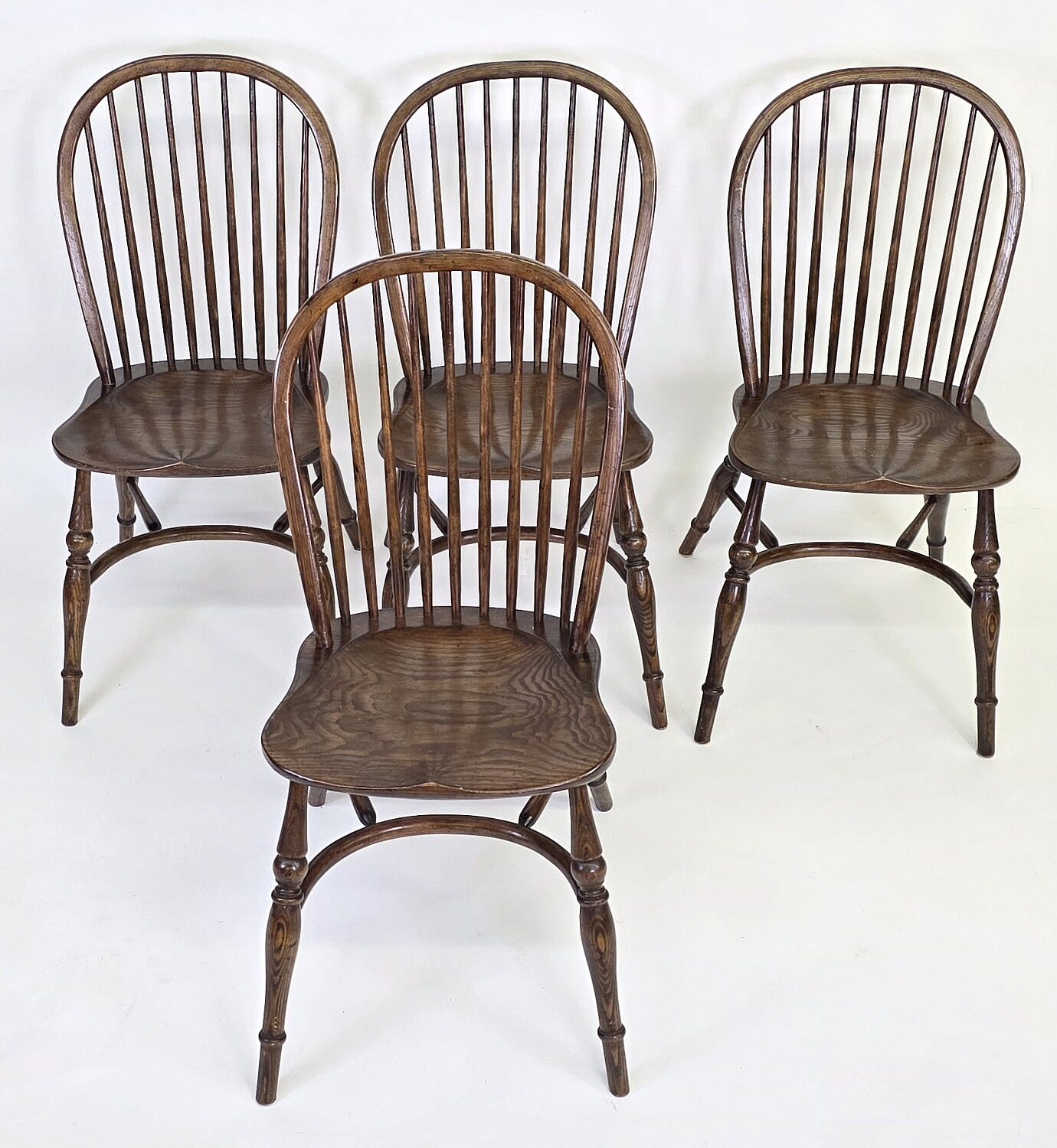 Set of Six English Oak Bow Back Windsor Dining Chairs