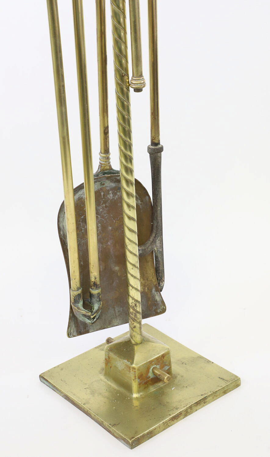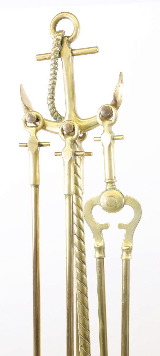 Set of Vintage Brass Nautical Anchor Fire Tools, comprised of matching shovel, tongs, poker and stand.