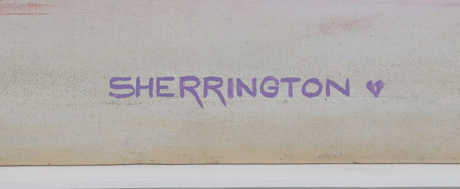 Sherrington Oil on Canvas “View of Brant Point Light and the Nantucket Lightship”, signed lower right Sherrington in thin white frame