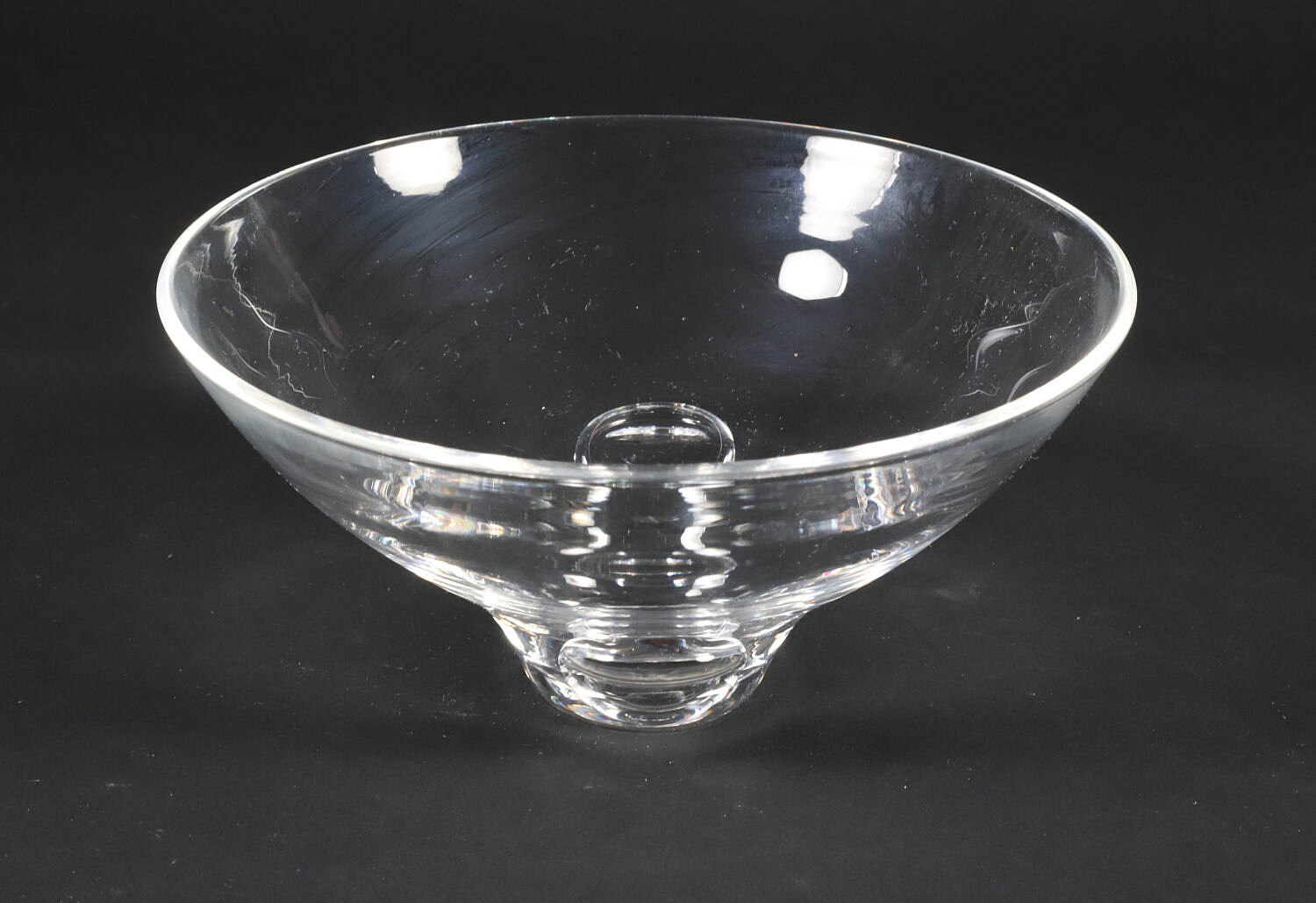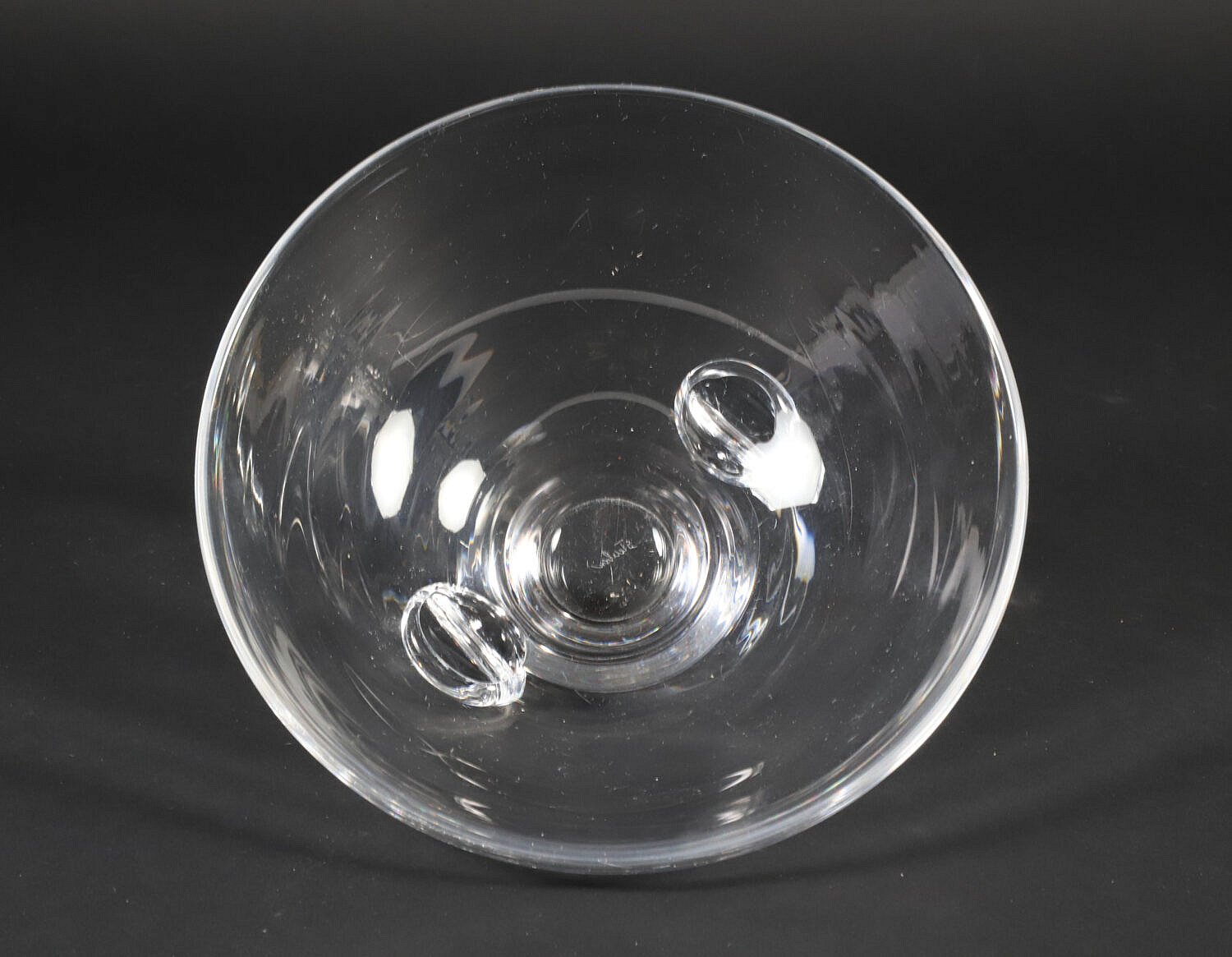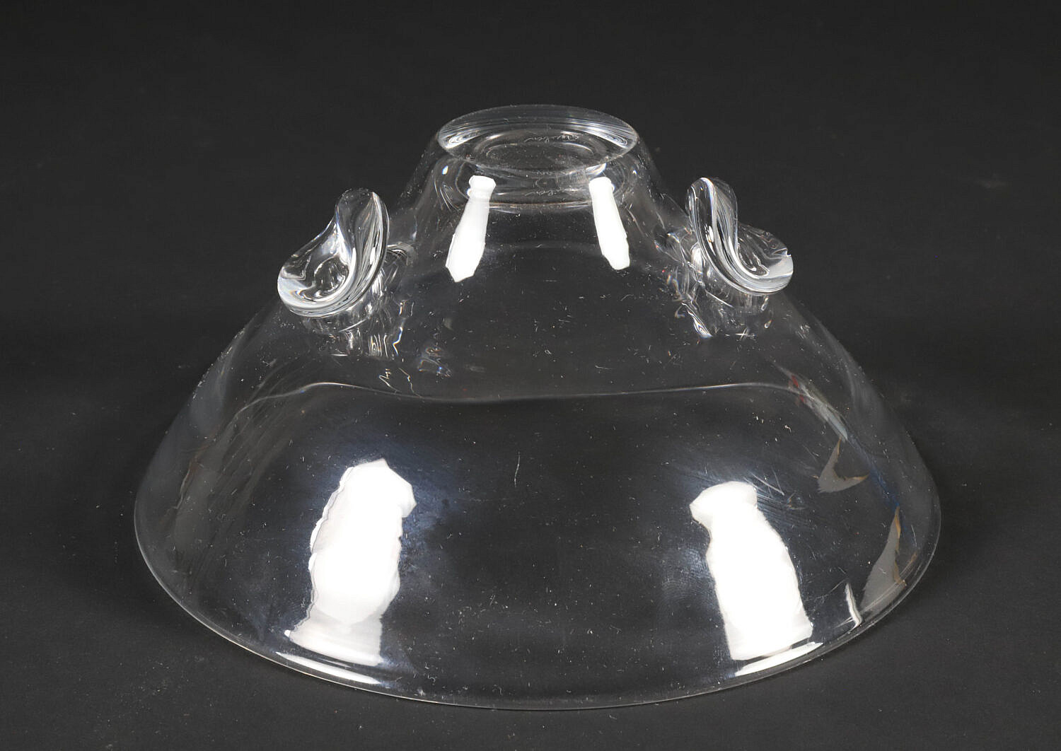 Signed Steuben Clear Crystal Bowl with Applied Finger Grips