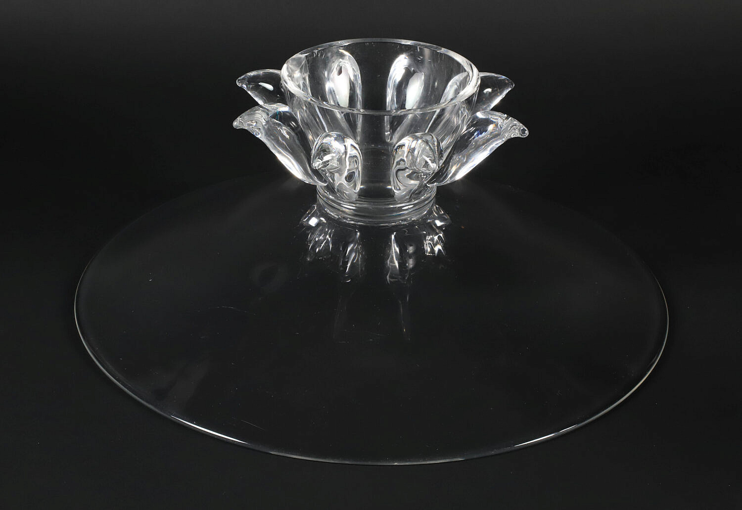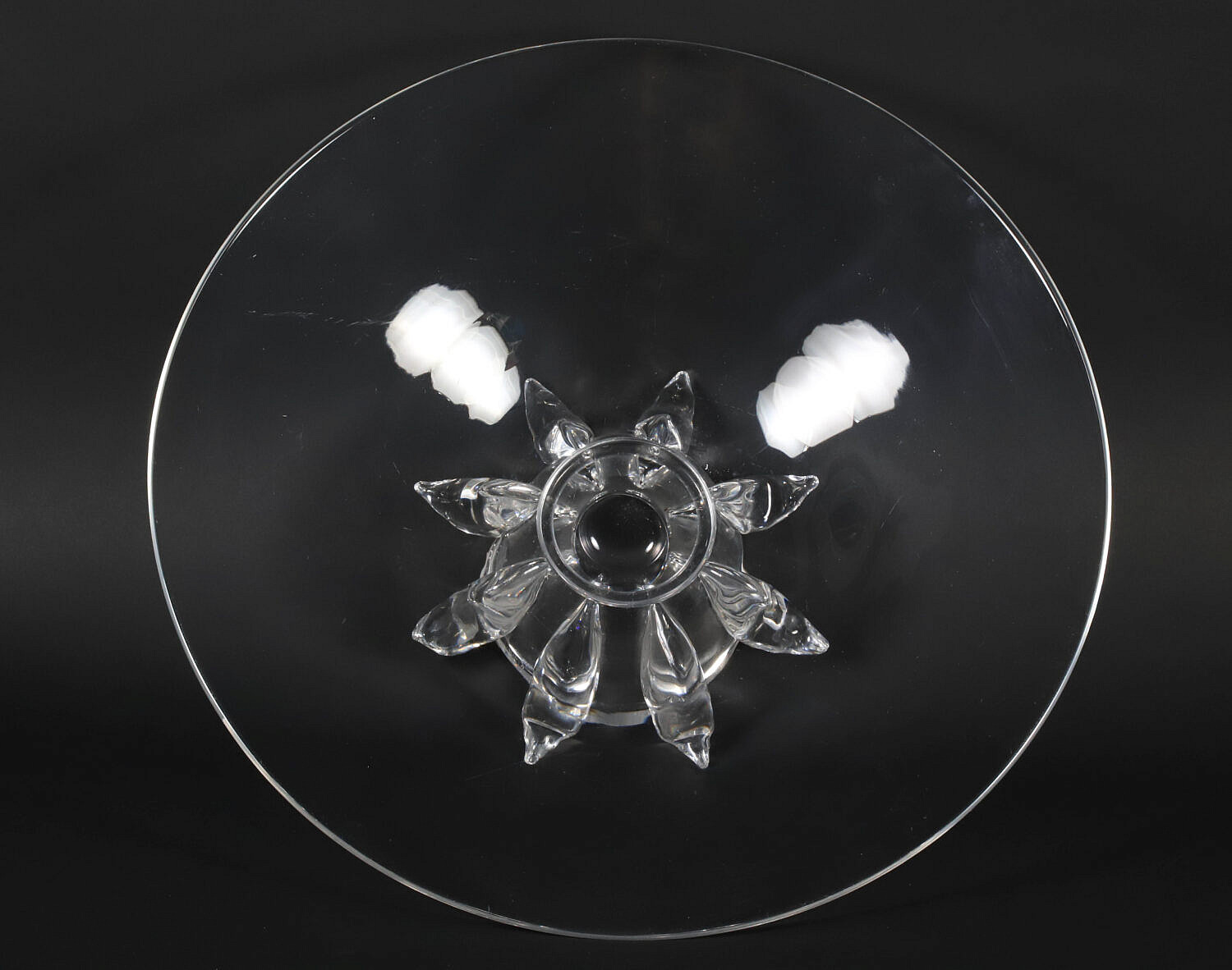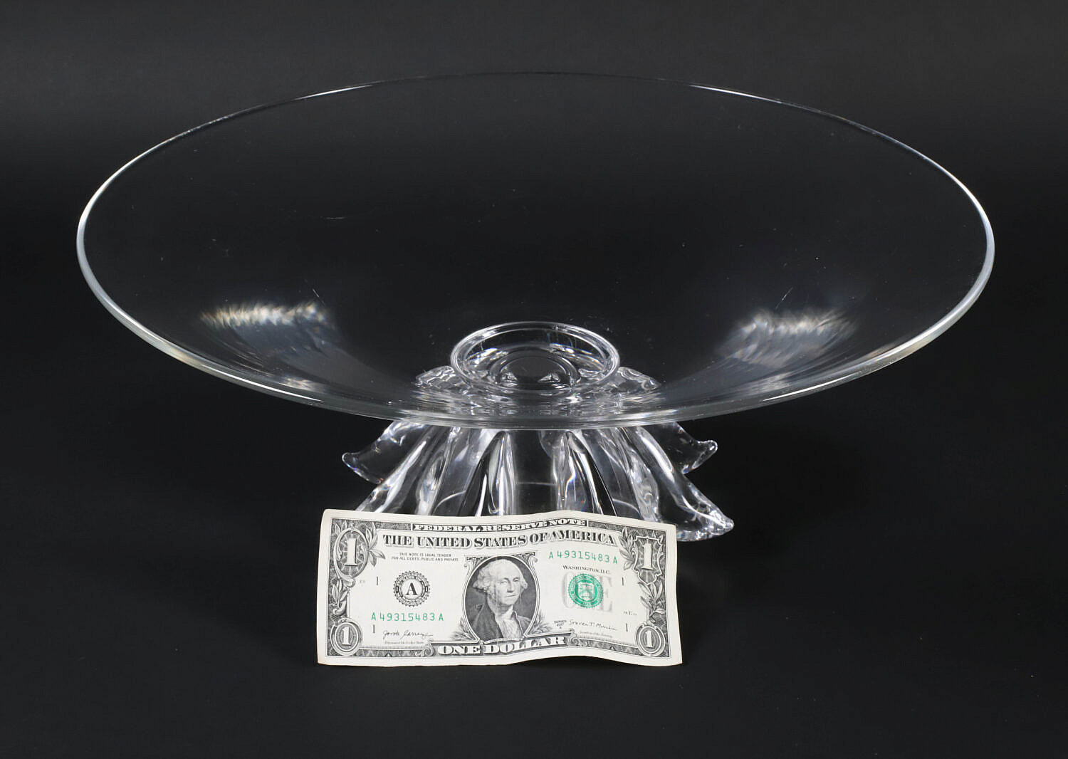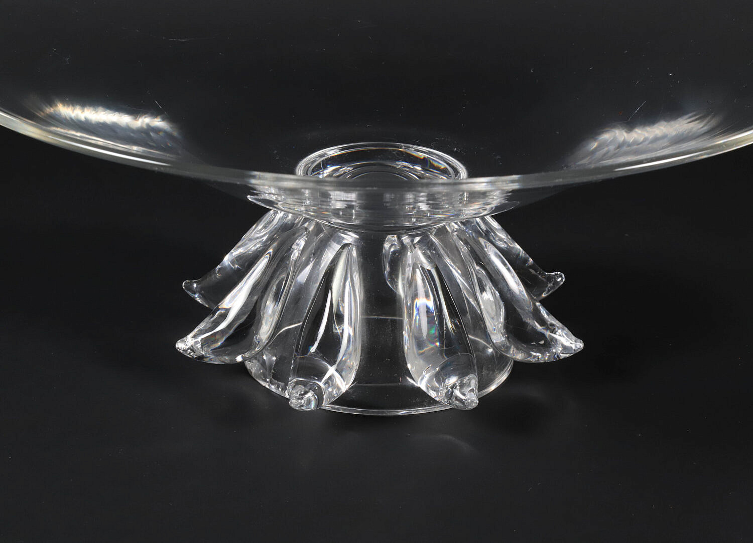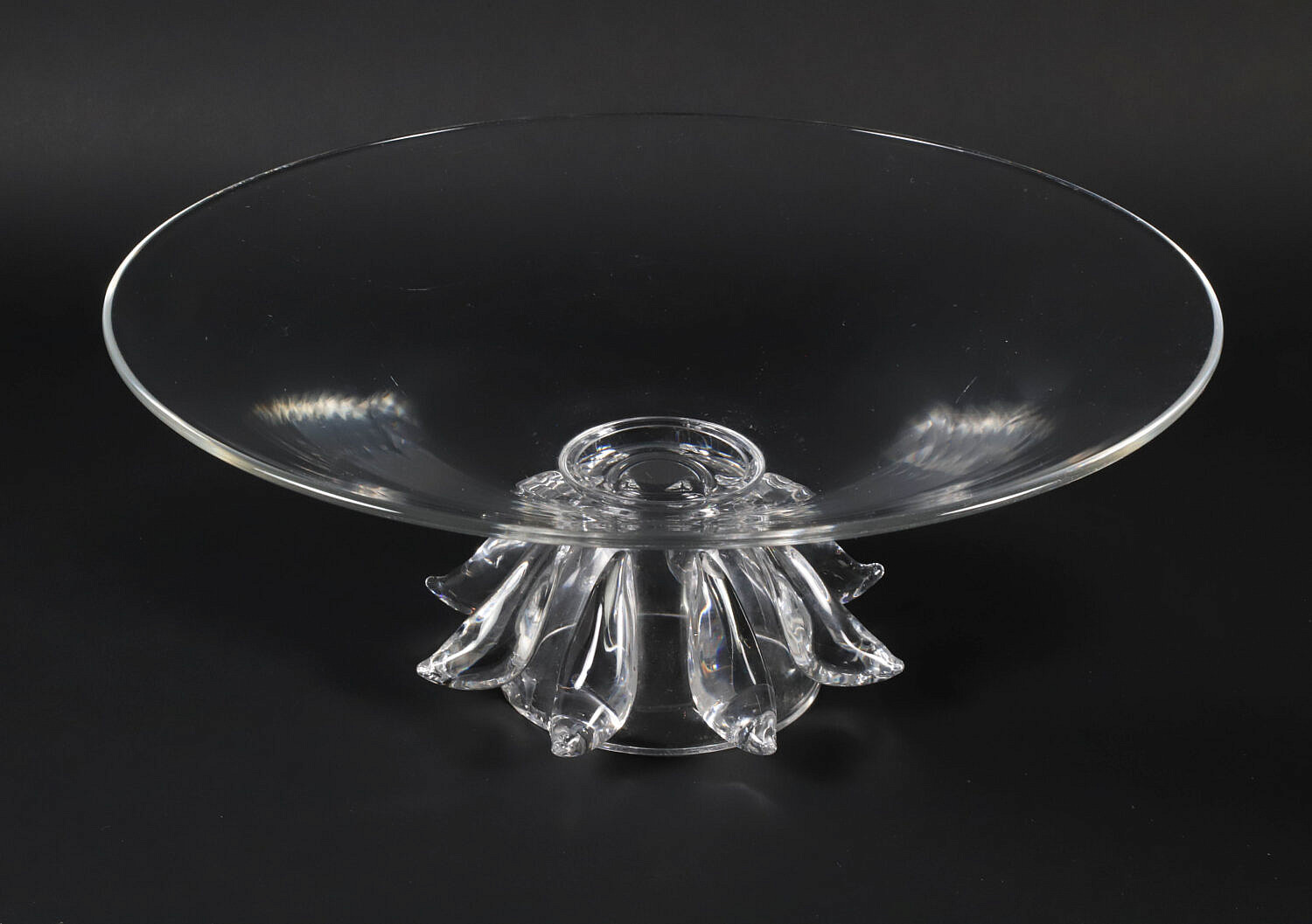 Signed Steuben Clear Crystal Large Footed Centerpiece Bowl Designed by Donald Pollard, circa 1961