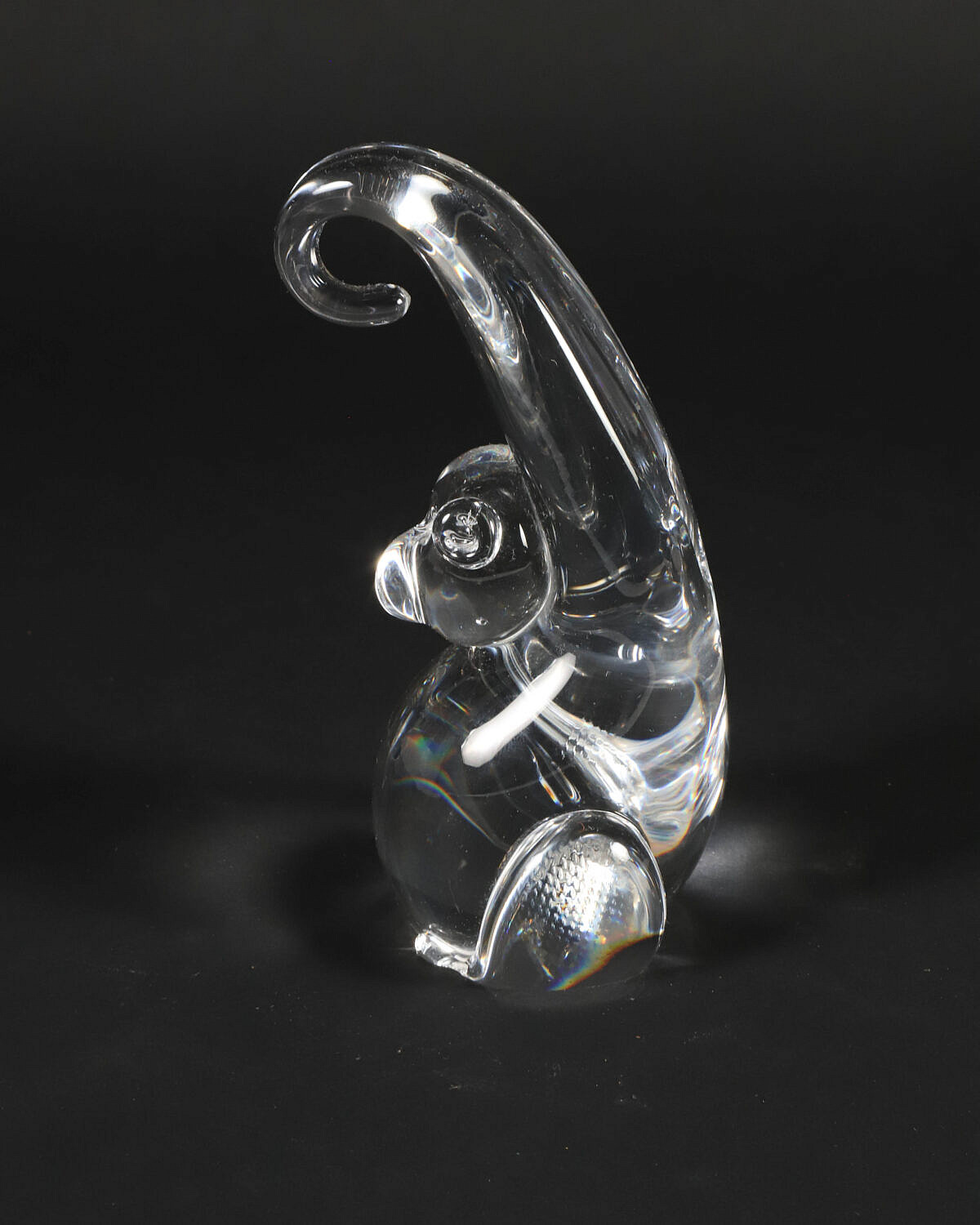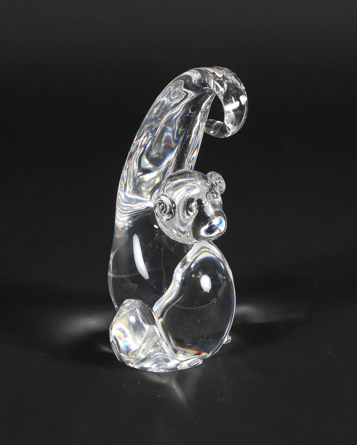 Signed Steuben Clear Crystal Swinging Monkey Designed by “KDS” circa 1973