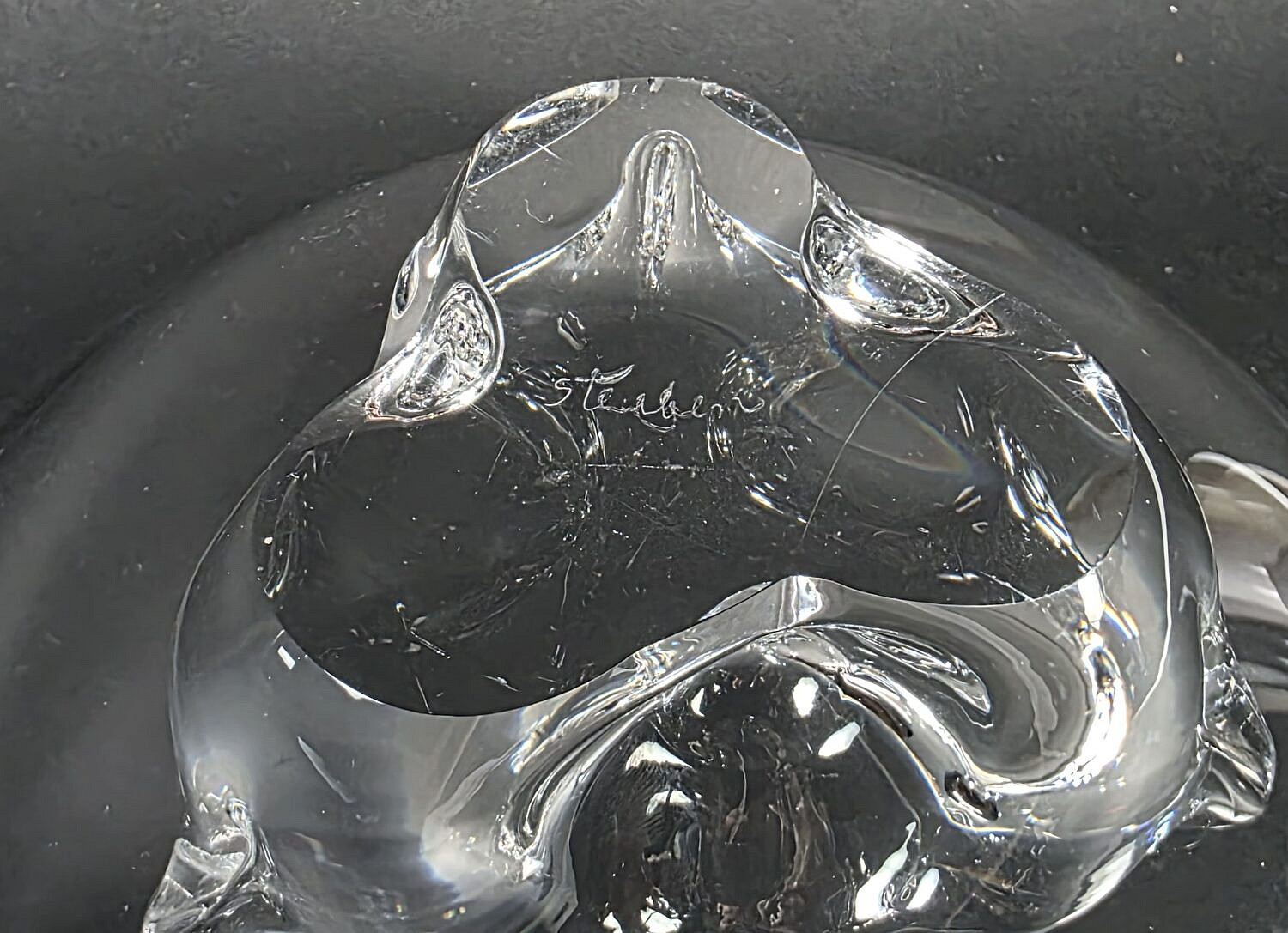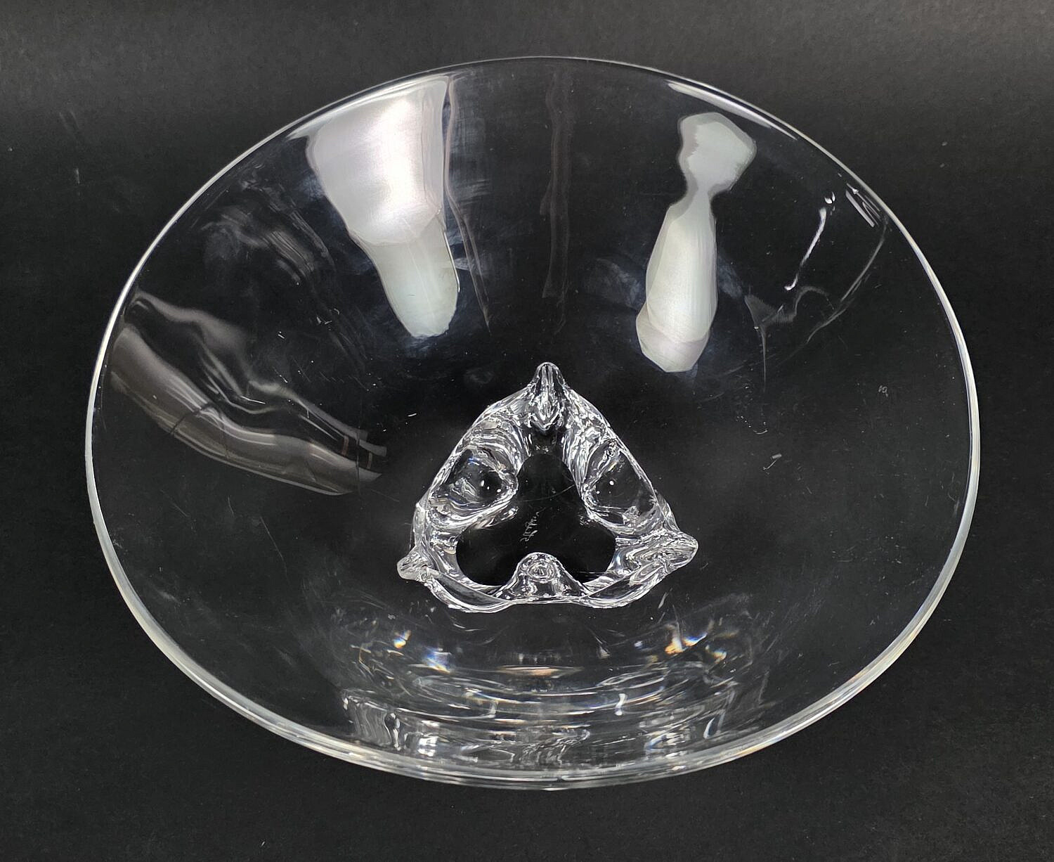 Signed Steuben Clear Crystal Trillium Center Piece Bowl, 20th century