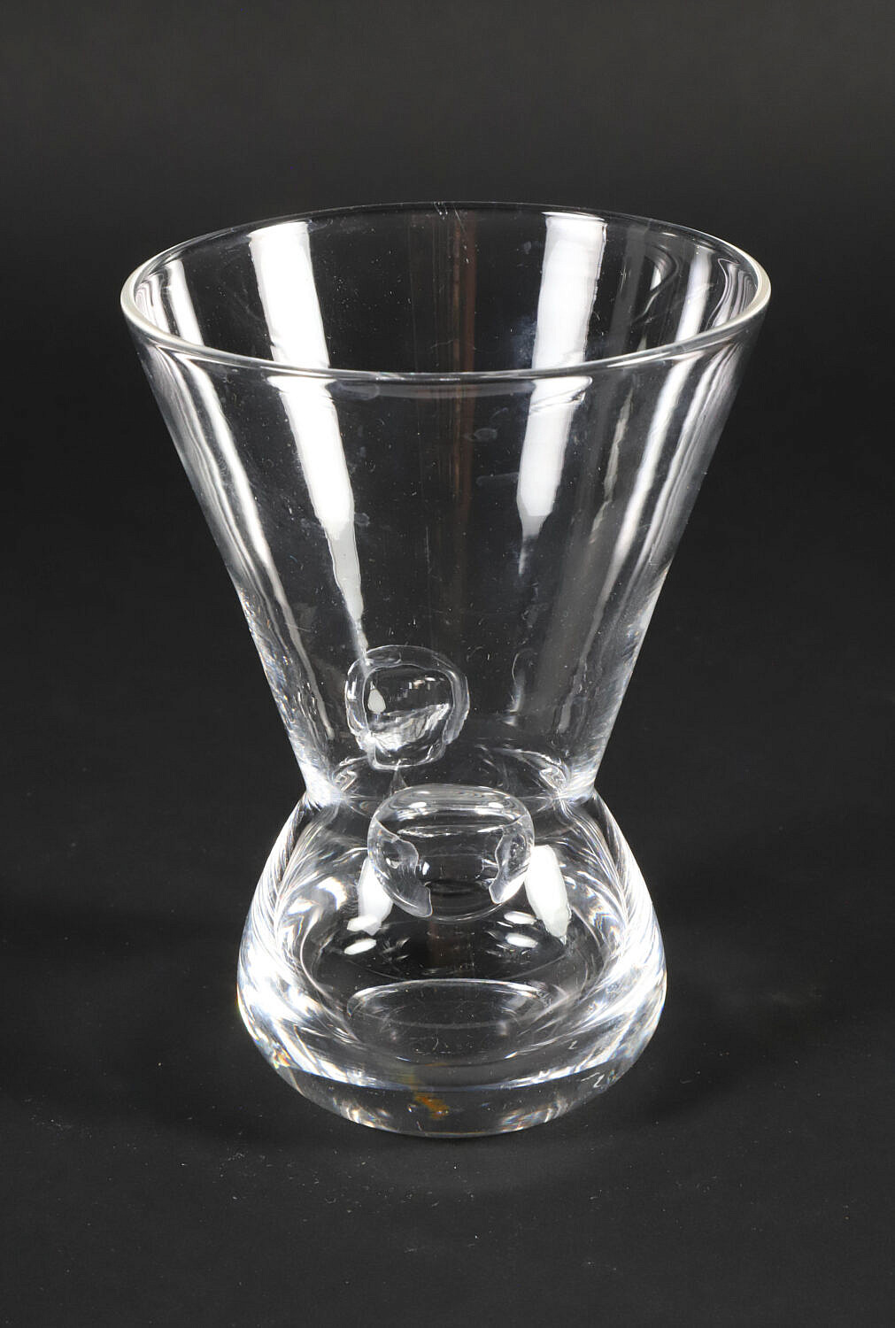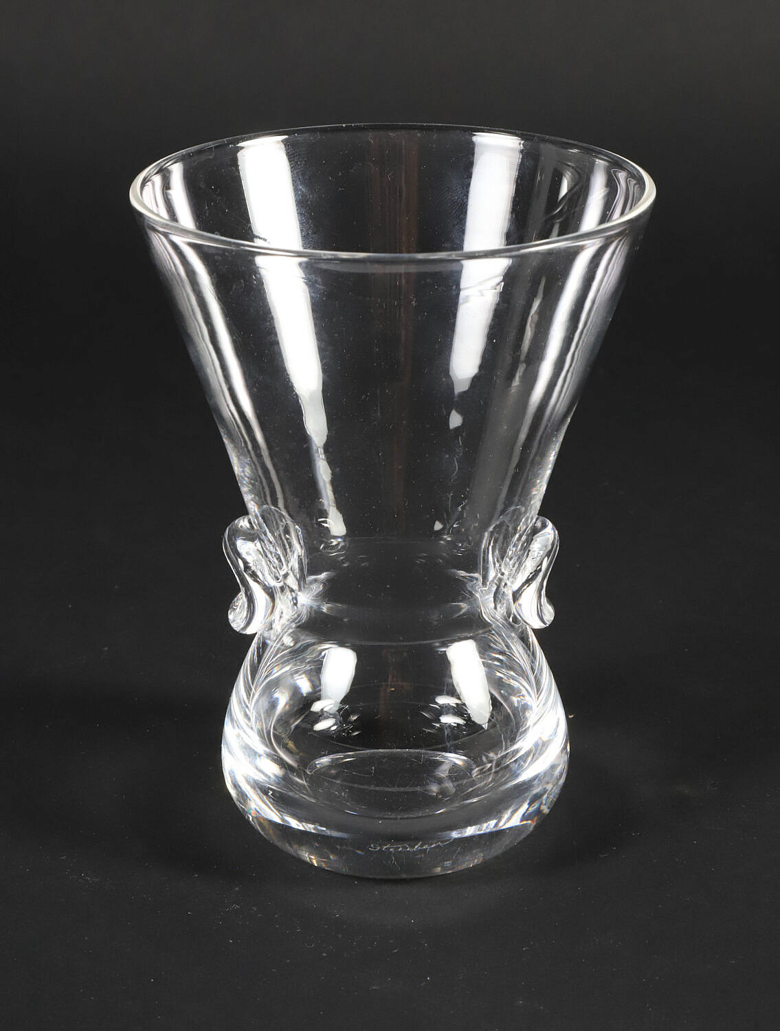 Signed Steuben Clear Crystal Vase with Applied Finger Grips