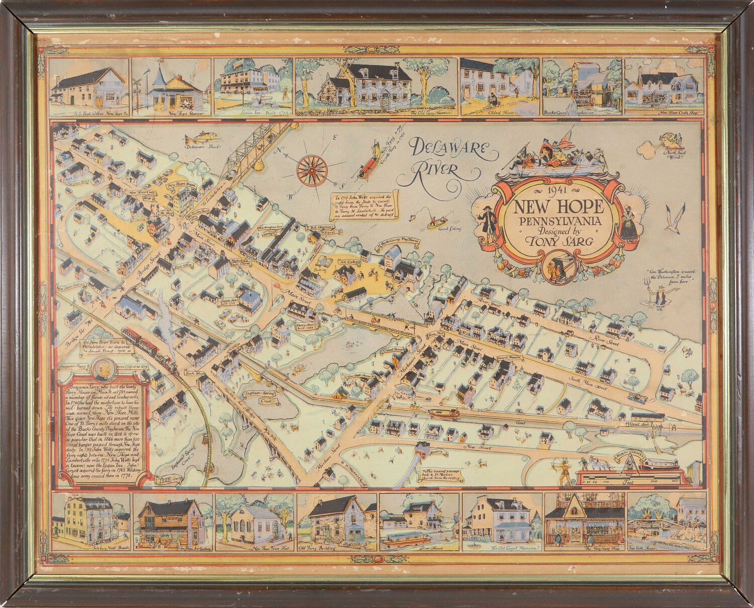 Tony Sarg “Map of New Hope, Pennsylvania, 1941”