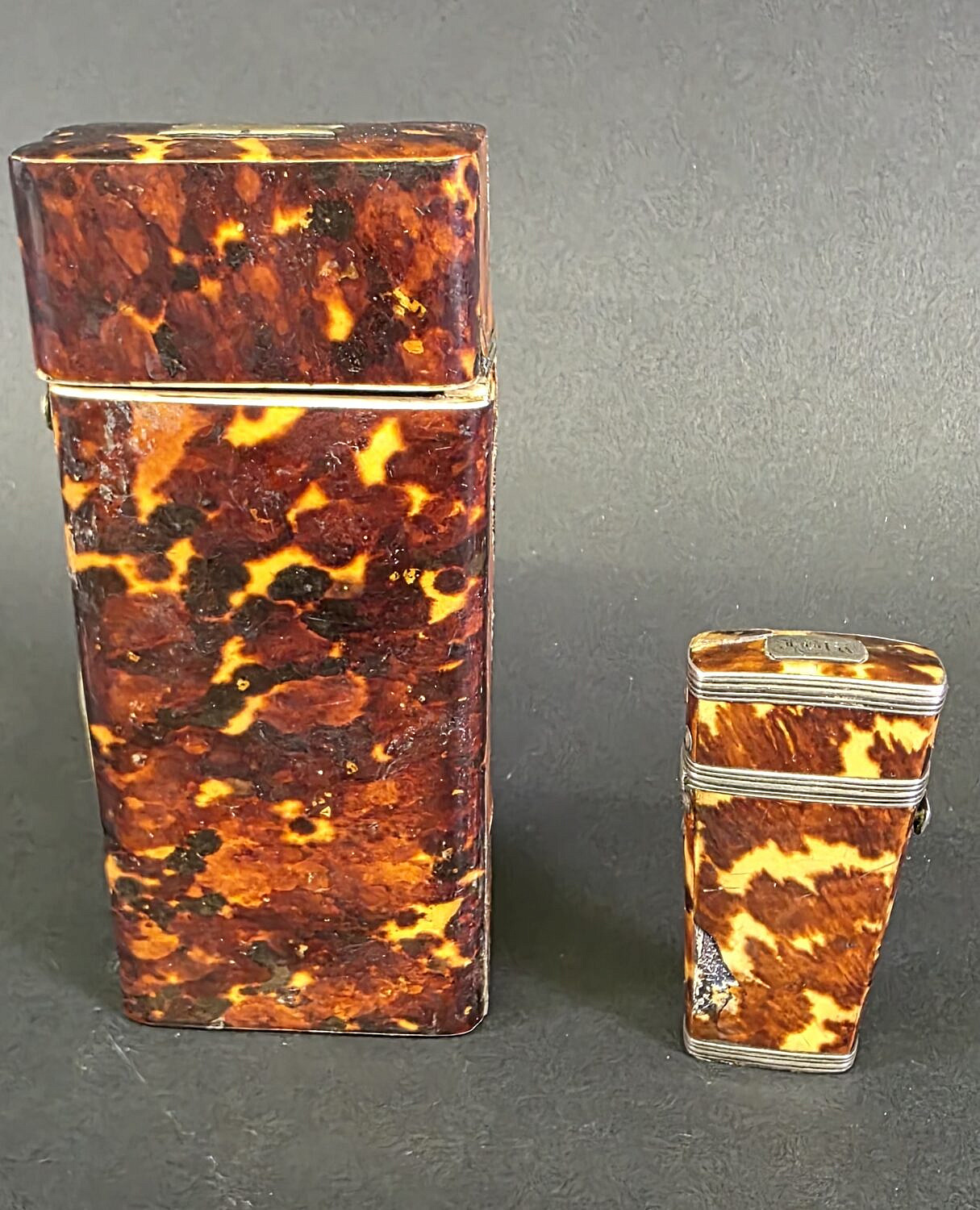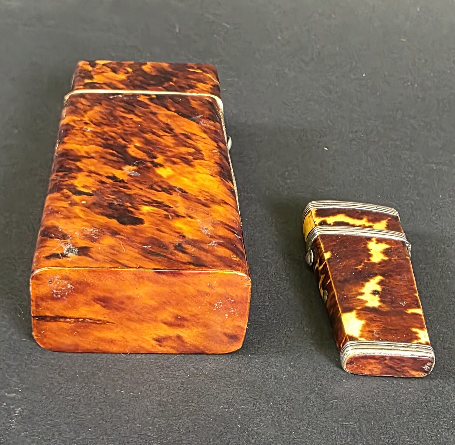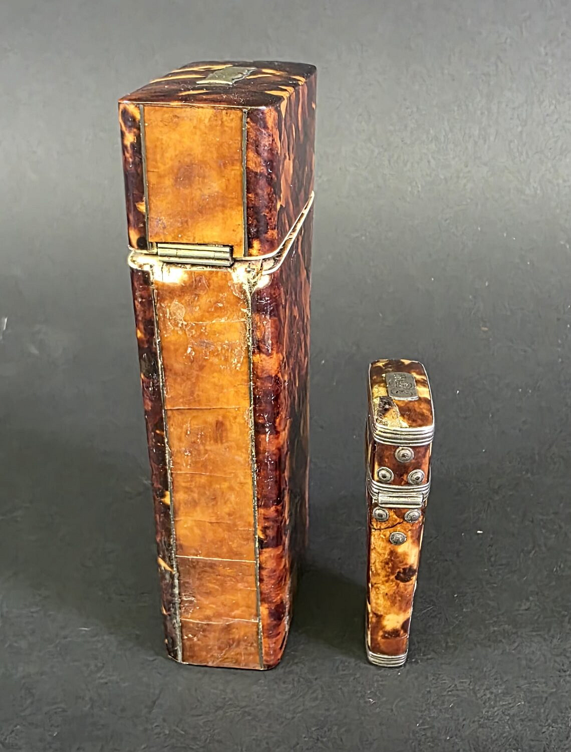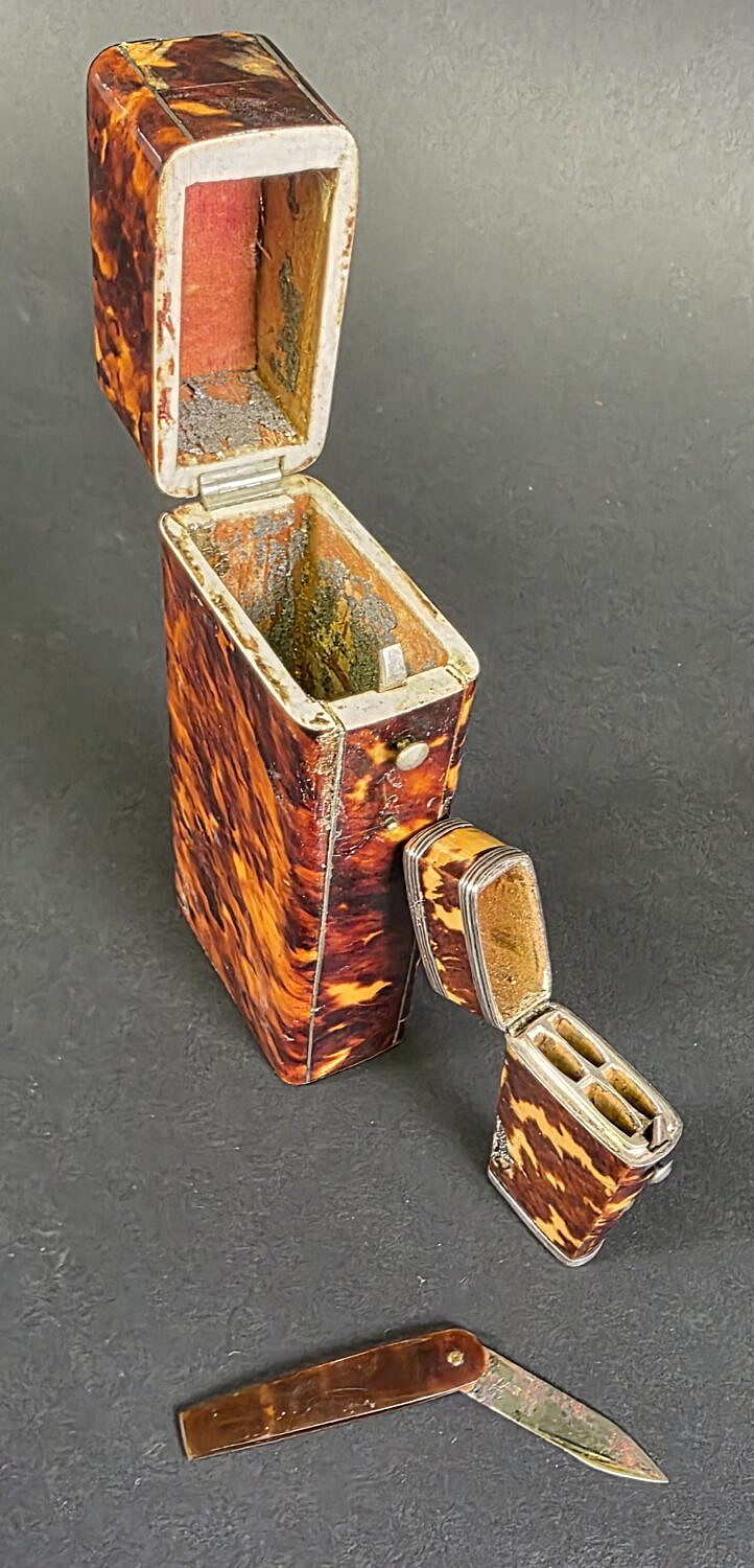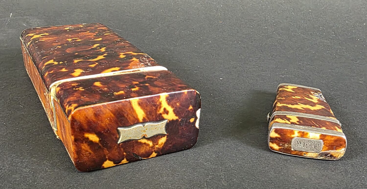 Two Antique English Tortoiseshell Boxes, 19th century, British Regency, comprising of hinged top box and a surgeons pocket etui/lancette.