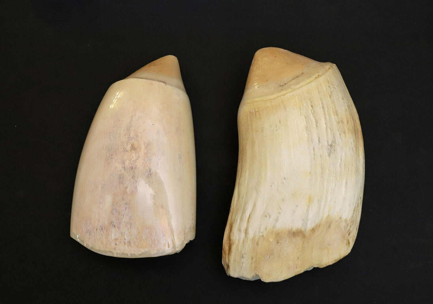 Two Antique Polished Whale’s Teeth, 19th Century .*Per Federal regulation, this item may only be purchased by a Massachusetts resident and will not be shipped out of state.