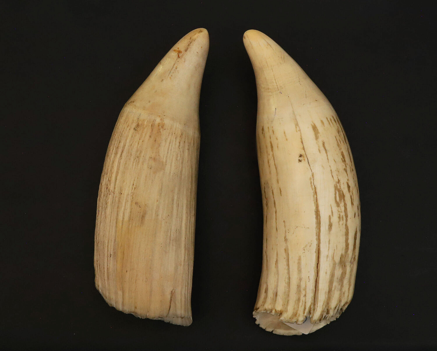 Two Antique Raw Whale’s Teeth, 19th Century. *Per Federal regulations, this item may only be purchased by a Massachusetts resident and will not be shipped out of state.