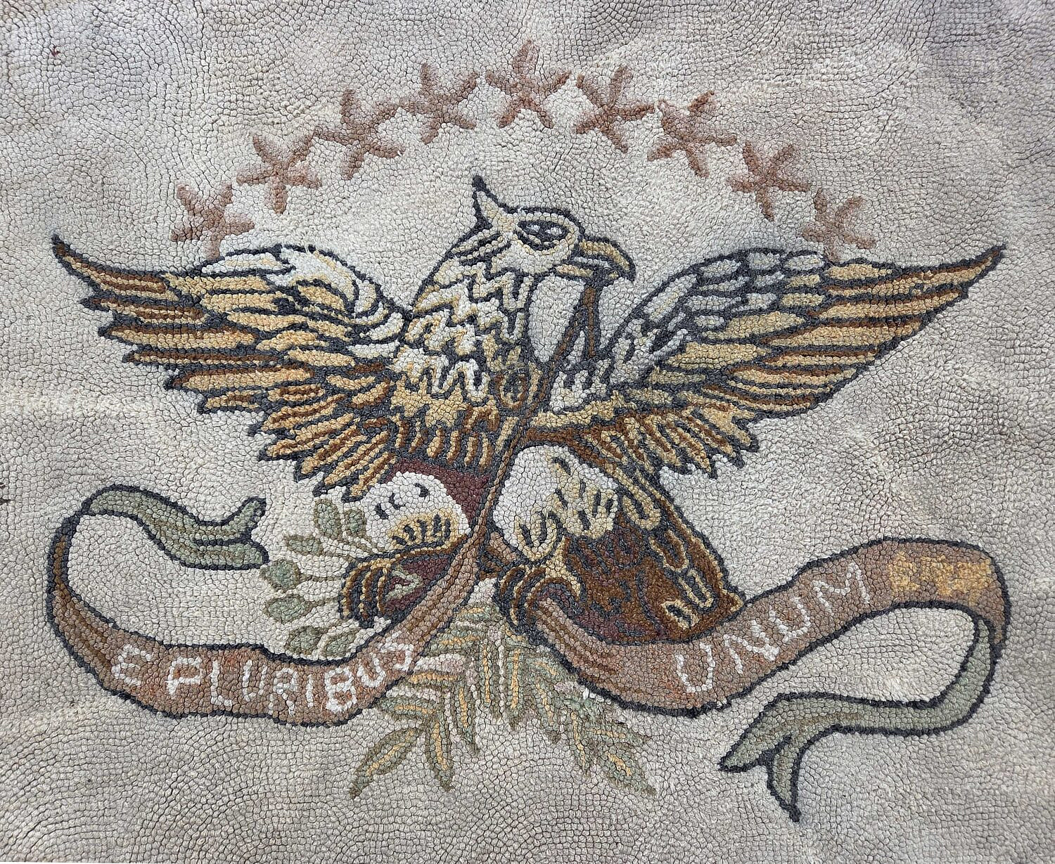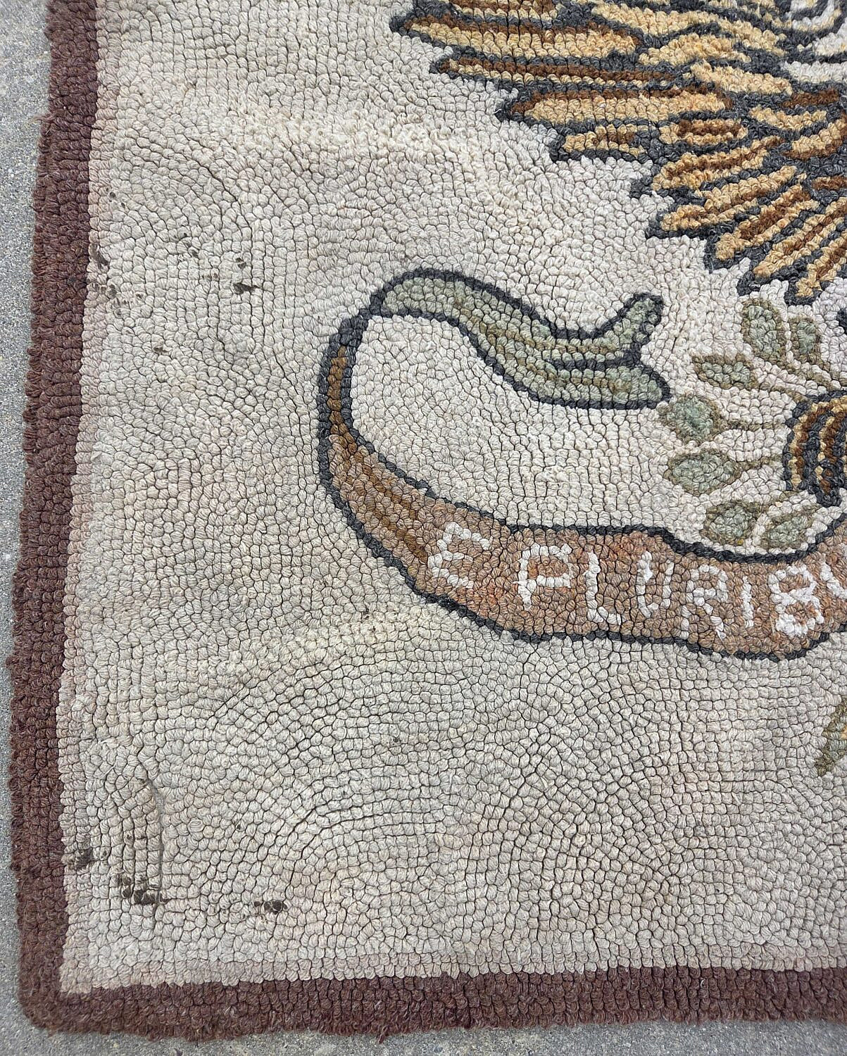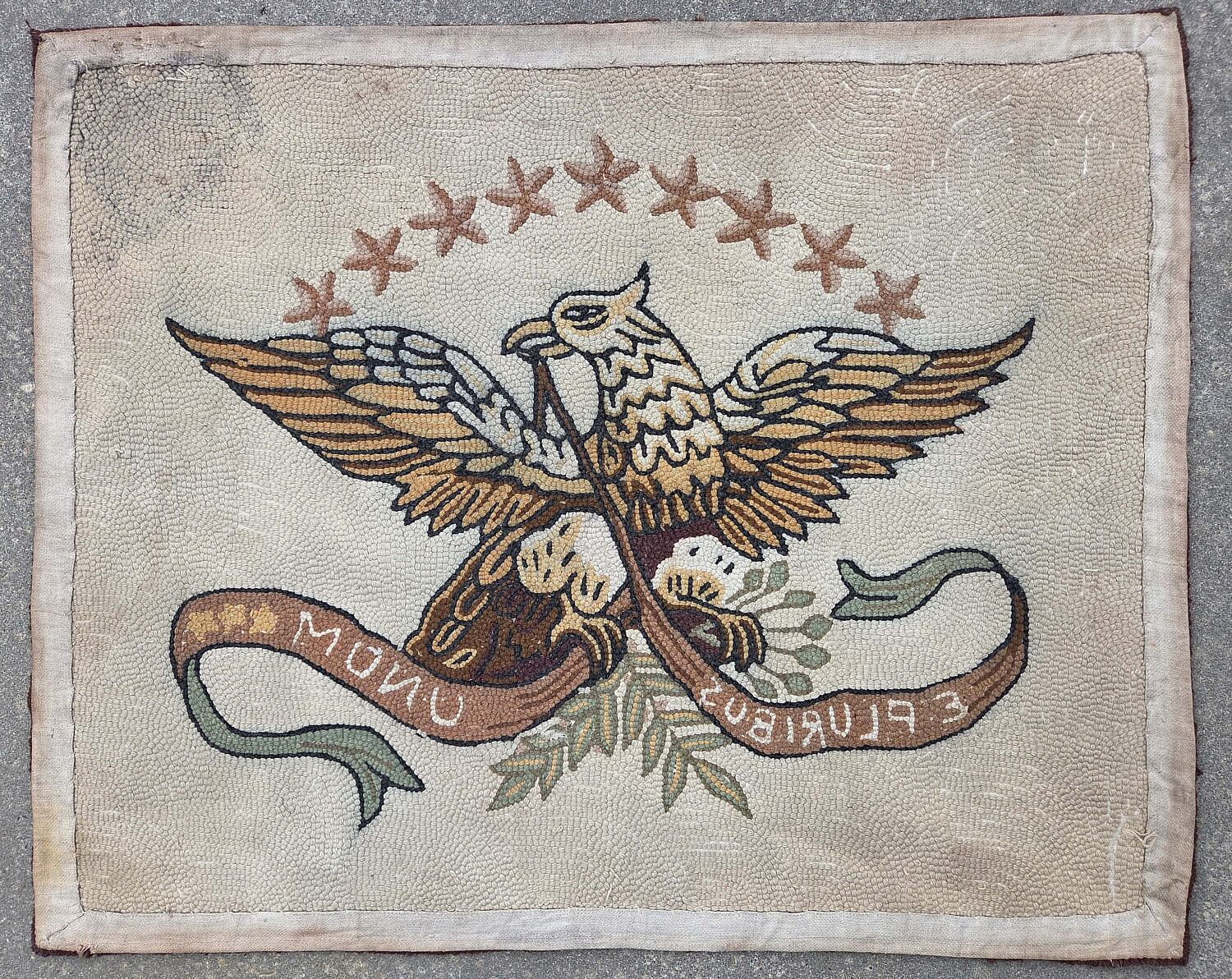Vintage American Eagle Hooked Rug ” E. Pluribus Unum”