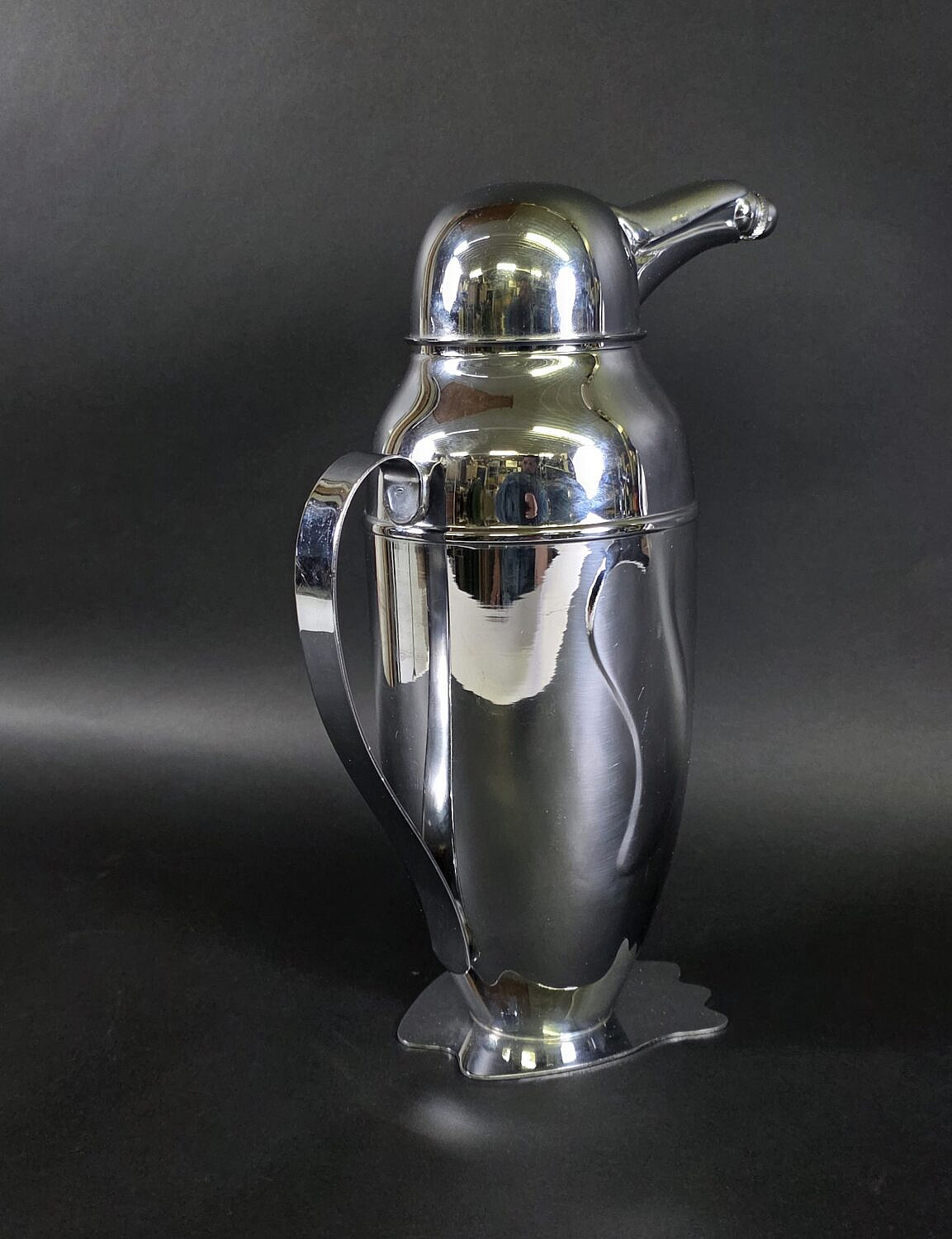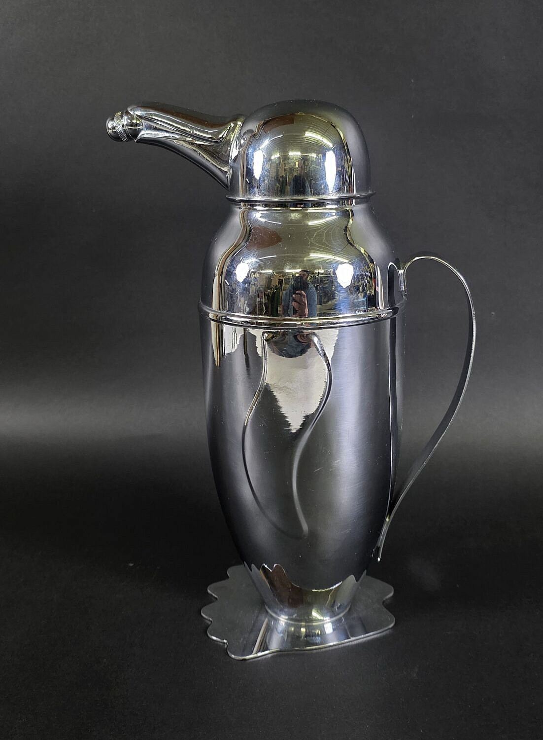 Vintage Art Deco Style Silver Plated Penguin Cocktail Shaker, in two sections with stopper at end of beak.