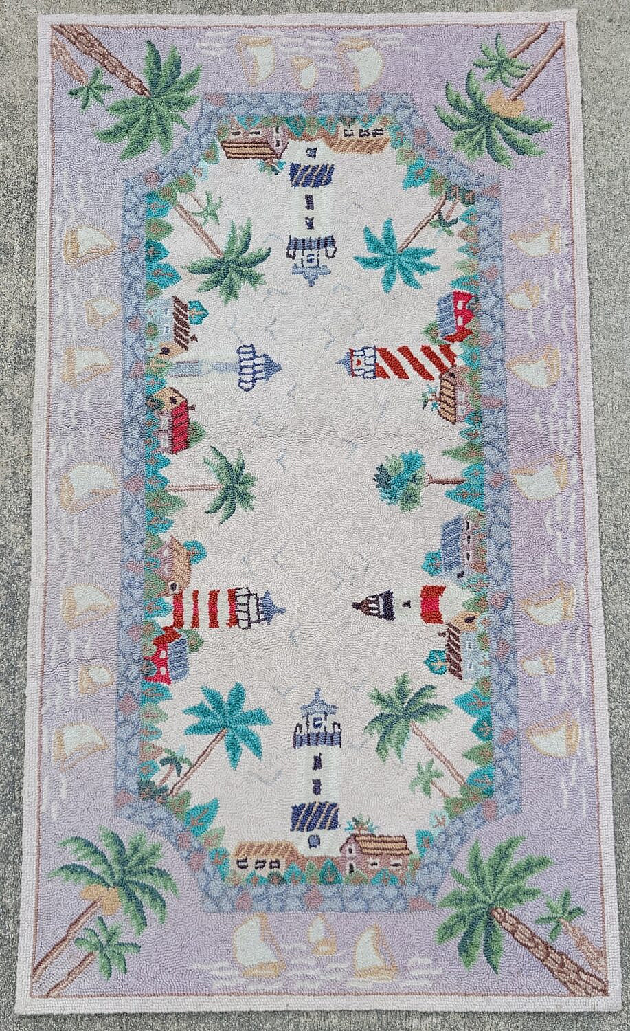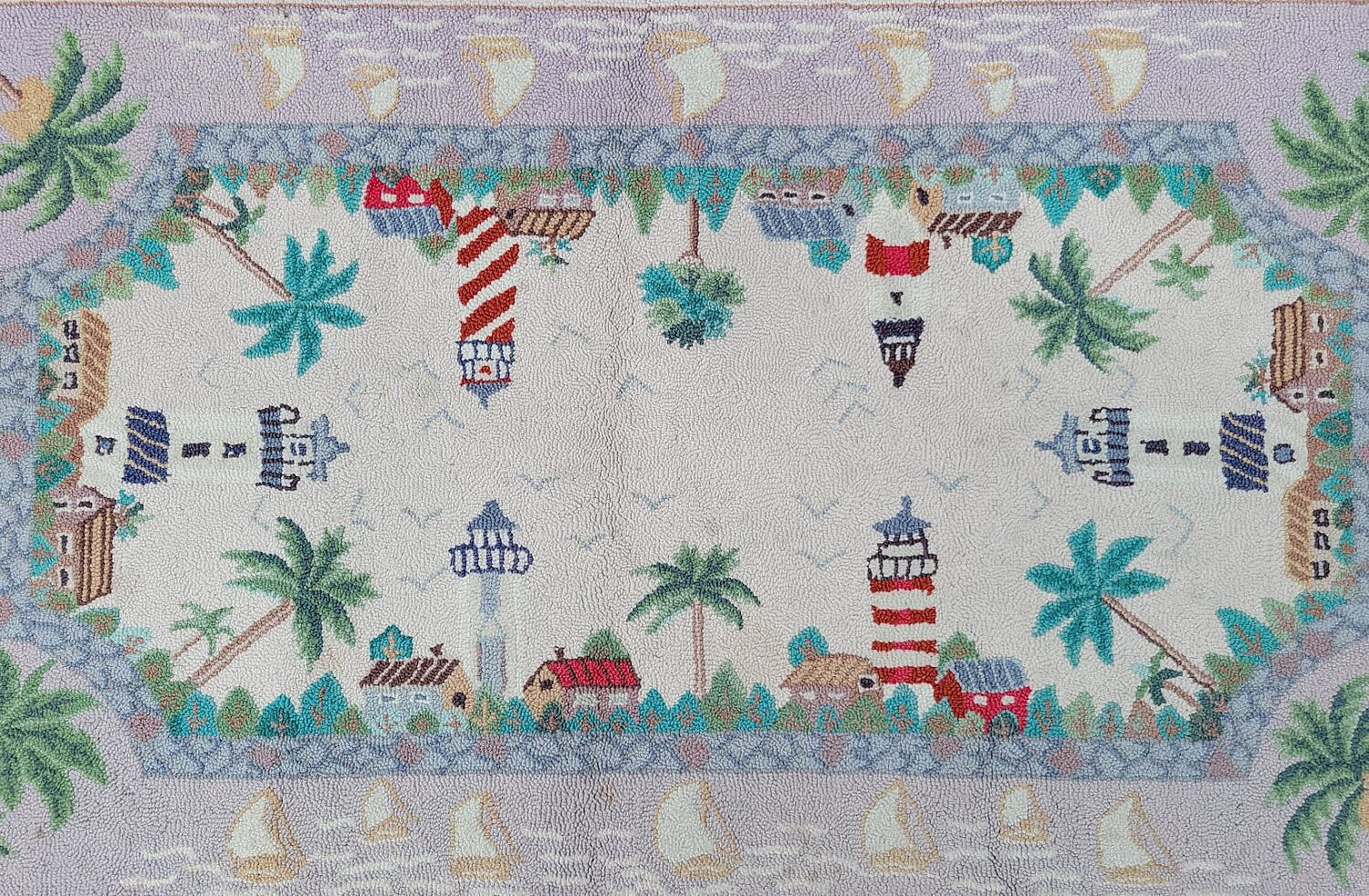 Vintage Carolina Lighthouses Hooked Rug Consign Now DeptCarpetsSize30 in. x 54 in. Vintage Carolina Lighthouses Hooked Rug, with various lighthouses, palm trees and sailboats. 30 in. x 54 in. Please note that this auction has ended. Click here for an overview of this auction.