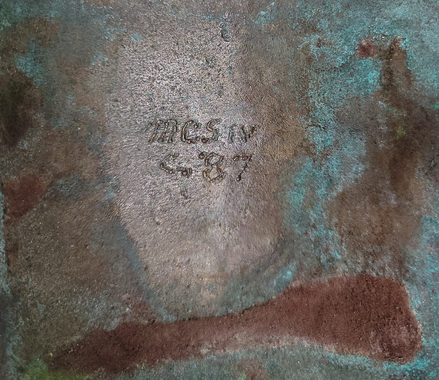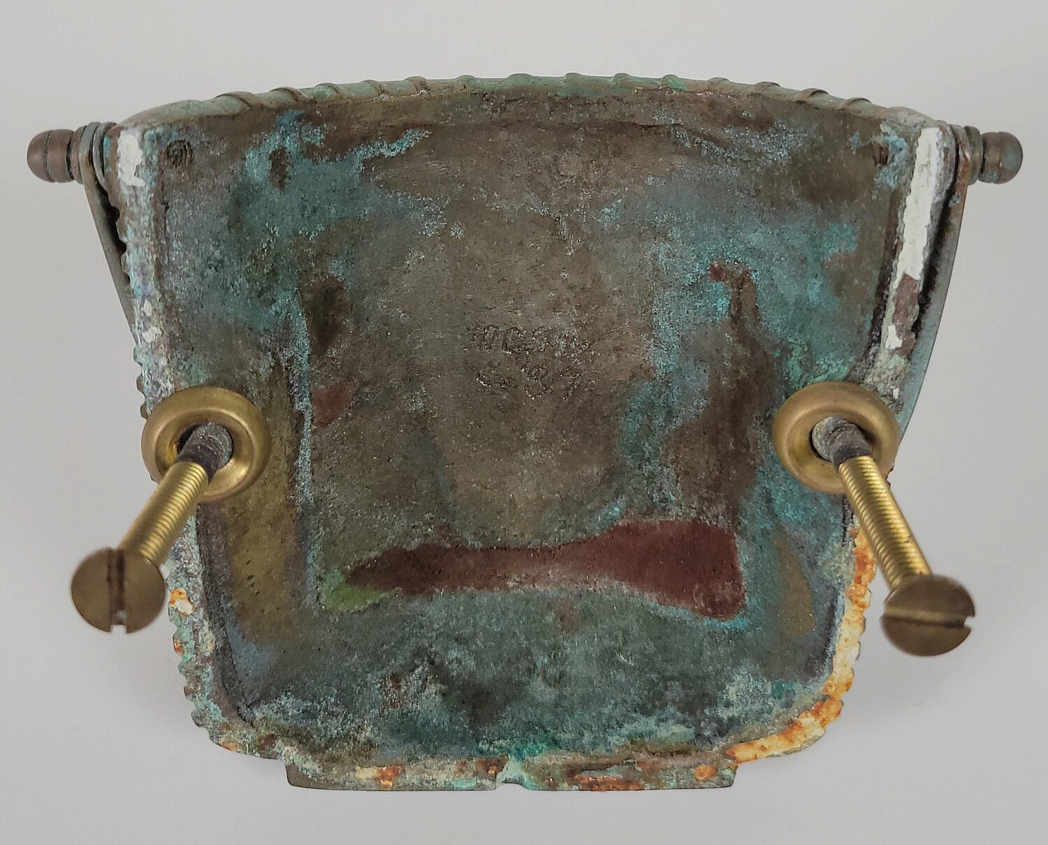 Vintage Cast Bronze Nantucket Basket Door Knocker, nicely detailed with original patinated surface, signed and dated 1987 on reverse.