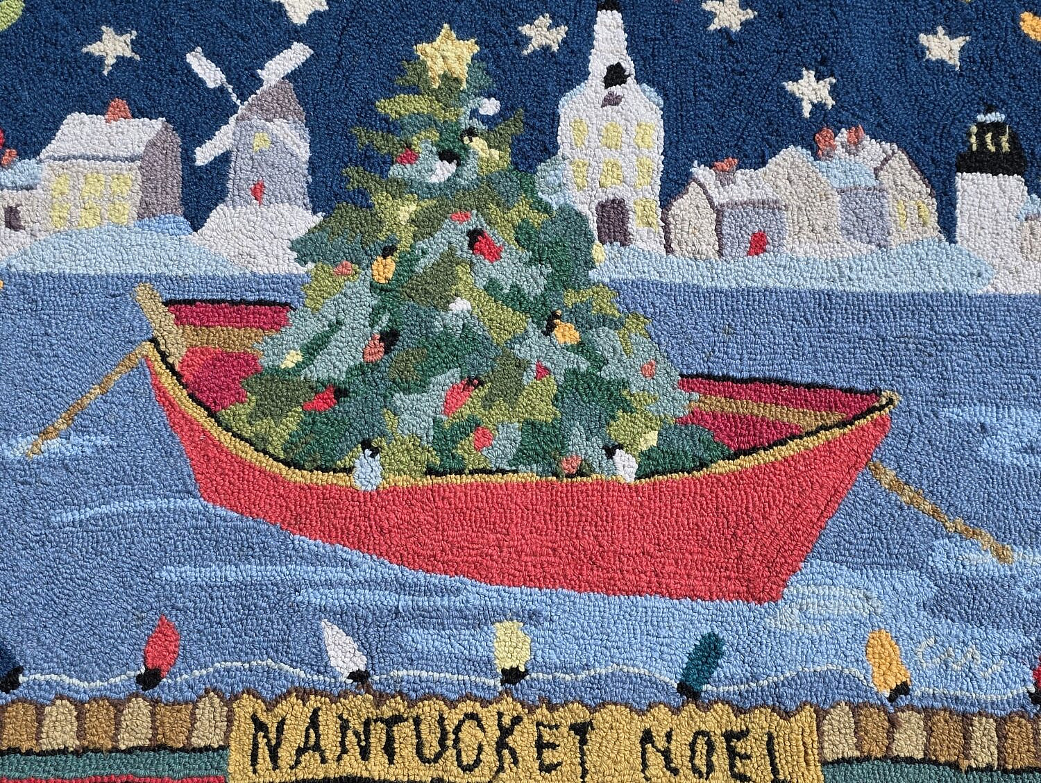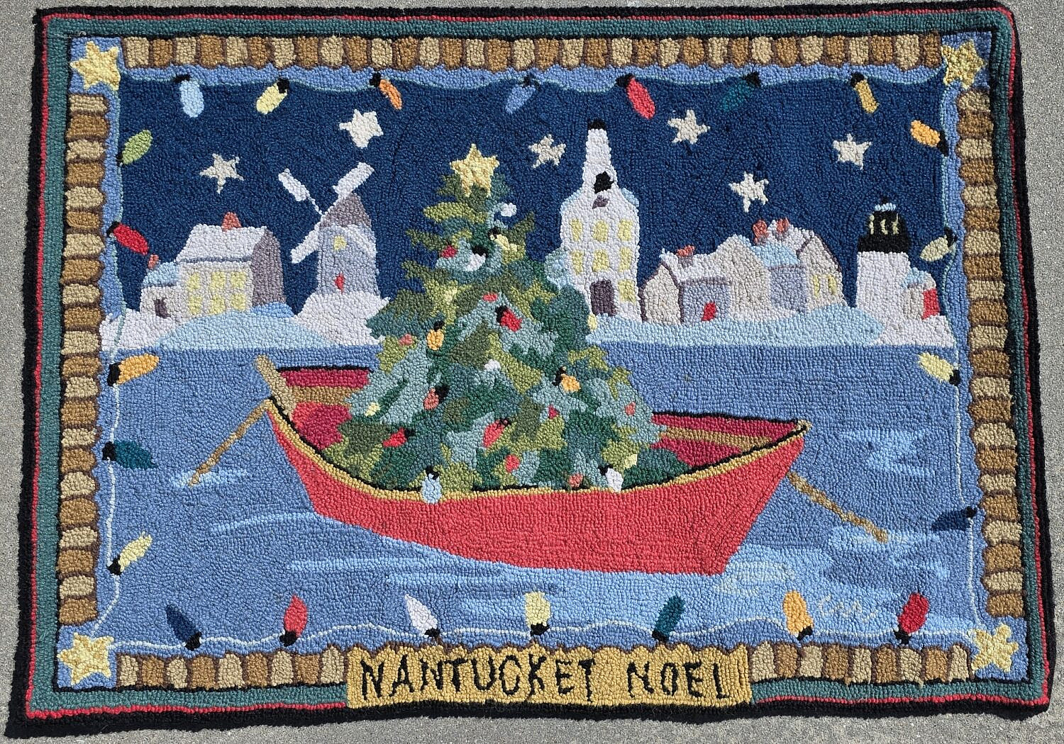 Vintage Claire Murray Christmas Hooked Rug “Nantucket Noel”, with original makers label on reverse.