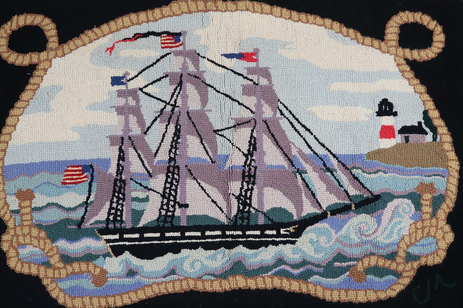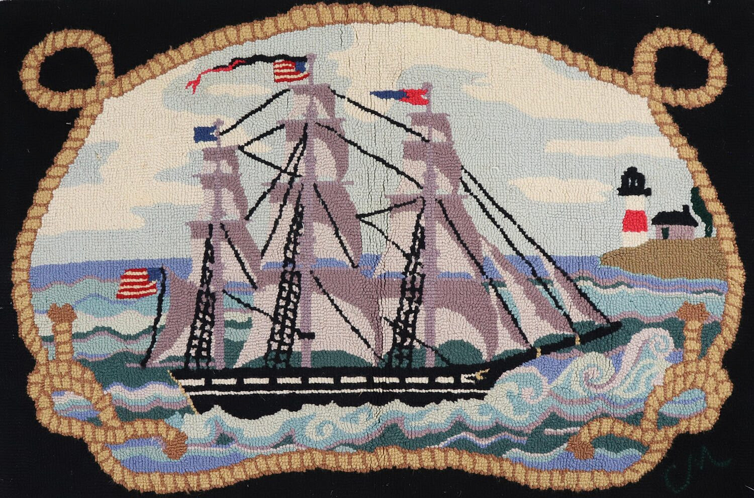 Vintage Claire Murray Hooked Rug Clippership Off Sankaty Lighthouse