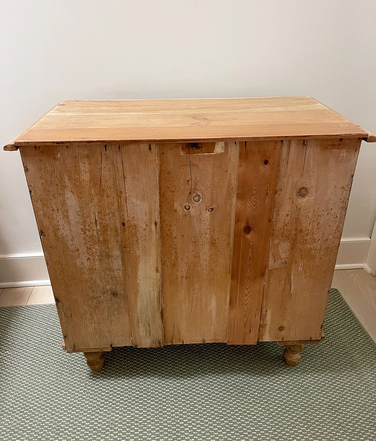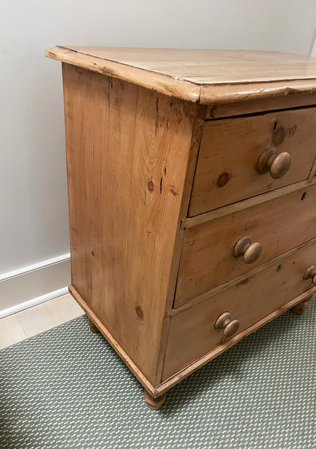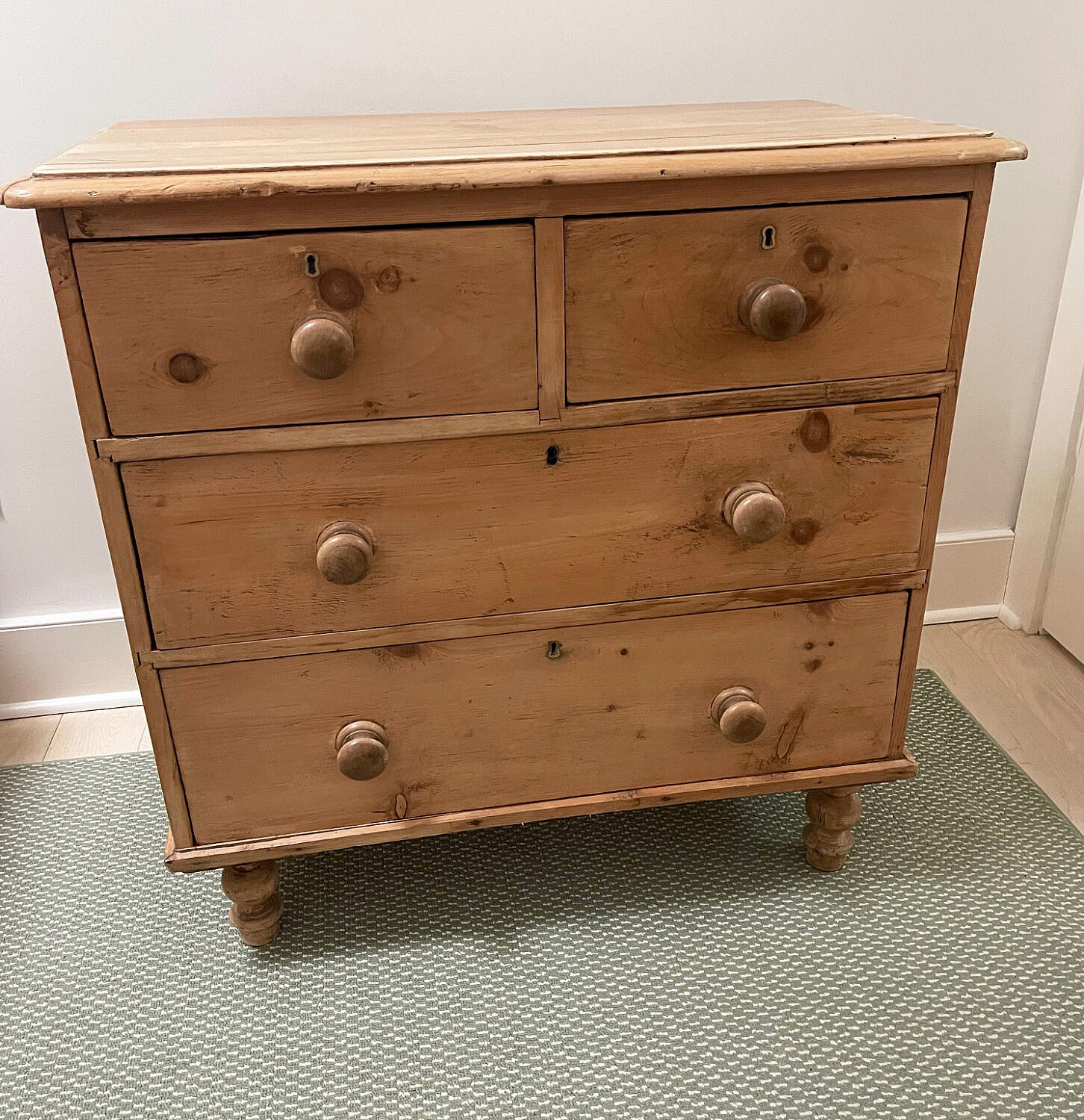 Vintage English Cottage Pine Two Over Two Drawer Chest of Drawers, wood knob pulls