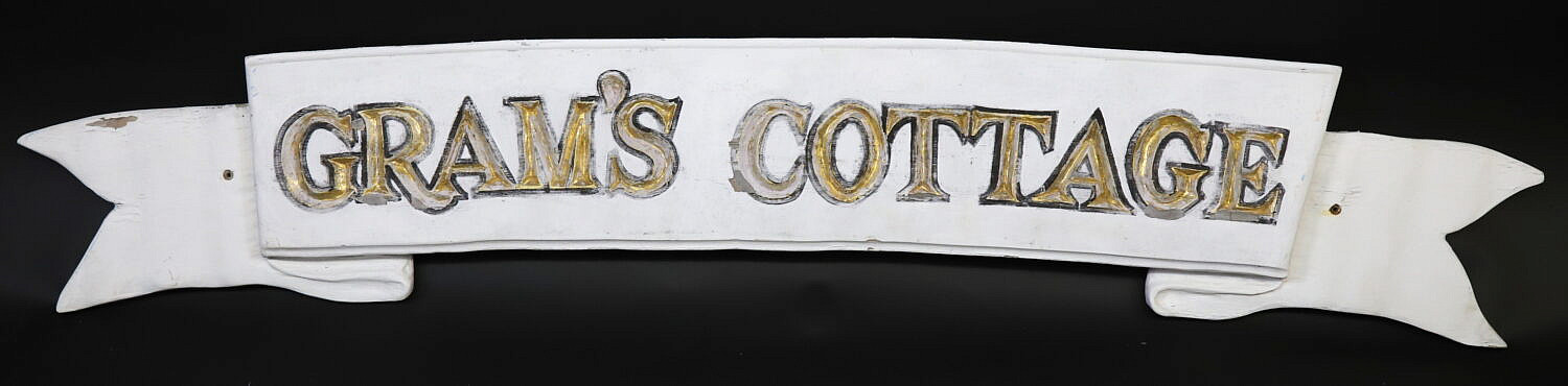 Vintage Gram’s Cottage Carved and Painted Quarterboard Sign