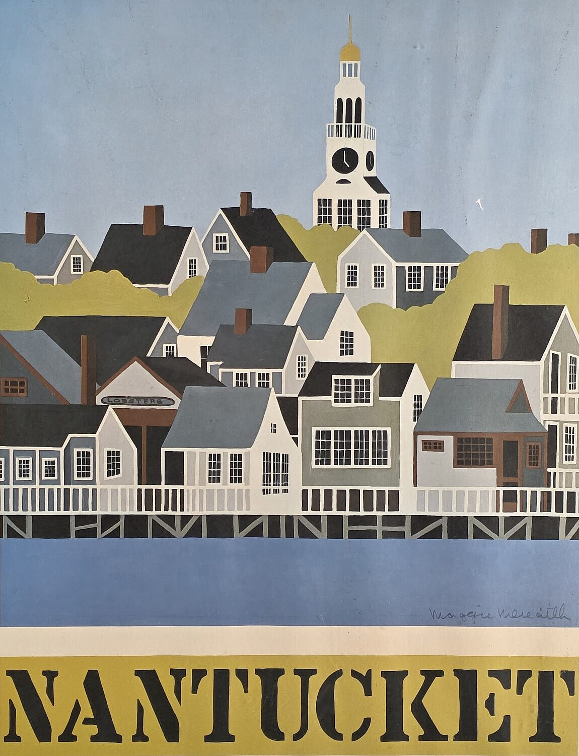 Vintage Maggie Meredith Pencil Signed Poster, “A View from Nantucket Harbor”, signed lower right.