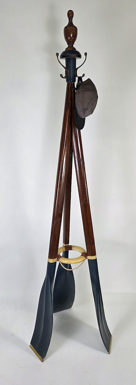 Vintage Oar and Life Ring Standing Coat and Hat Rack, 20th century