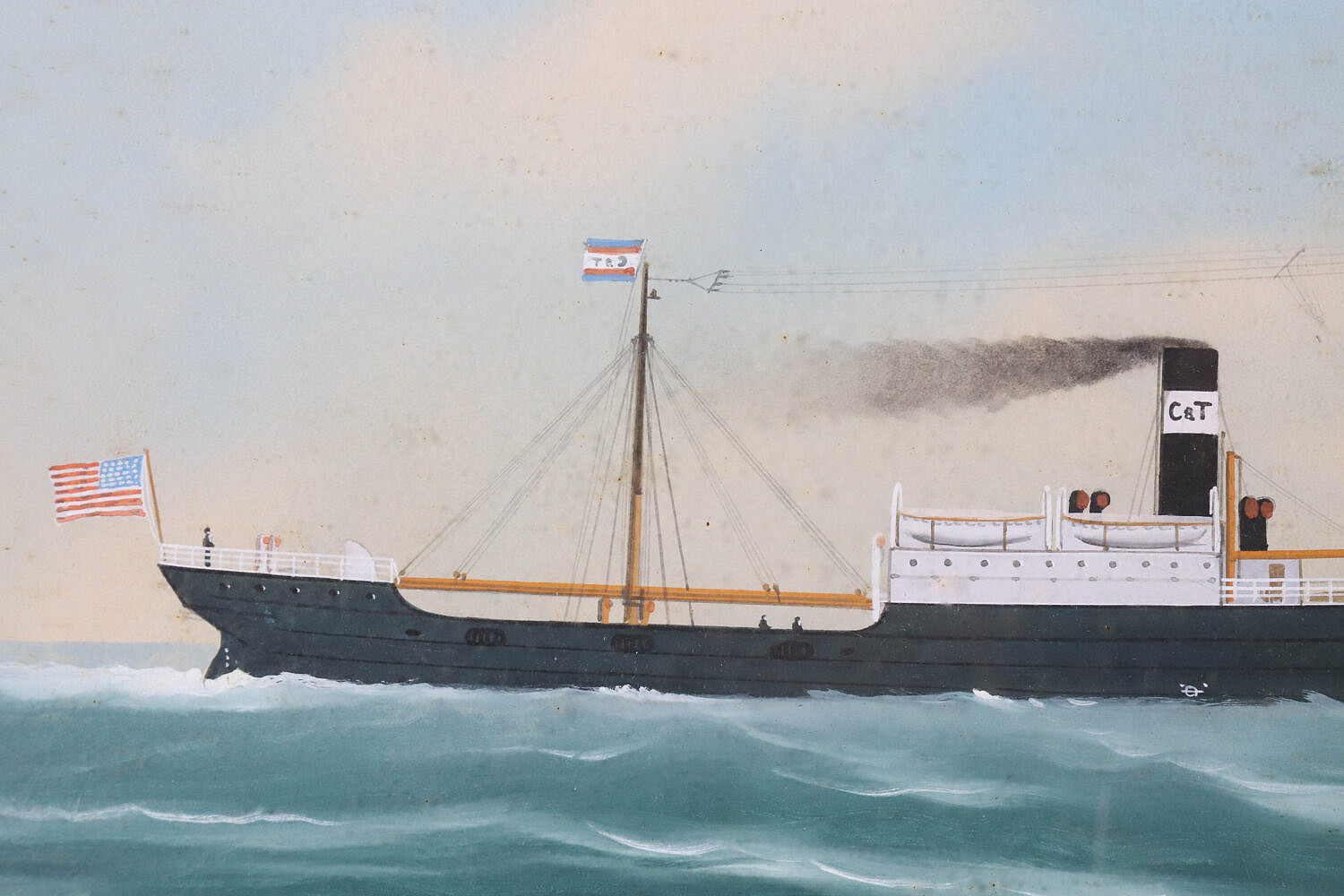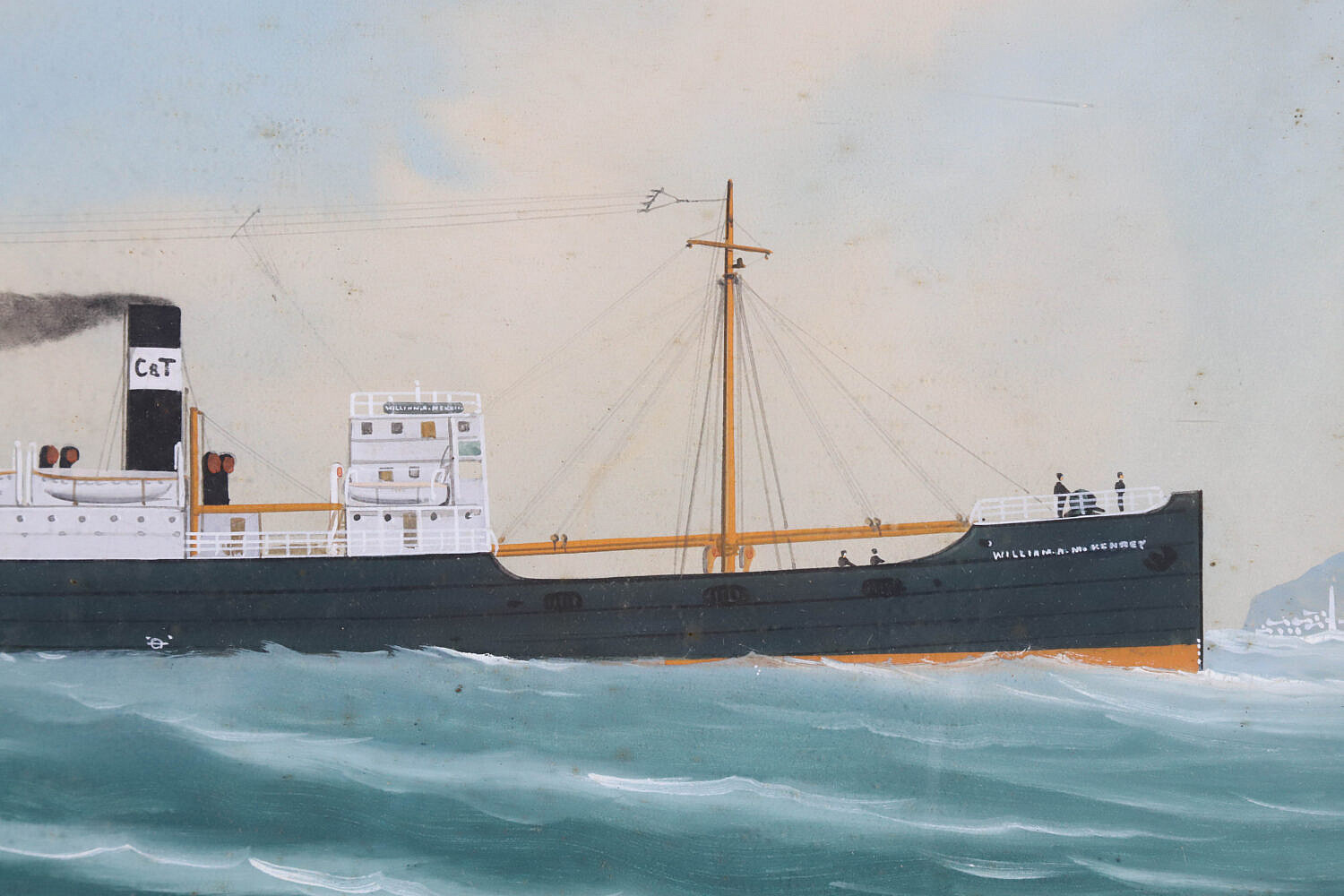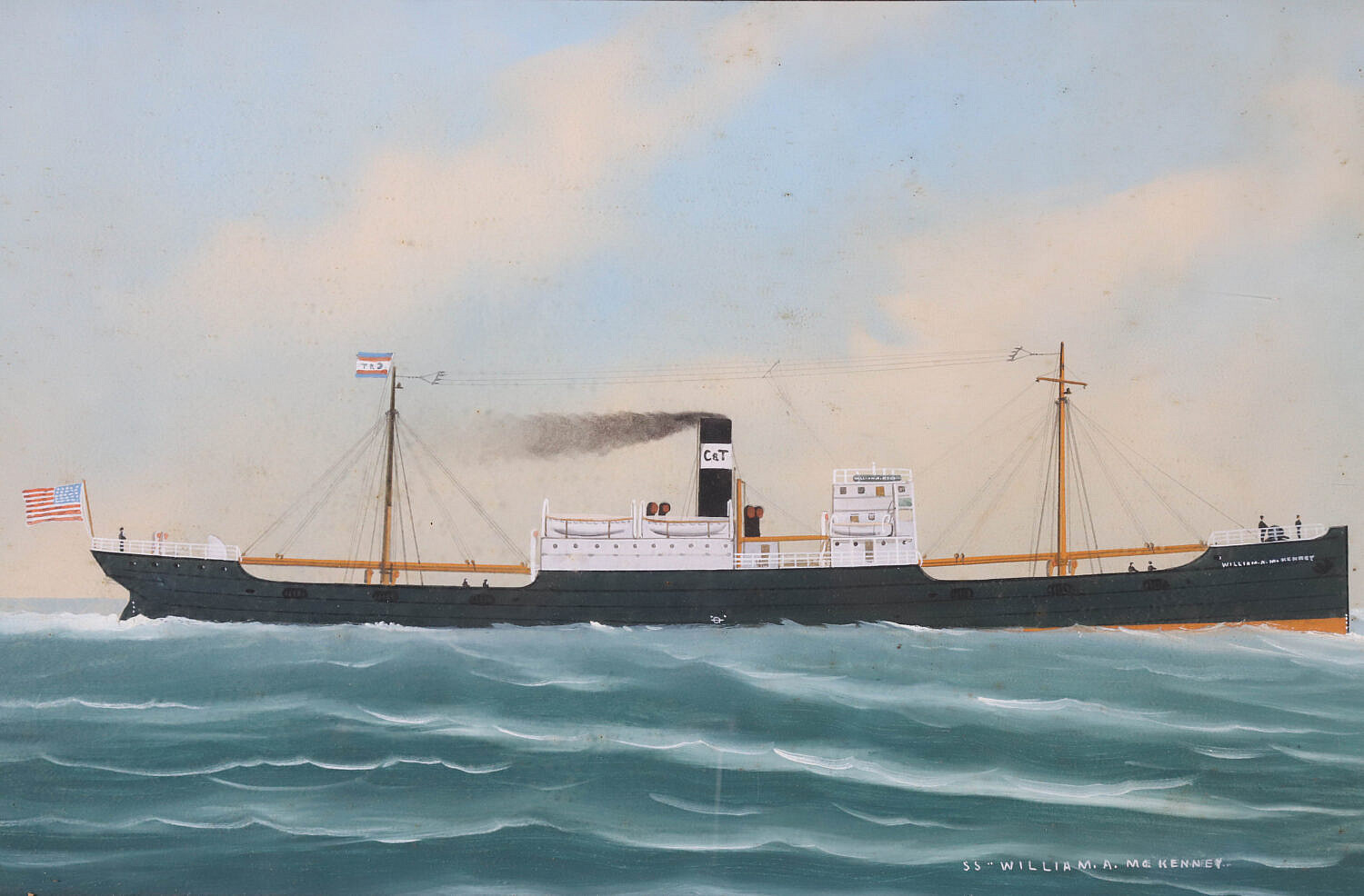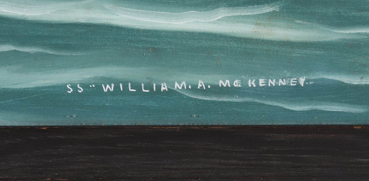 Vintage Oil on Board “Portrait of the Steam Sailer S.S. William M.A. McKenney”, titled lower right, in thin black frame