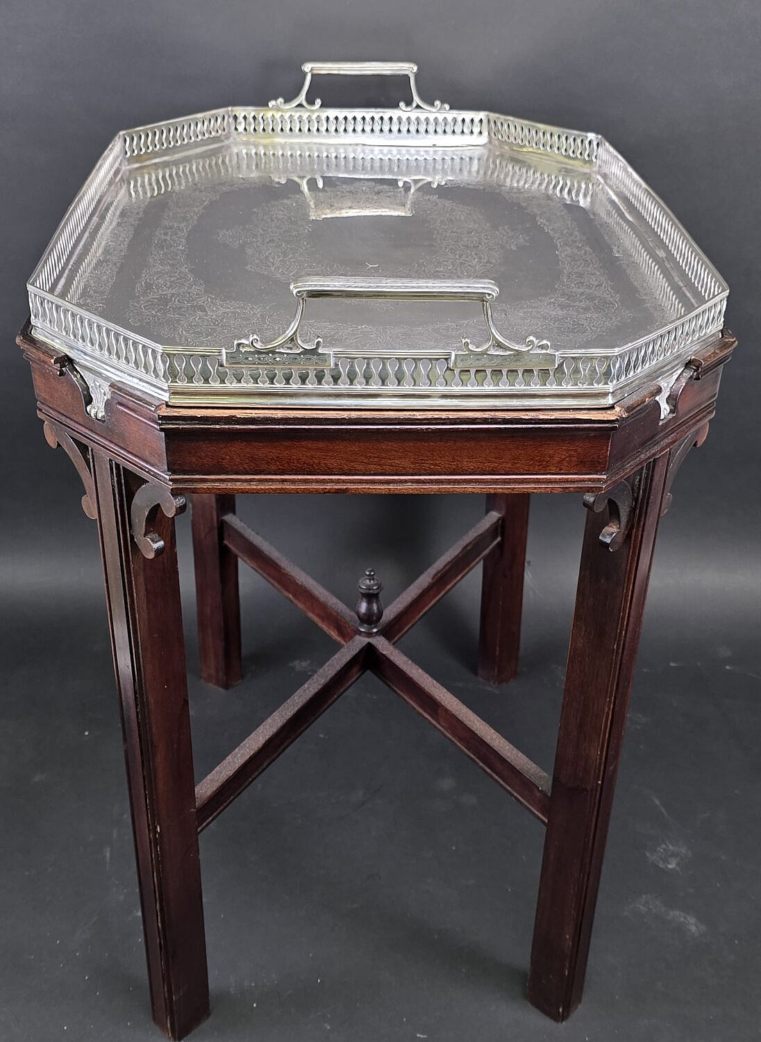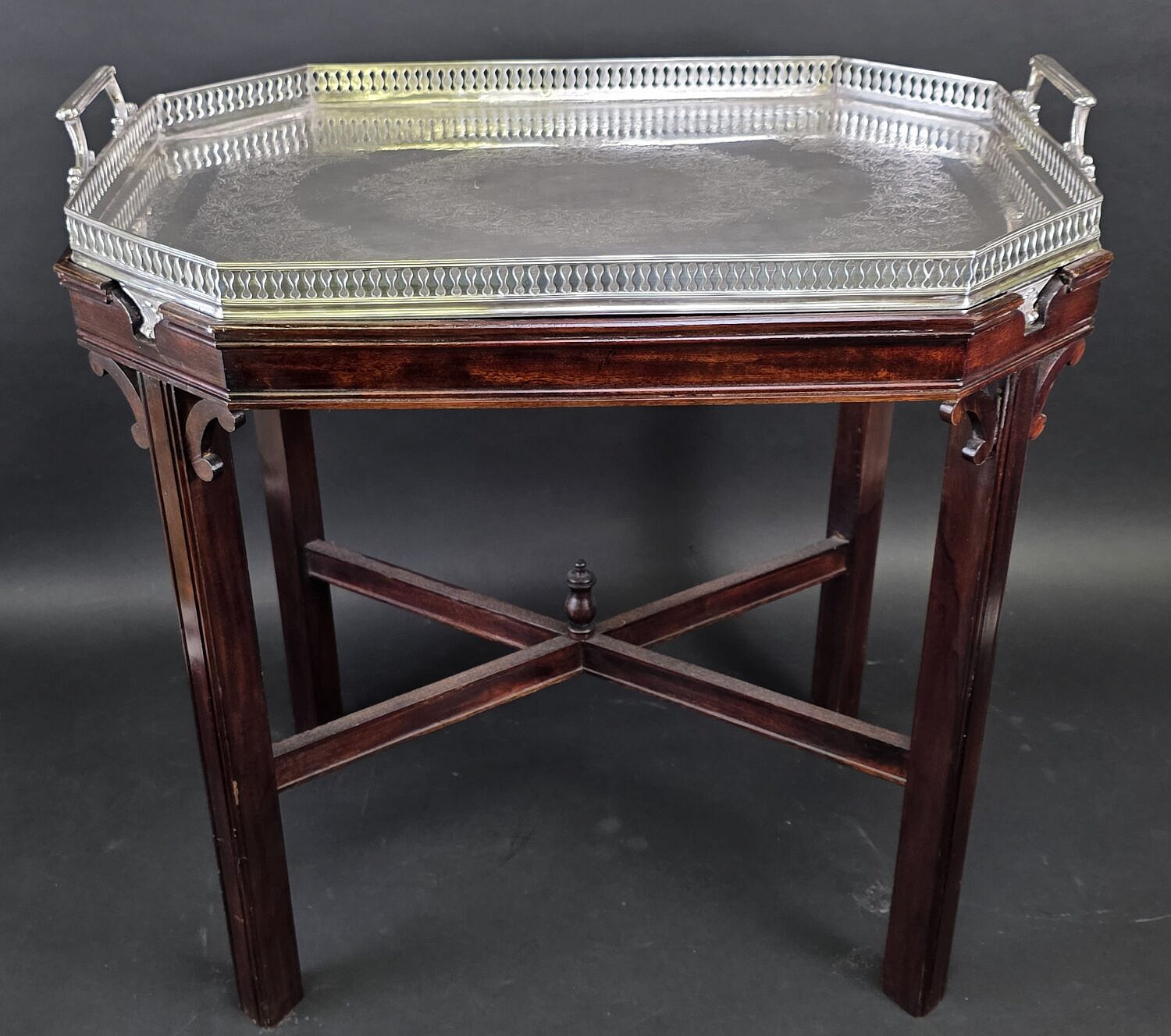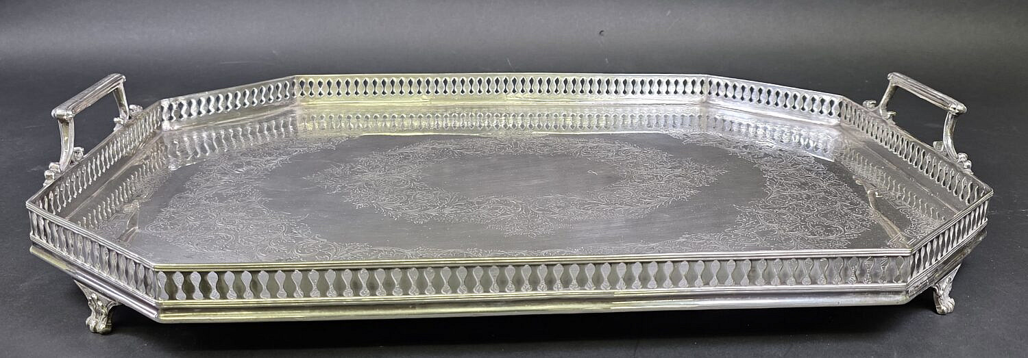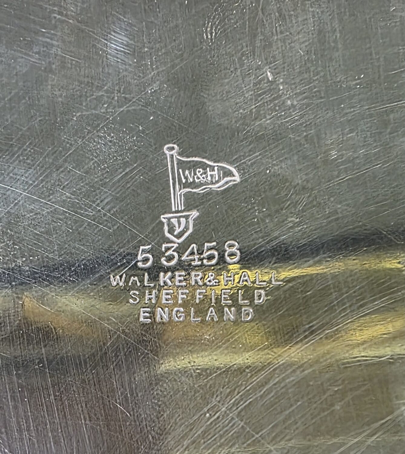 Walker and Hall Silverplate Serving Tray on Stand, custom made base, tray stamped, Walker & Hall Sheffield England 53458.