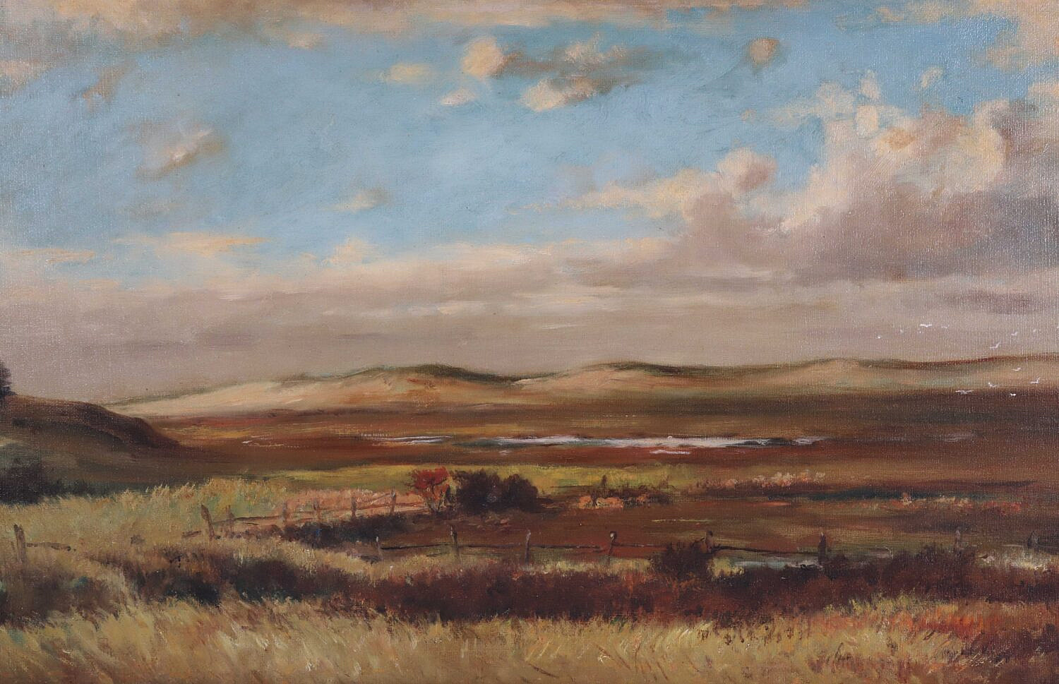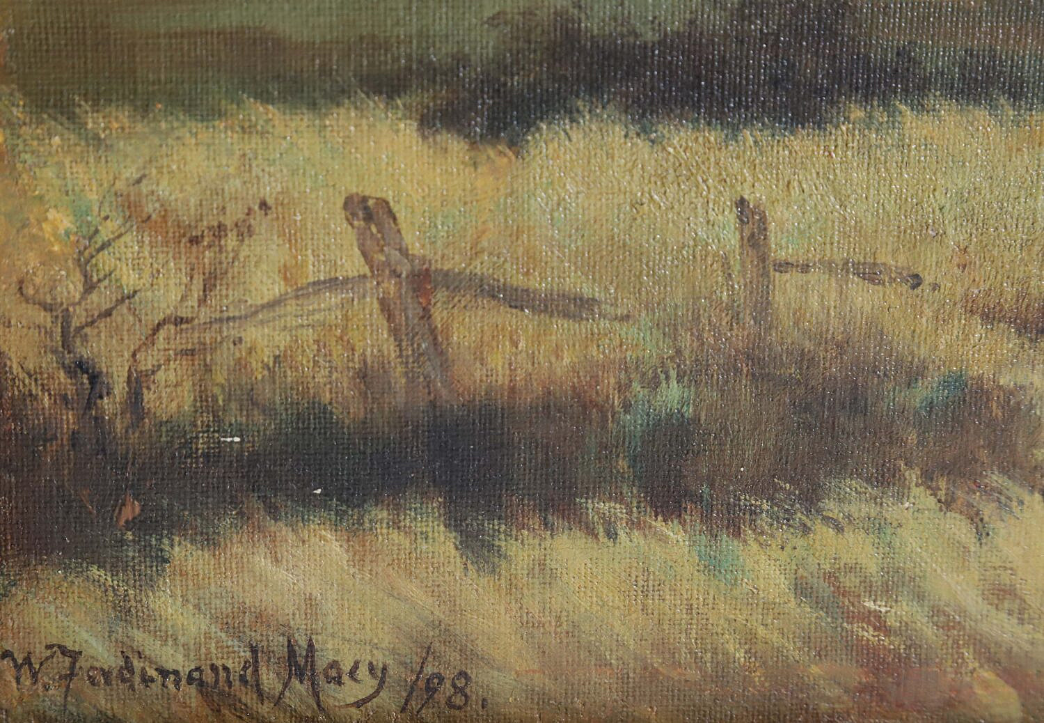 William Ferdinand Macy (Massachusetts 1852-1901) Oil on Lined Canvas “Nantucket Landscape”, signed lower left W. Ferdinand Macy ’98, in thin wood frame