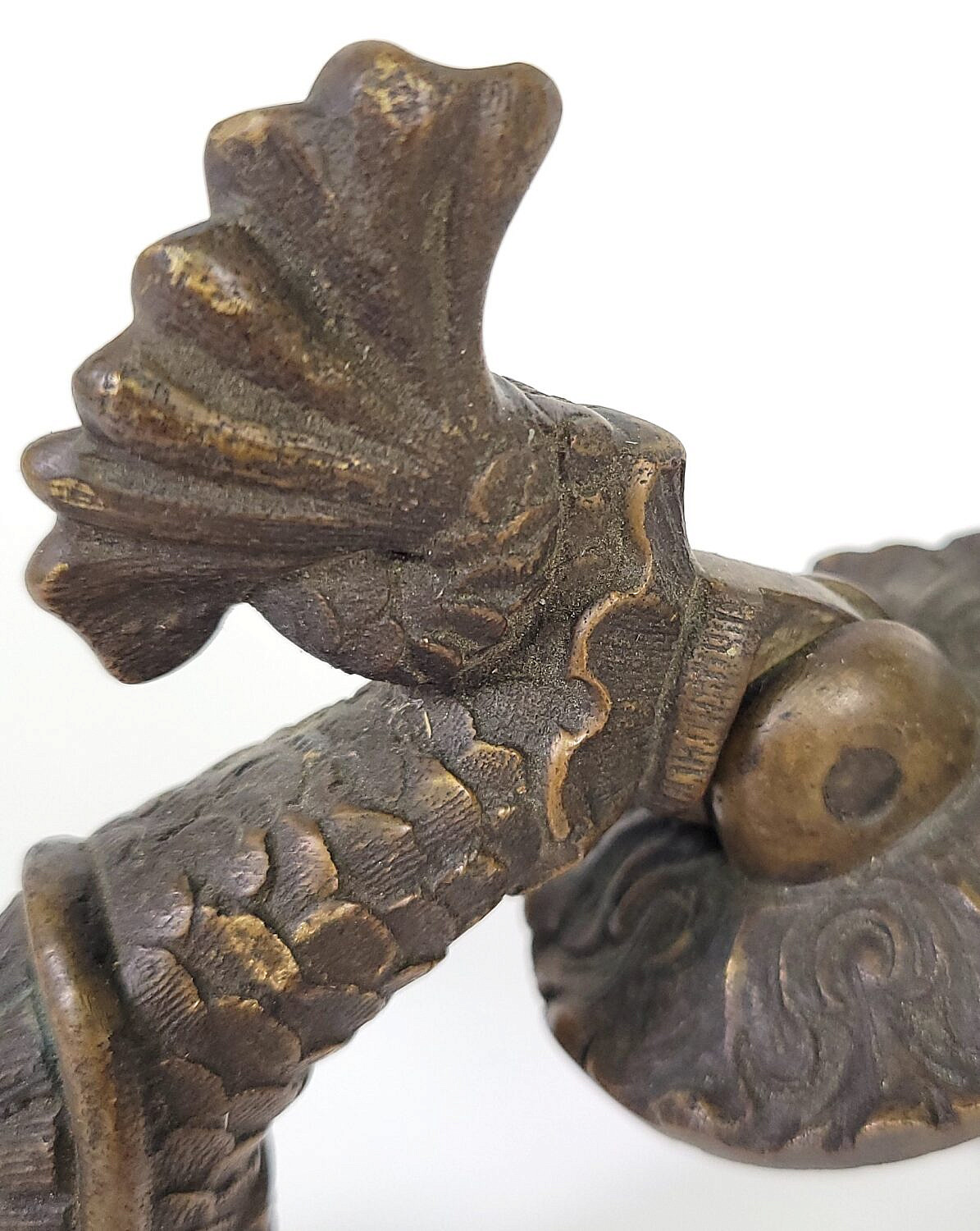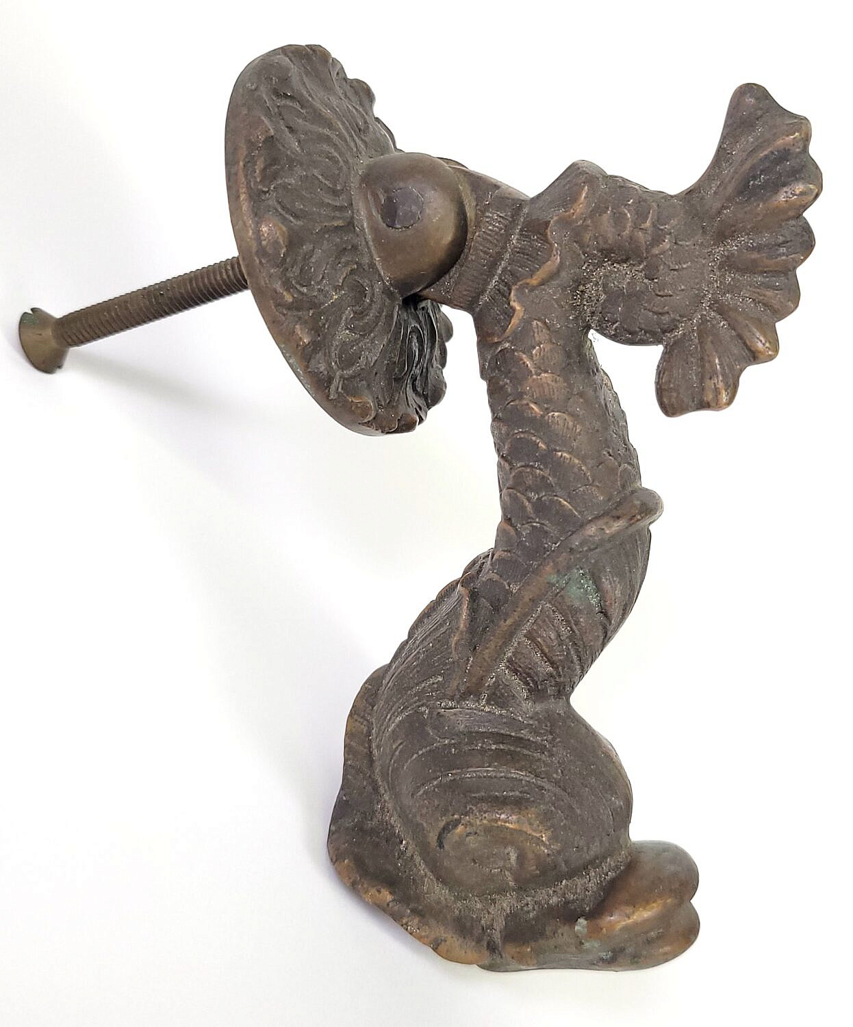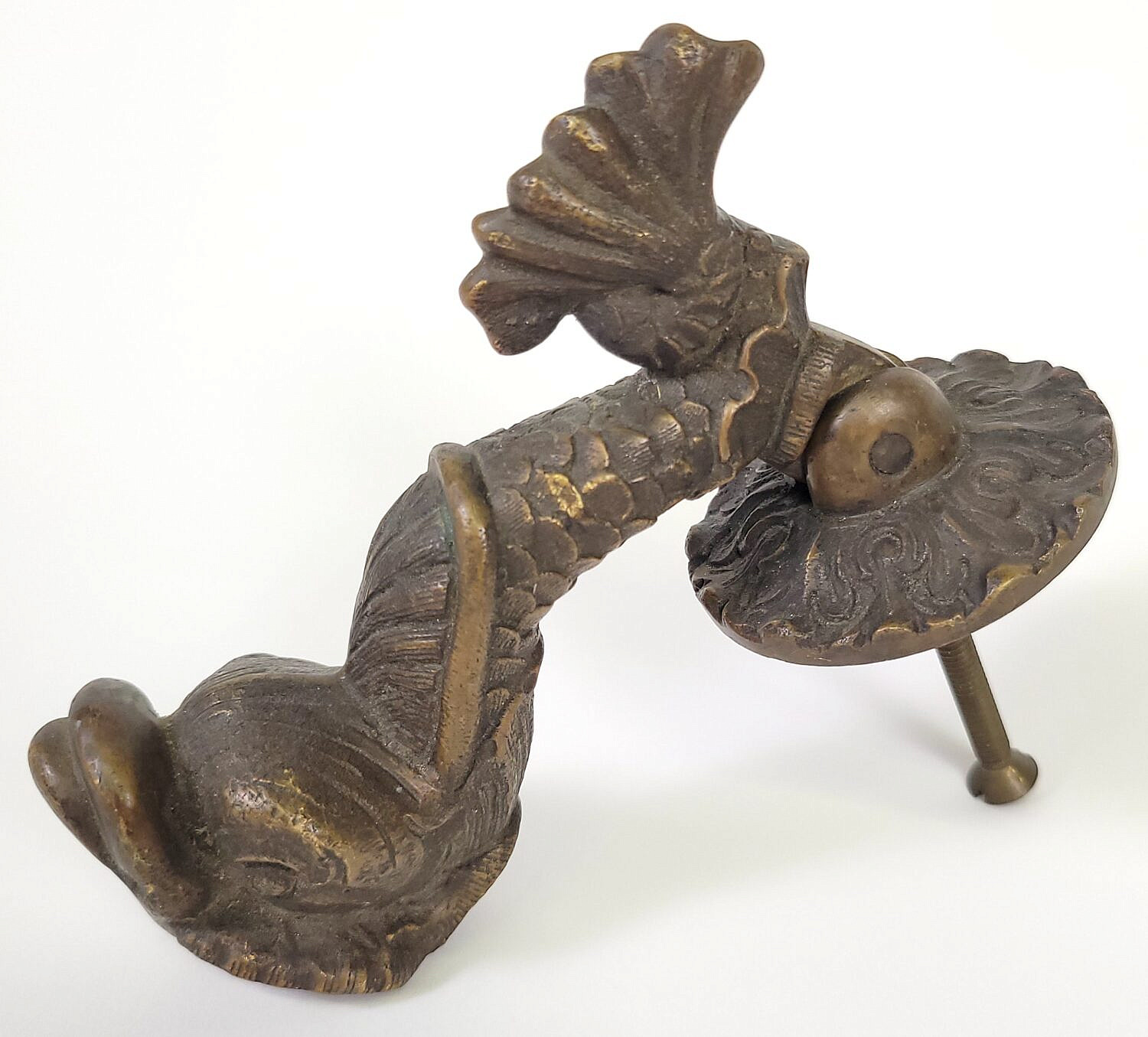 Antique Cast Bronze Dolphin Fish Door Knocker Consign Now DeptDecorative ArtsSizeLength 5 in. Depth 3 in. Antique Cast Bronze Dolphin Fish Door Knocker, finely detailed casting. Length 5 in. Depth 3 in. Please note that this auction has ended. Click here for an overview of this auction.