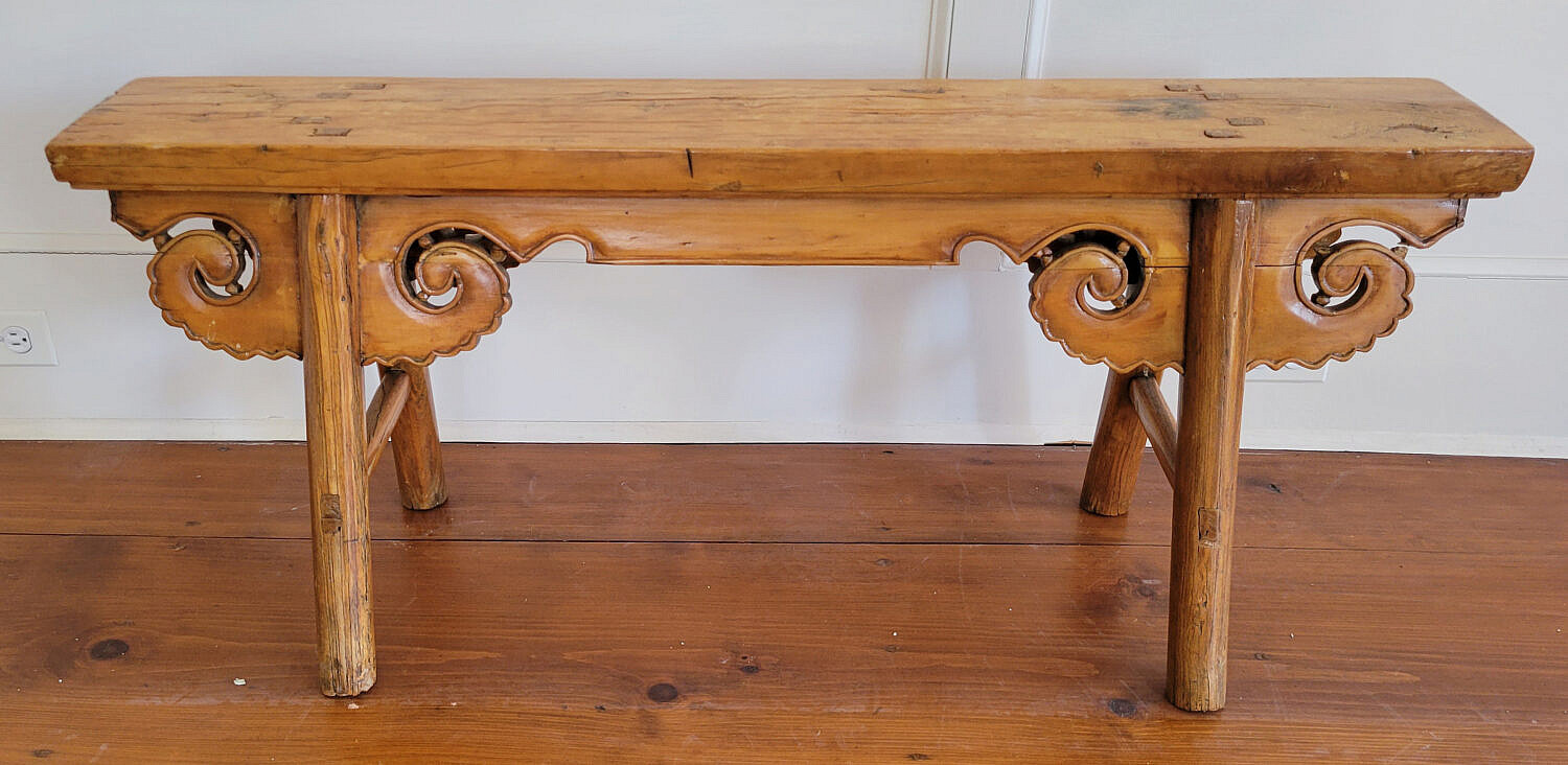 Antique Chinese Elm Kung Fu Bench Consign Now DeptAsian Arts/China Trade, FurnitureSizeHeight 20 in. Length 46 in. Width 8 in. Antique Chinese Elm Kung Fu Bench Height 20 in. Length 46 in. Width 8 in. Provenance: Collection of Susan Akers, 7 Pleasant Street, Nantucket Island, Massachusetts Please note that this auction has ended. Click here for an overview of this auction.