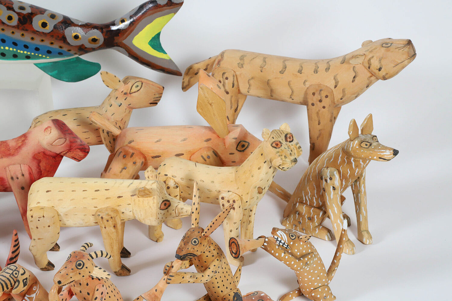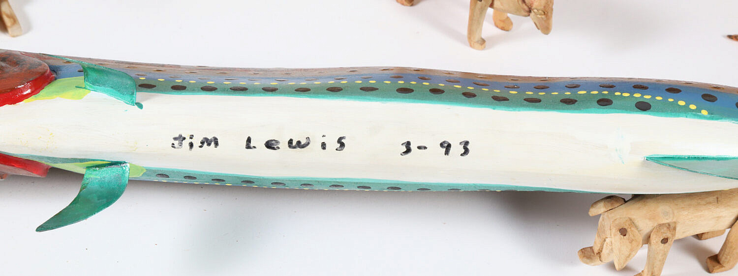 Collection of Thirty-Four Carved Wood Folk Art Animals by Kentucky Artist Jim Lewis Consign Now DeptAmericana and Folk Arts, Decorative Arts Collection of Thirty-Four Carved Folk Art Animals, by Jim Lewis (b.1948 Kentucky), the carved fish signed Jim Lewis and dated 3-93. Provenance: The Estate of Carolyn and Roger Horchow, Nantucket Island, Massachusetts Please note that this auction has ended. Click here for an overview of this auction.