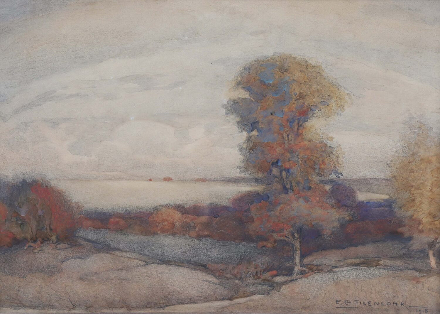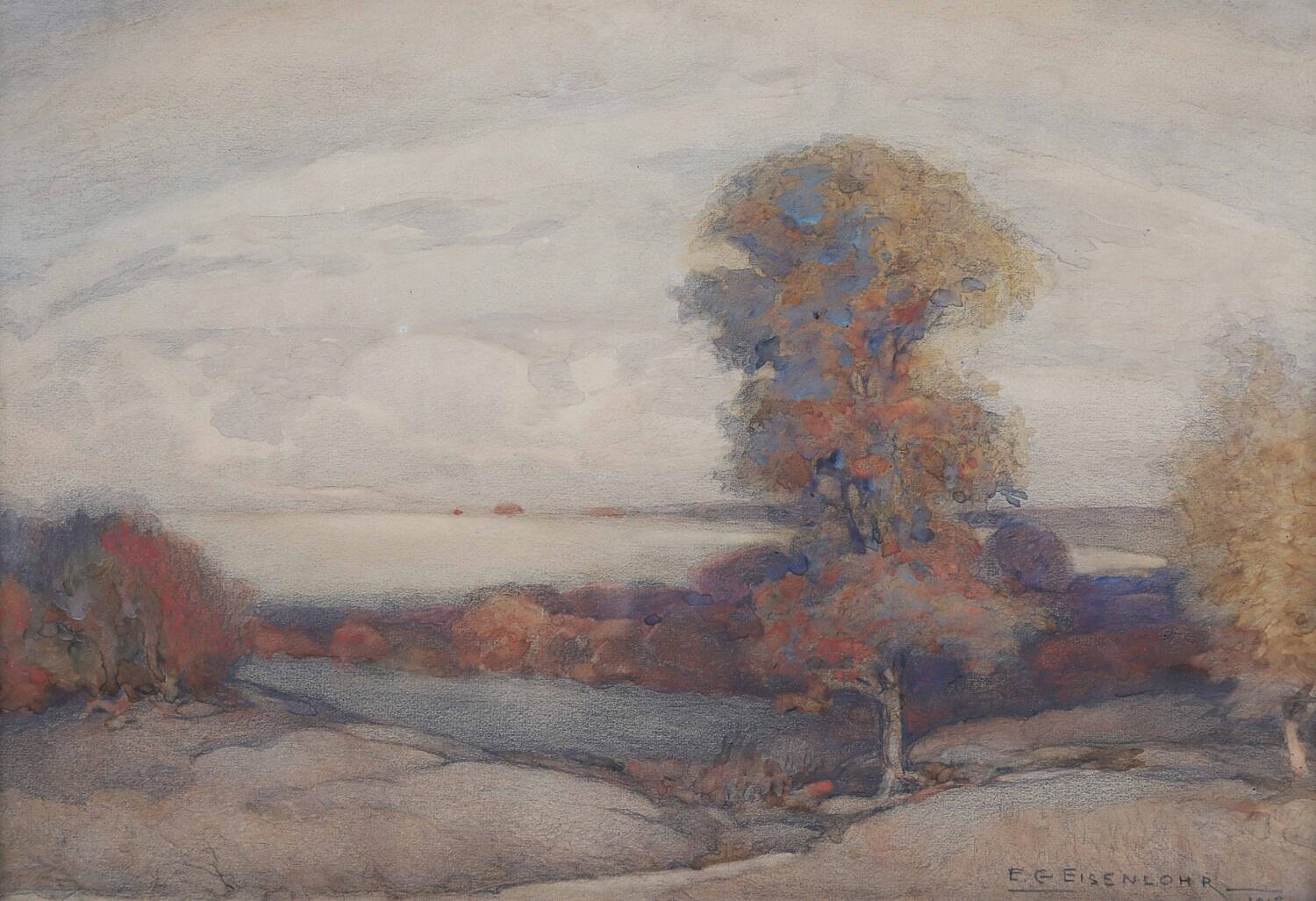 Edward Gustav Eisenlohr Watercolor “Lake Scene”, circa 1918 Consign Now DeptFine ArtsSize8 in. x 11.75 in. Framed 15.5 in. x 19.5 in. Edward Gustav Eisenlohr (1872-1961) Watercolor “Lake Scene”, circa 1918, signed lower right E.G. Eisenlohr, matted and framed 8 in. x 11.75 in. Framed 15.5 in. x 19.5 in. Provenance: The Estate of Carolyn and Roger Horchow, Nantucket, Massachusetts Please note that this auction has ended. Click here for an overview of this auction.