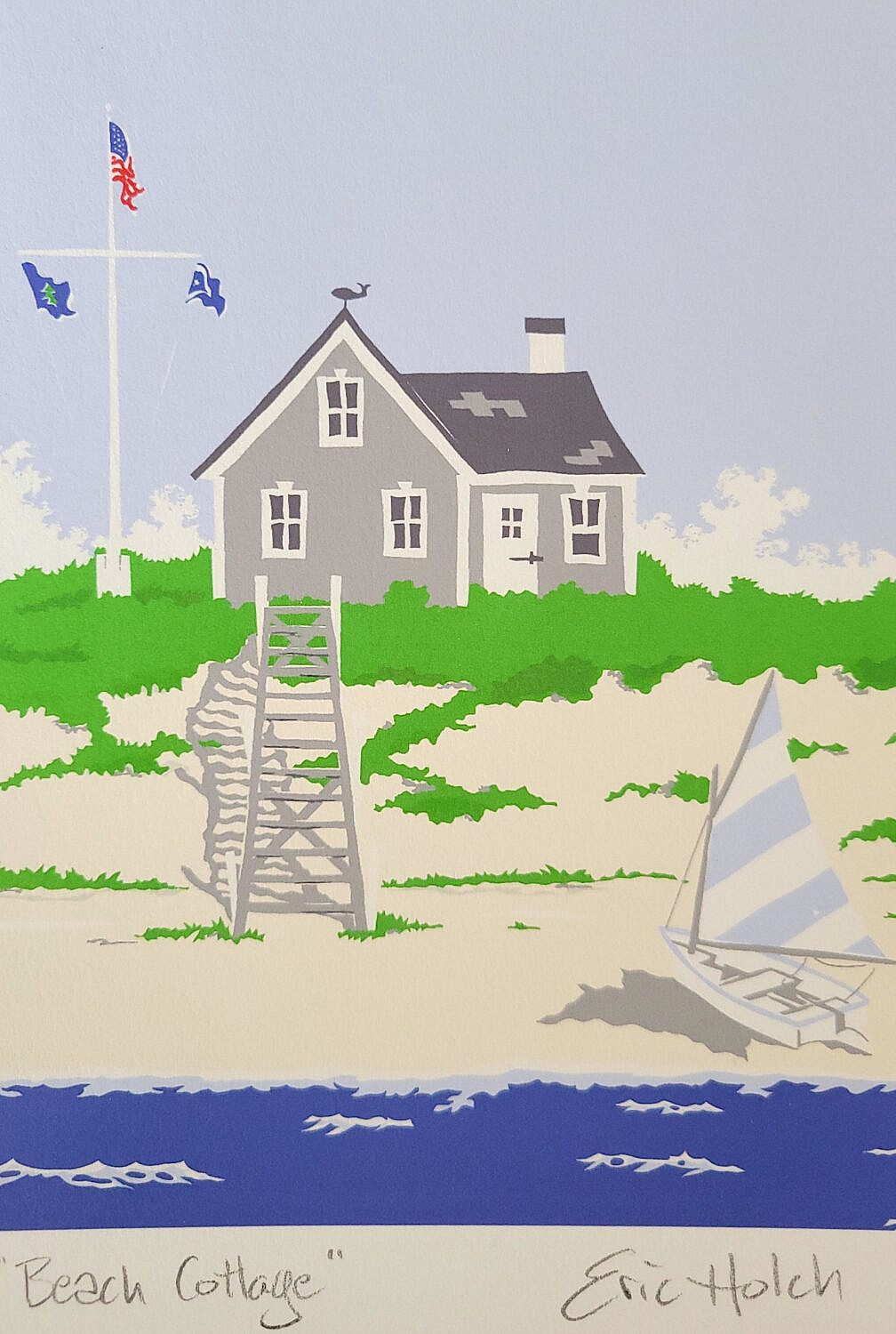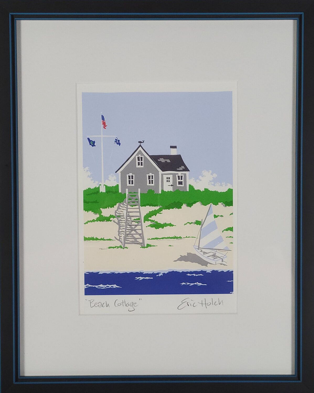 Eric Holch “Beach Cottage” Nantucket Serigraph Print Consign Now DeptNantucket ArtSizeSight 7.25 in. x 5 in. Framed 12.25 in. x 10 in. Eric Holch “Beach Cottage” Nantucket Serigraph Print, with cottage, sailboat, whale weathervane, American and Nantucket flags. Signed in pencil lower right and titled lower left. Sight 7.25 in. x 5 in. Framed 12.25 in. x 10 in. Please note that this auction has ended. Click here for an overview of this auction.