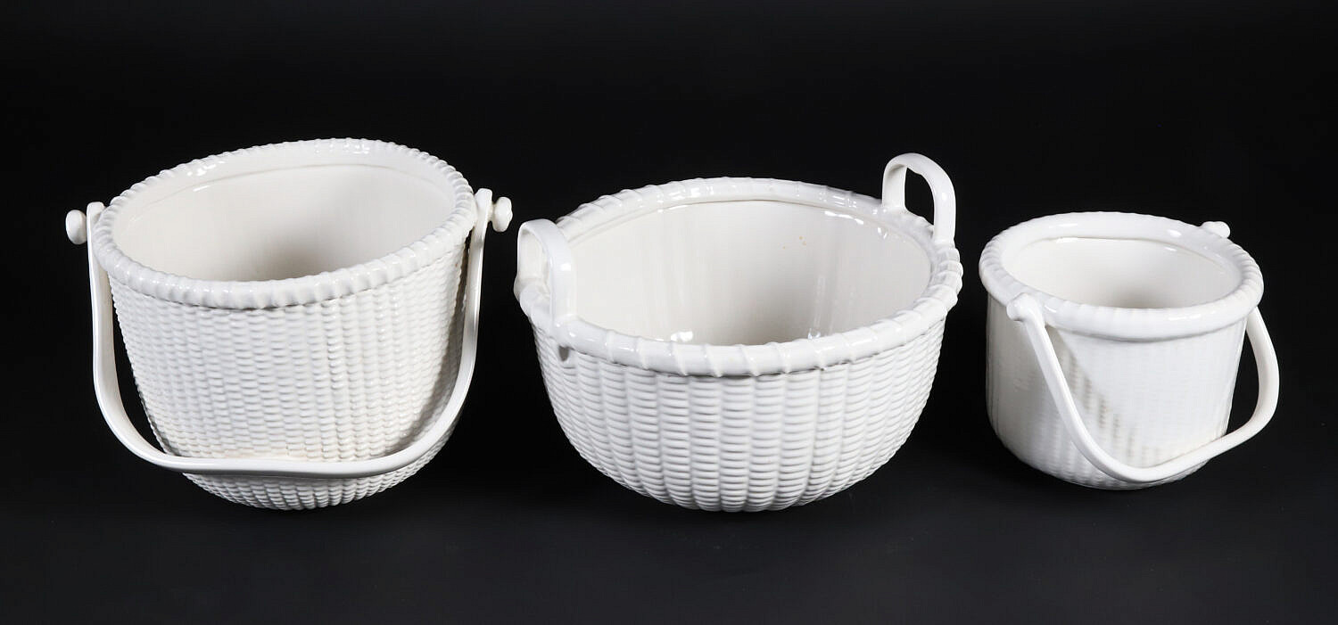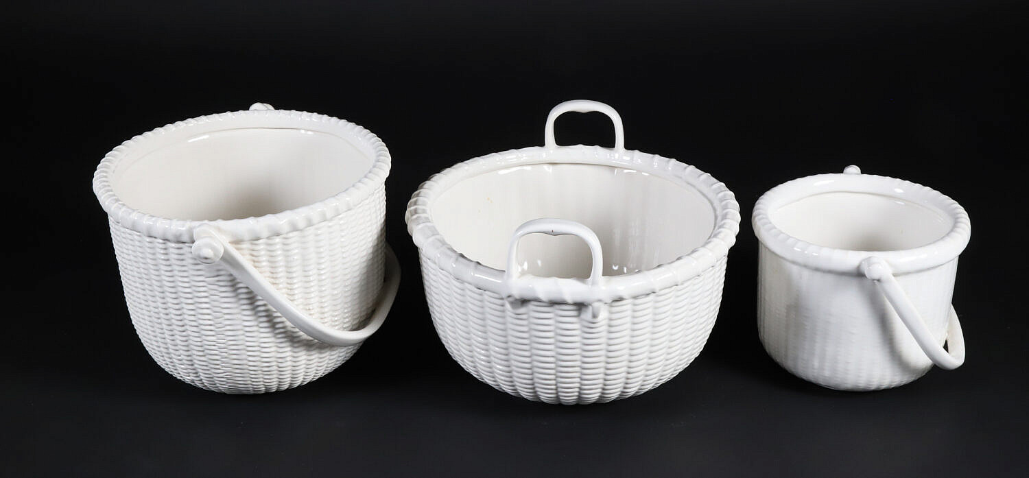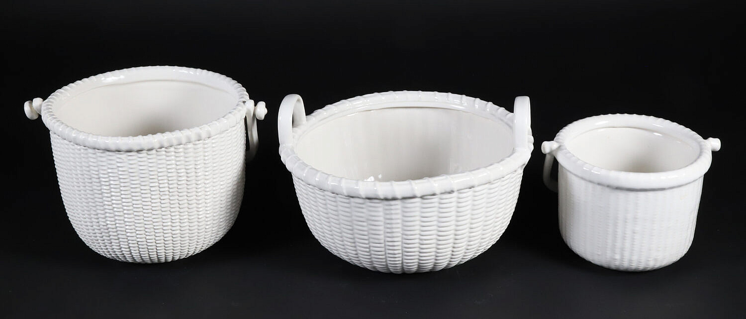 Group of Three George Davis White Painted Ceramic Nantucket Basket Planters Consign Now DeptCeramics & Glass, Decorative Arts, Nantucket BasketsSizeDiameters 5 in. to 9.5 in. Group of Three George Davis White Painted Ceramic Nantucket Basket Planters Diameters 5 in. to 9.5 in. Provenance: Collection of Susan Akers, 7 Pleasant Street, Nantucket Island, Massachusetts Please note that this auction has ended. Click here for an overview of this auction.