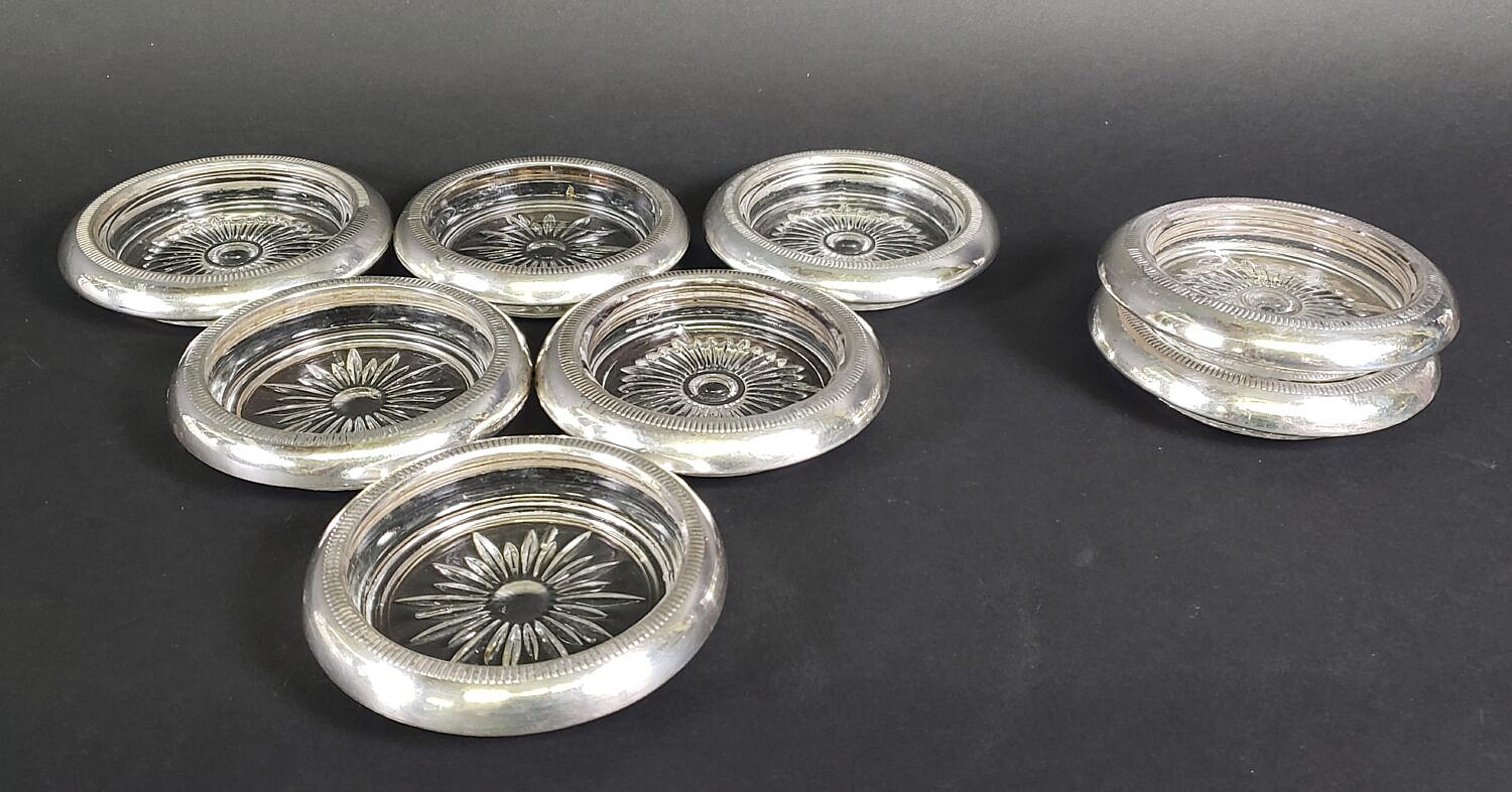 Set of Eight Sterling Silver and Cut Crystal Coasters Consign Now Dept20th Century Design, Decorative Arts, SilverSizeDiameter 4 in. Set of Eight Sterling Silver and Cut Crystal Coasters, each marked sterling. Diameter 4 in. Please note that this auction has ended. Click here for an overview of this auction.