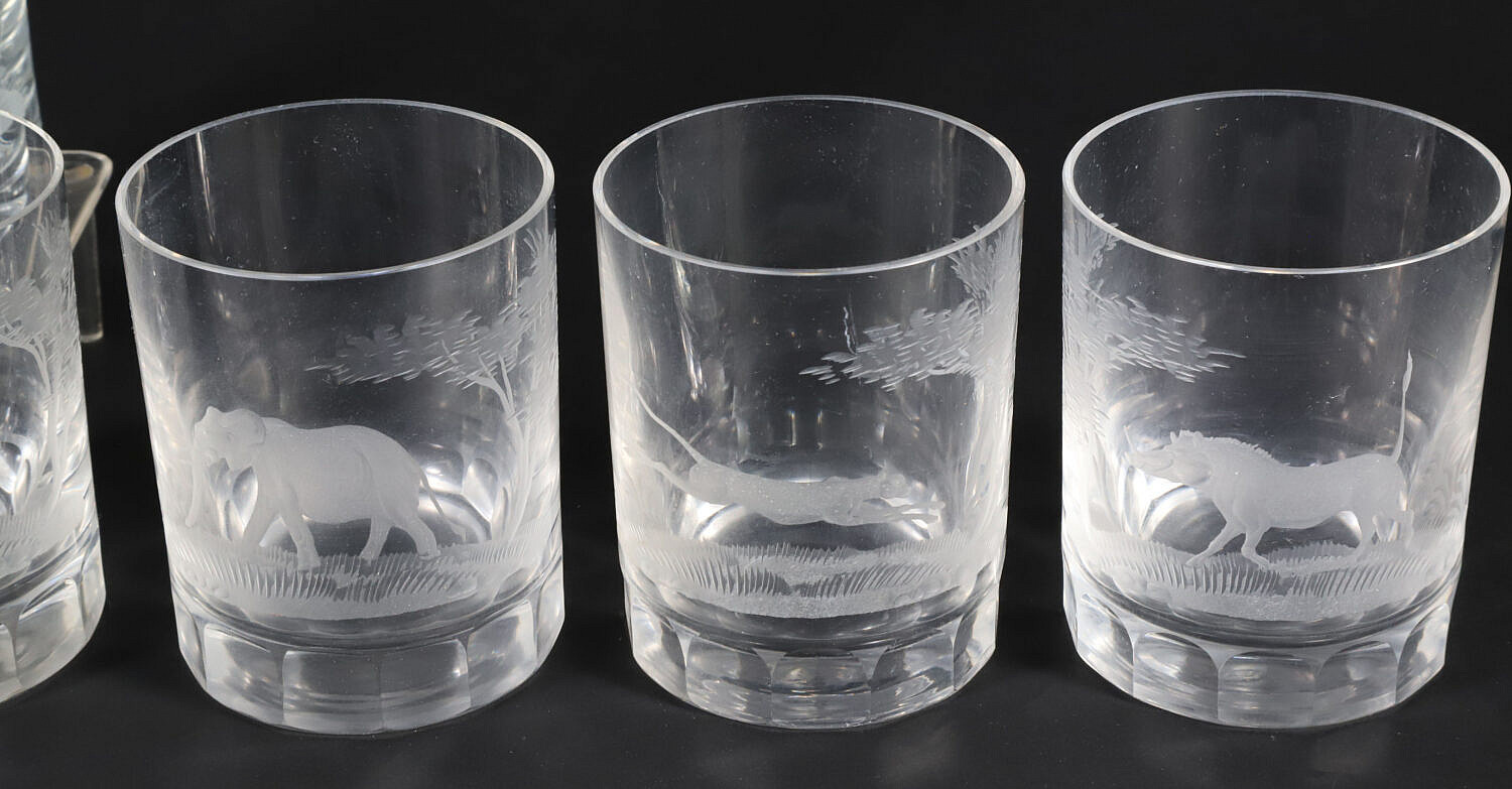 Set of Eight Vintage Safari Animal Engraved Old Fashion Glasses and Ice Bucket Consign Now DeptCeramics & Glass, Decorative ArtsSizeBucket Height 6 in. Diameter 6 in. Set of Eight Vintage Safari Animal Engraved Old Fashion Glasses and Ice Bucket Bucket Height 6 in. Diameter 6 in. Provenance: Collection of Susan Akers, 7 Pleasant Street, Nantucket Island, Massachusetts Please note that this auction has ended. Click here for an overview of this auction.