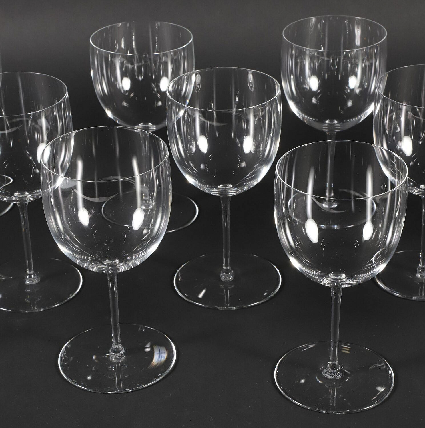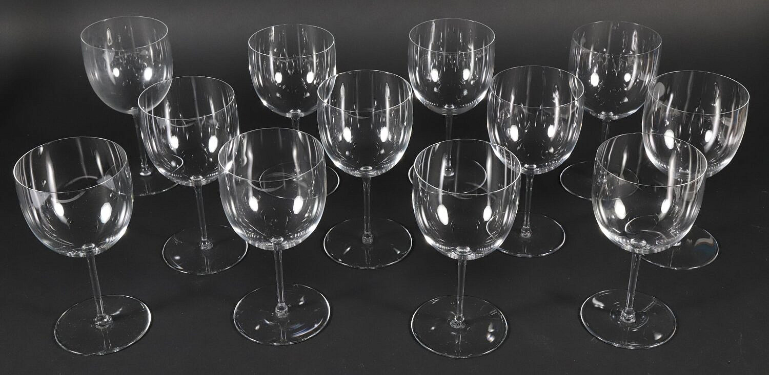 Eleven Baccarat Crystal Wine Glasses Consign Now DeptCeramics & Glass, Decorative ArtsSizeHeight 7 in. Eleven Baccarat Crystal Wine Glasses Height 7 in. Provenance: The Estate of Carole Webster, Nantucket Island, Massachusetts Note: 12 glasses shown in photo 11 glasses in lot Please note that this auction has ended. Click here for an overview of this auction.