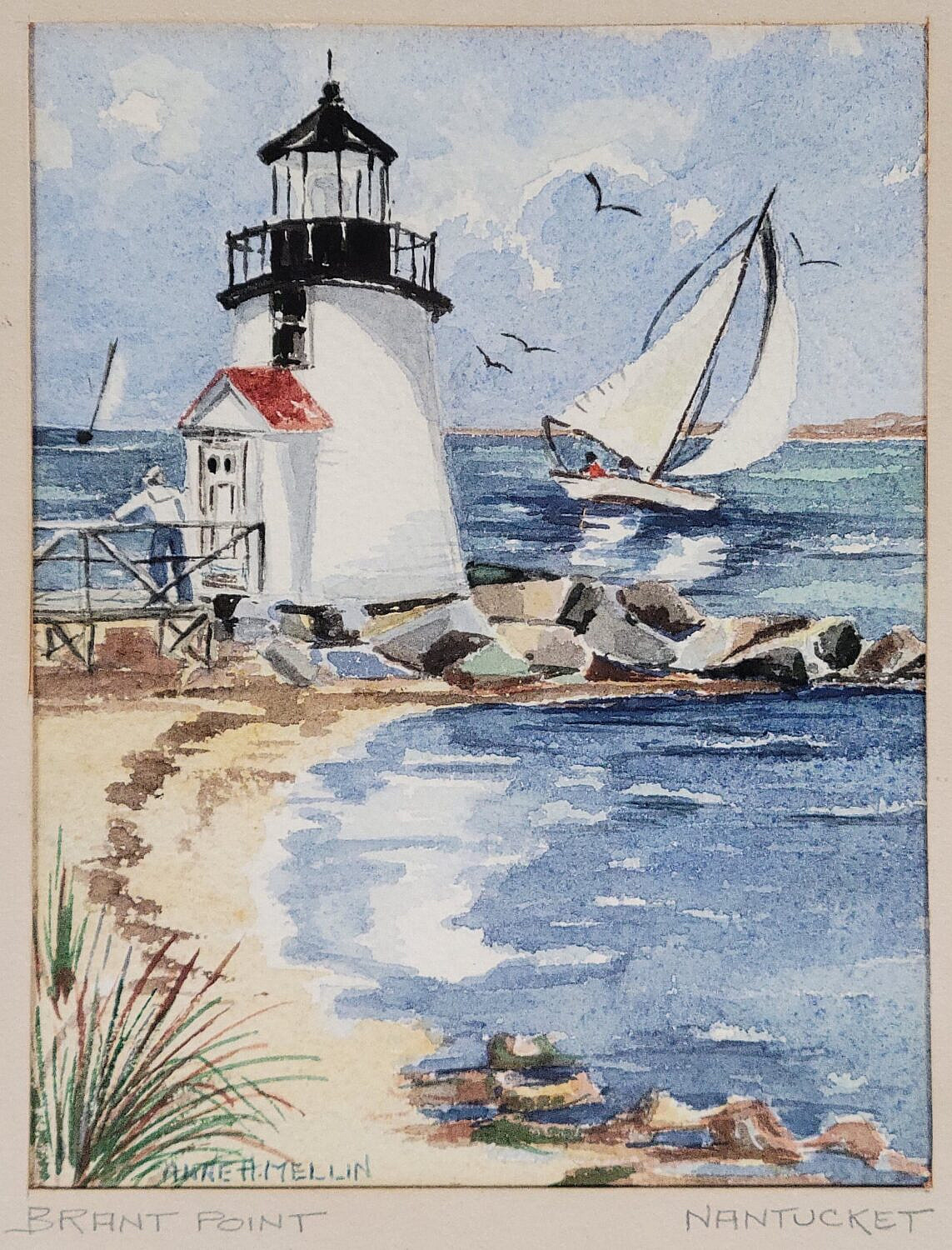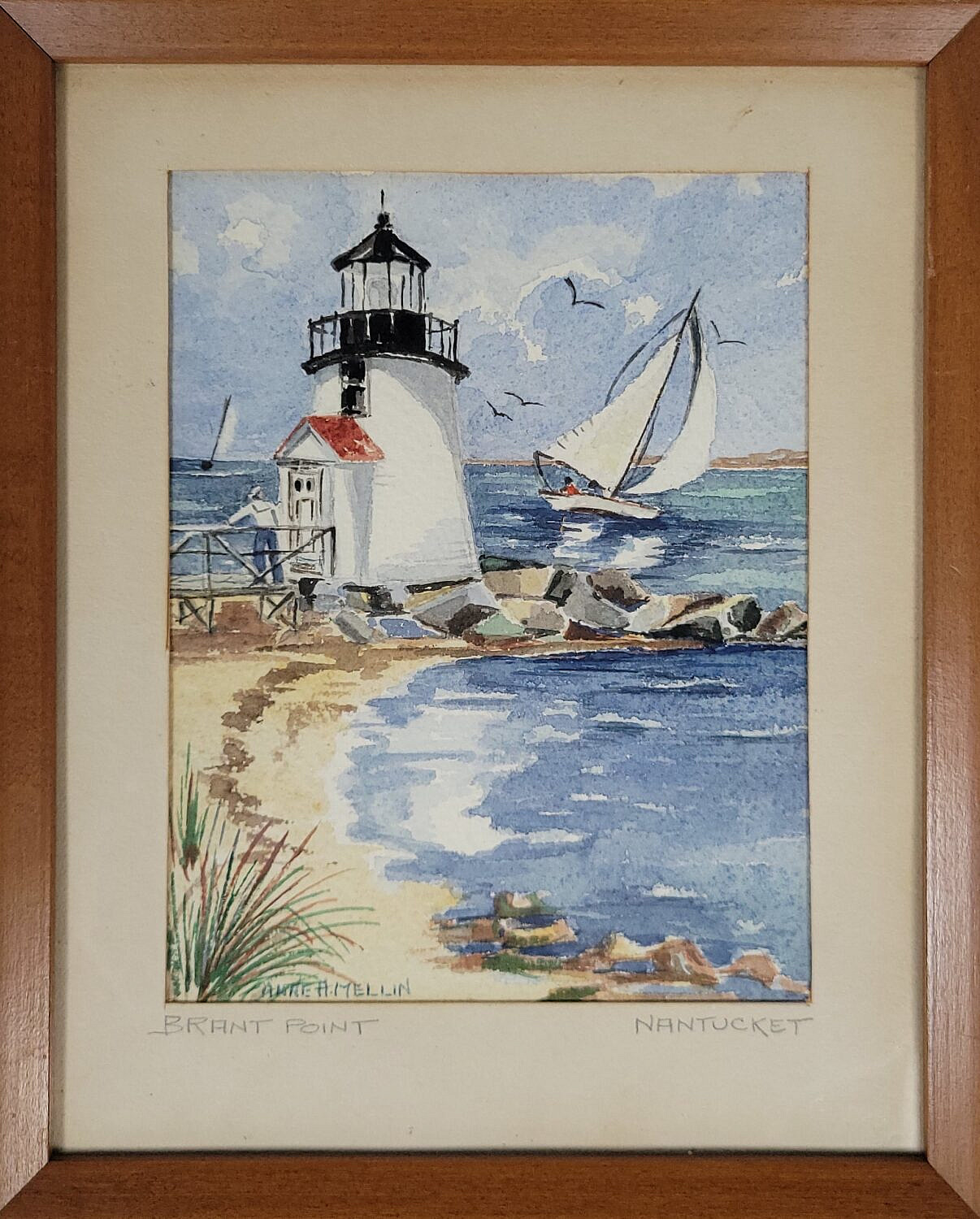 Vintage Anne H. Mellin Watercolor “Brant Point, Nantucket” Consign Now DeptNantucket ArtSizeSight 7 in. x 5.5 in. Framed 10.25 in. x 8.5 in. Vintage Anne H. Mellin Watercolor “Brant Point, Nantucket” signed lower left, in original frame and mat with artist’s pencil inscriptions. Sight 7 in. x 5.5 in. Framed 10.25 in. x 8.5 in. Please note that this auction has ended. Click here for an overview of this auction.
