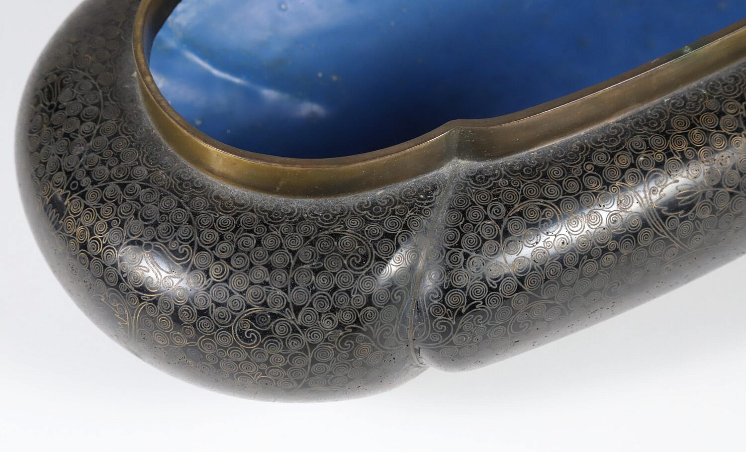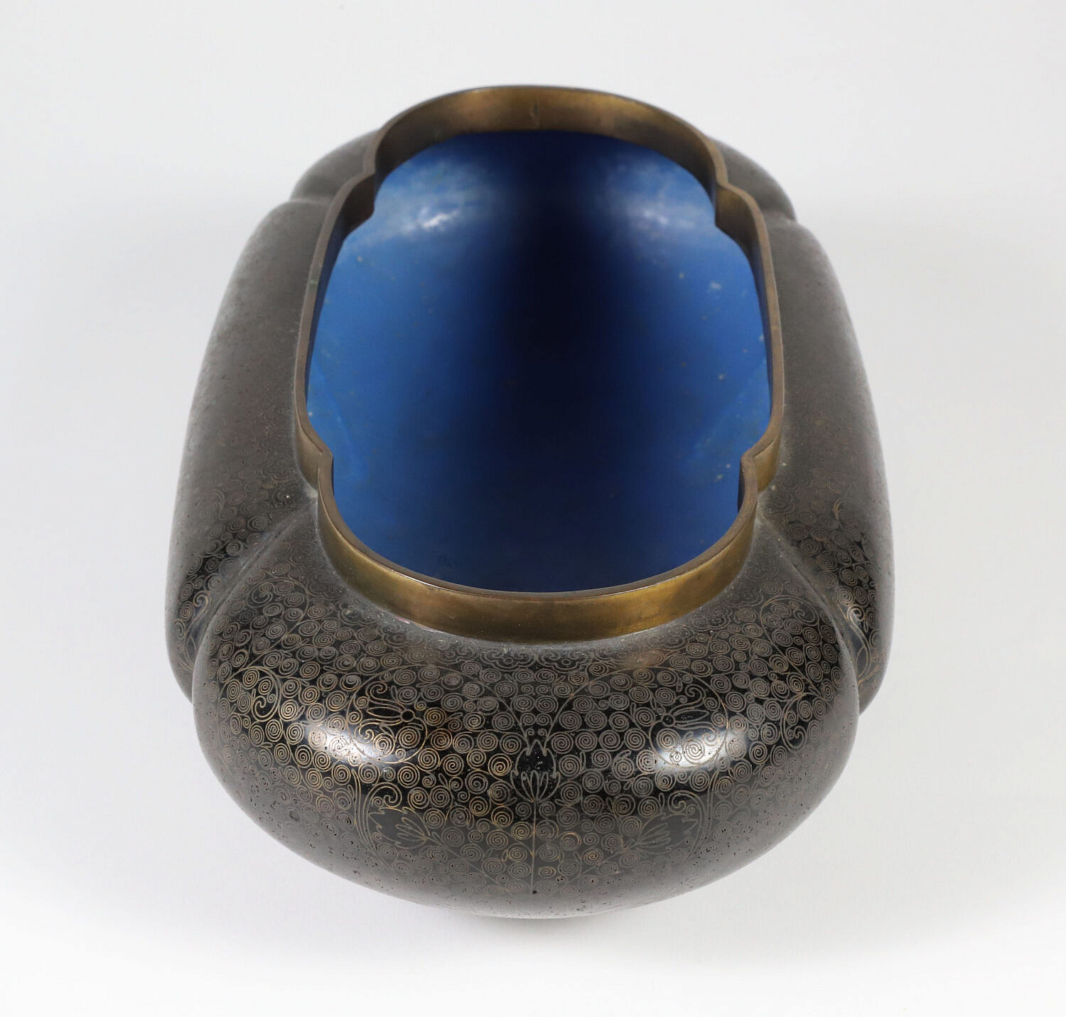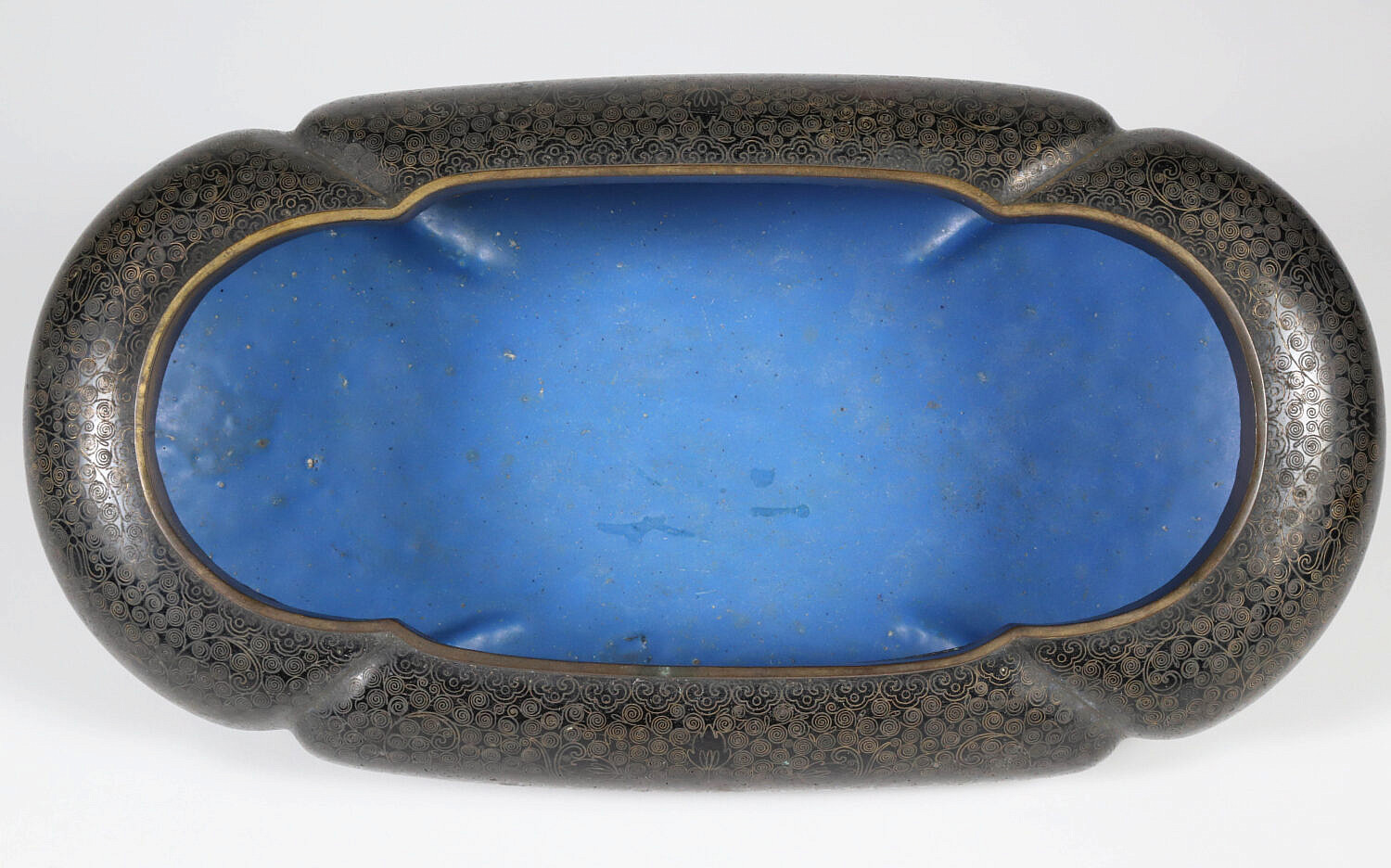 Vintage Chinese Cloisonne Oval Planter Consign Now DeptAsian Arts/China Trade, Decorative ArtsSizeHeight 3 in. Length 12 in. Width 7 in. Vintage Chinese Cloisonne Oval Planter, decorated with continuous foliate scrolls on a black ground, raised on an oval foot Height 3 in. Length 12 in. Width 7 in. Provenance: Collection of Susan Akers, 7 Pleasant Street, Nantucket Island, Massachusetts Please note that this auction has ended. Click here for an overview of this auction.