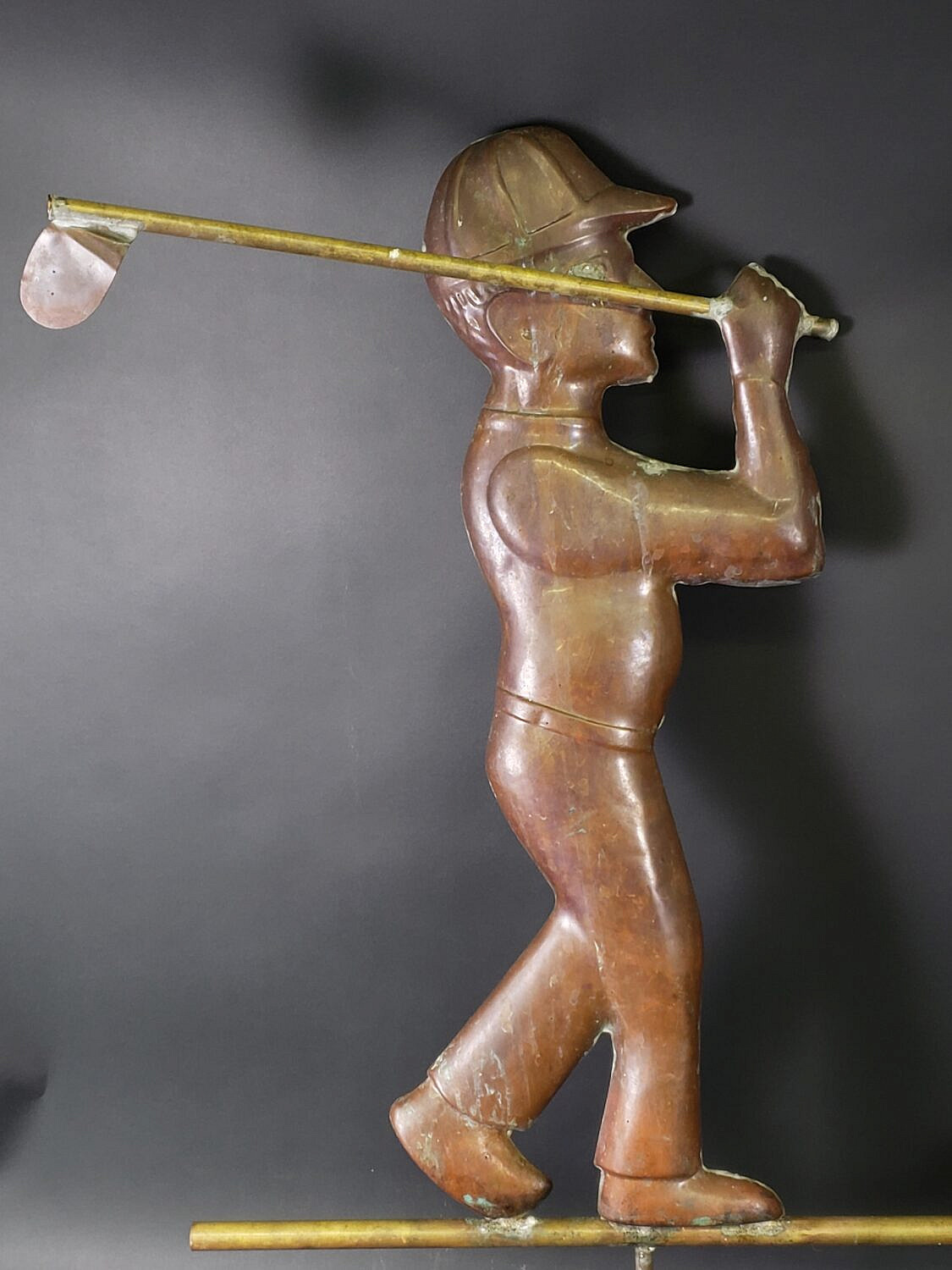 Vintage Figural Copper Animated Golfer Weathervane, 20th century Consign Now DeptDecorative ArtsSize31 in. x 23.5 in. Vintage Figural Copper Animated Golfer Weathervane, 20th century 31 in. x 23.5 in. Please note that this auction has ended. Click here for an overview of this auction.