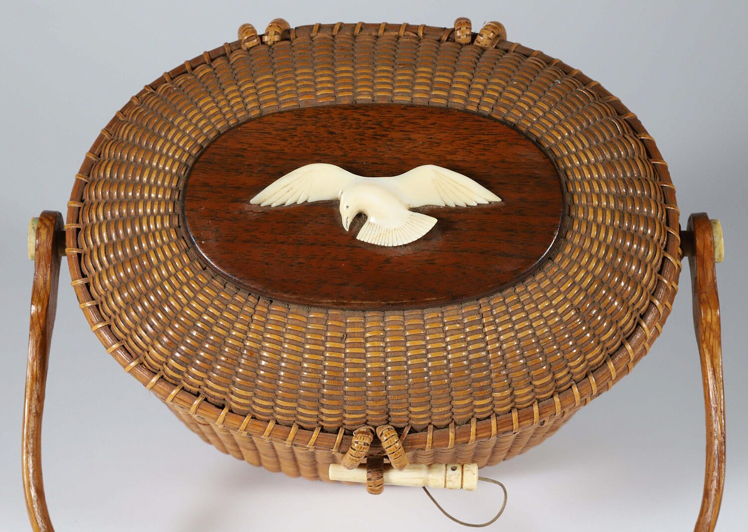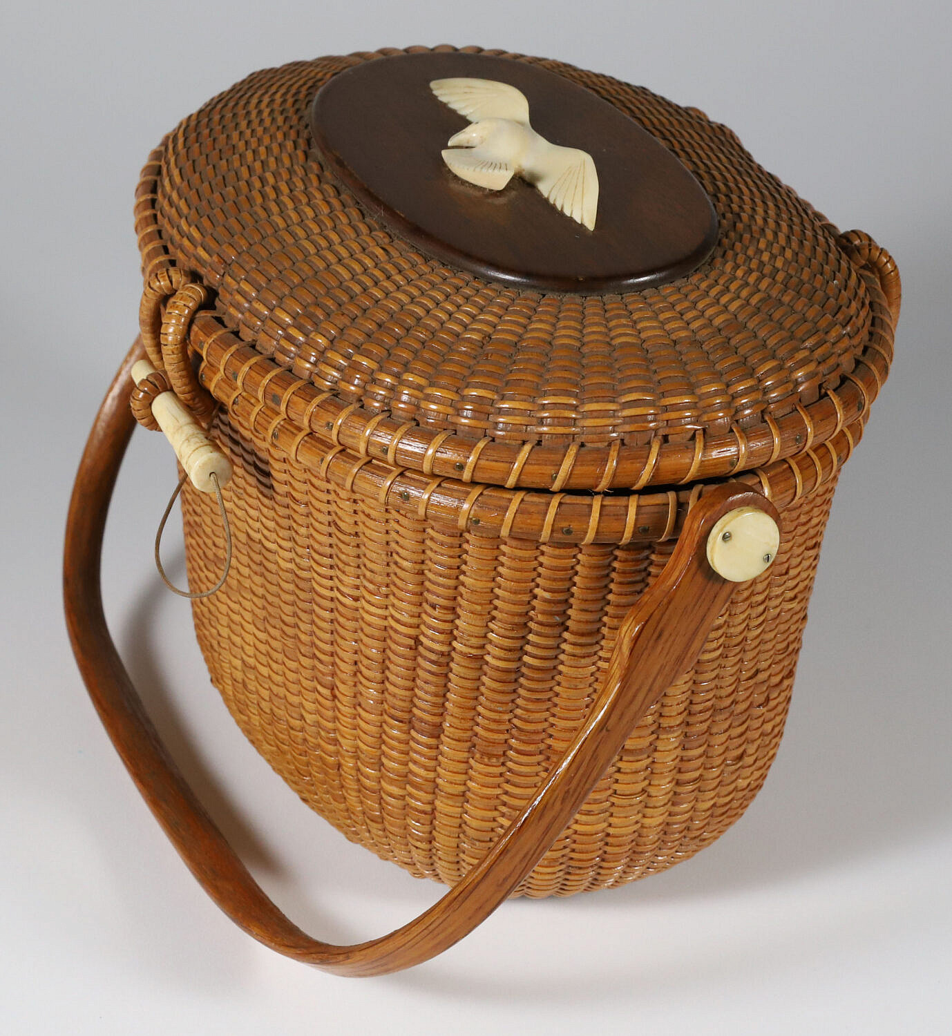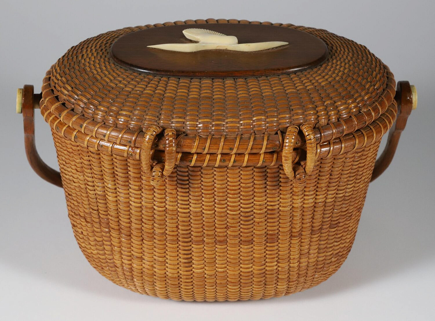 Whaler’s Craft Nantucket Friendship Basket, circa 1967 Consign Now DeptNantucket BasketsSizeHeight 6.5 in. Width 10 in. Depth 7 in. Whaler’s Craft Nantucket Friendship Basket, with carved spread-winged seagull on top, with maker’s mark disc: Whaler’s Craft, 1967 Height 6.5 in. Width 10 in. Depth 7 in. Please note that this auction has ended. Click here for an overview of this auction.