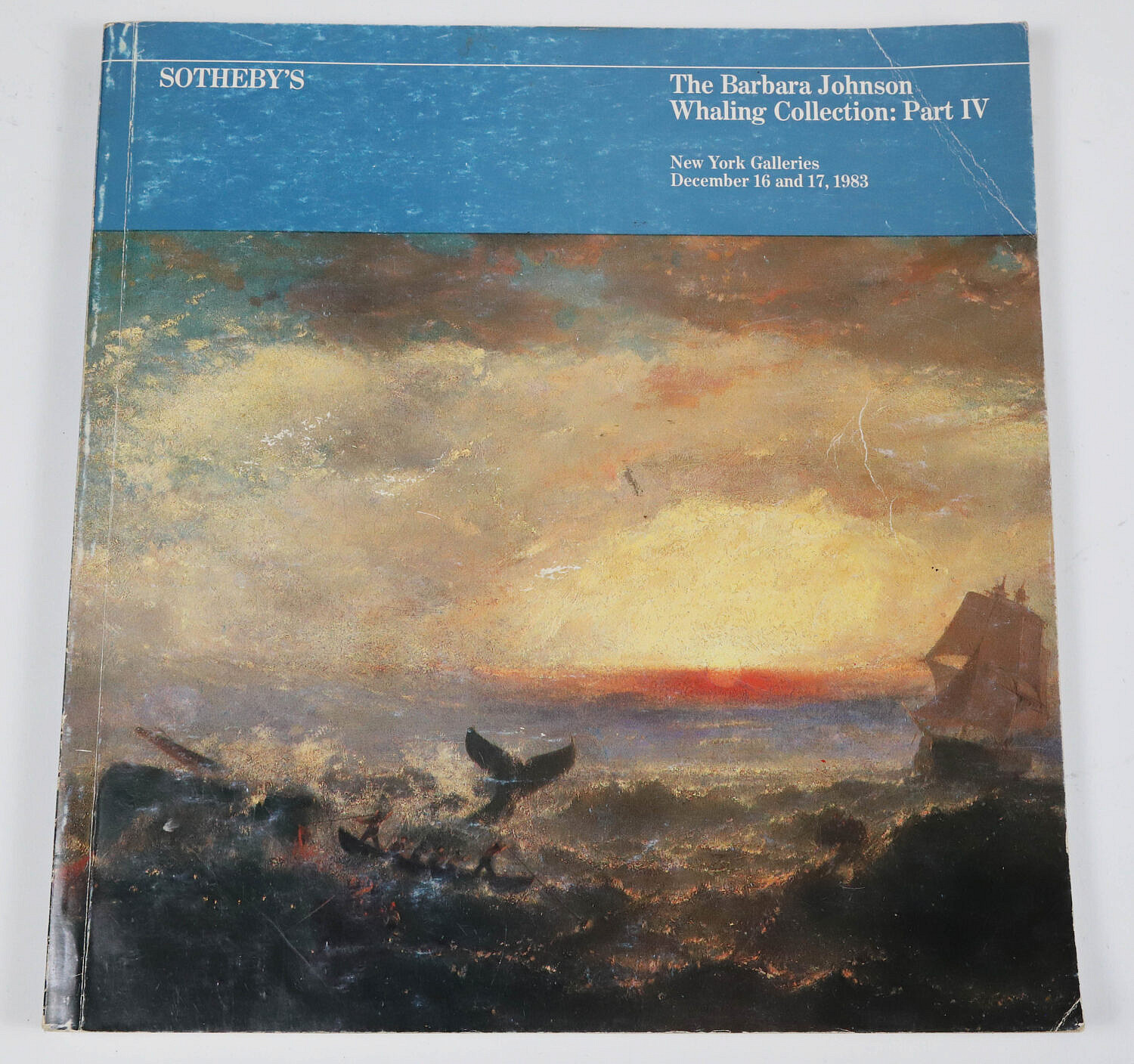 Four Sotheby’s Auction Catalogs: Barbara Johnson Whaling Collection Part I, II, III, IV Consign Now DeptDecorative Arts, Maritime Arts Four Sotheby’s Auction Catalogs: Barbara Johnson Whaling Collection, Part I, II, III, IV, 1981, 1982, 1983 Please note that this auction has ended. Click here for an overview of this auction.
