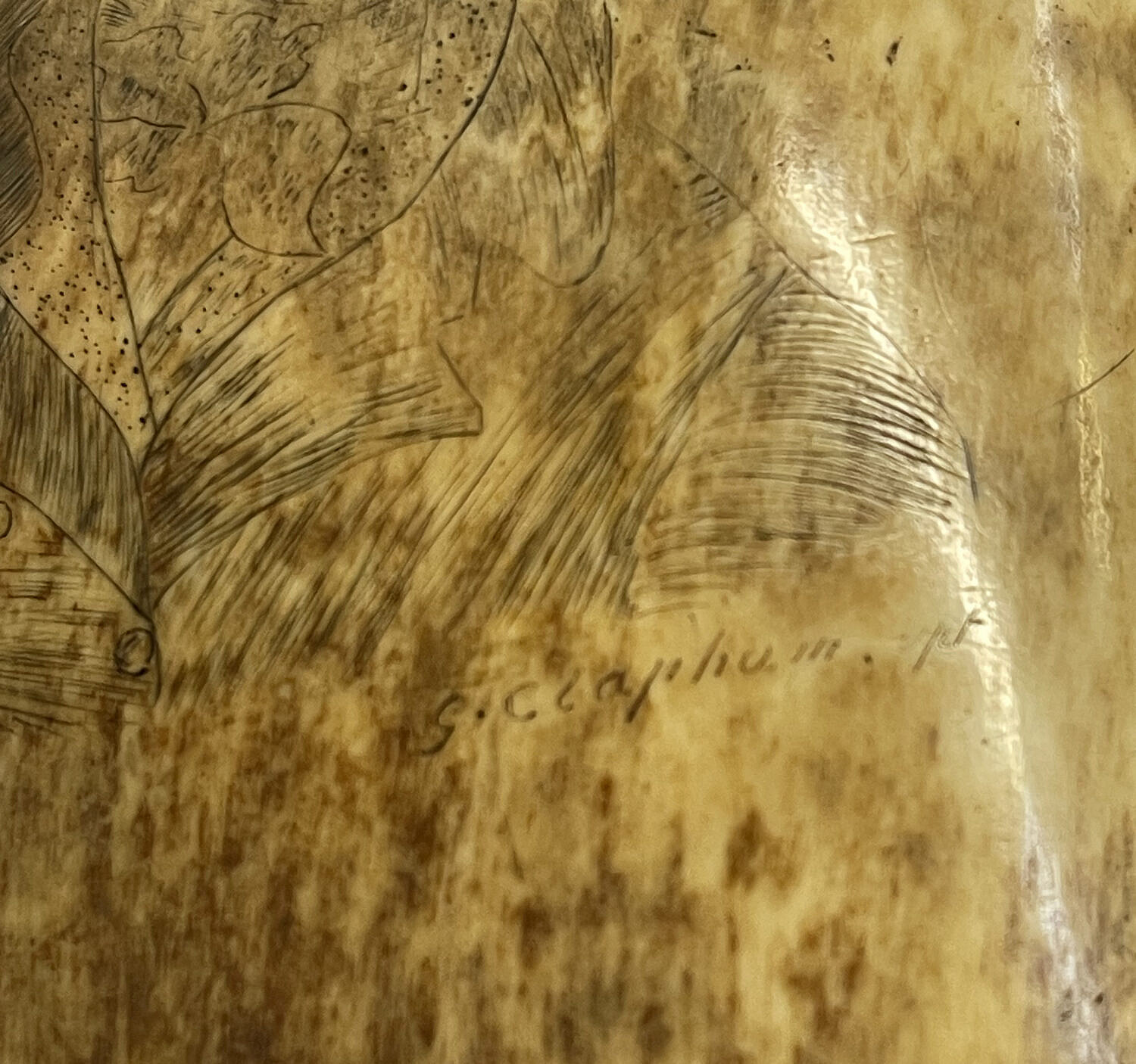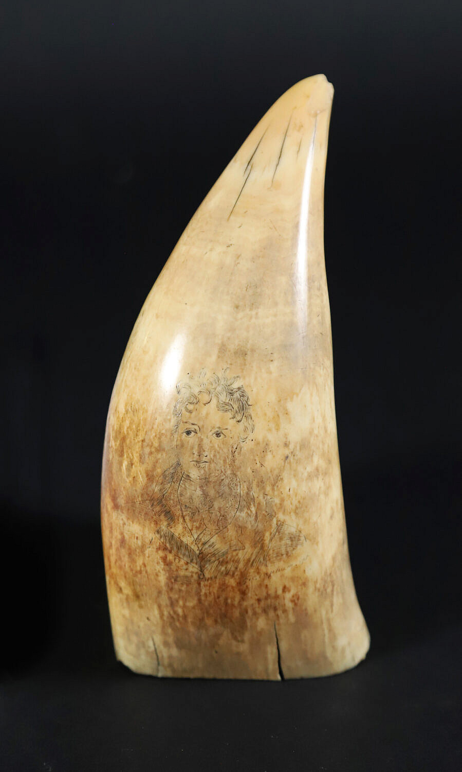 Scrimshaw Whale Tooth Portrait of a Gentleman, 19th Century Consign Now Dept19th Century Scrimshaw, Decorative ArtsSizeHeight 6.5 in. Width 2.5 in. Scrimshaw Sperm Whale Tooth, 19th Century, engraved with faint half portrait of a gentleman with wind blown hair, signed G. Clapnum pt Height 6.5 in. Width 2.5 in. Please note that this auction has ended. Click here for an overview of this auction.