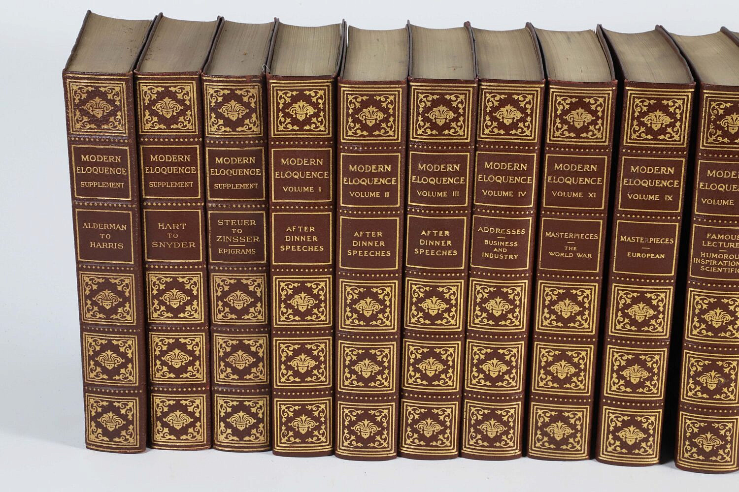 11 Volumes: “Modern Eloquence” with 3 Supplements, 14 books total copyright 1923 by Modern Eloquence Corporation