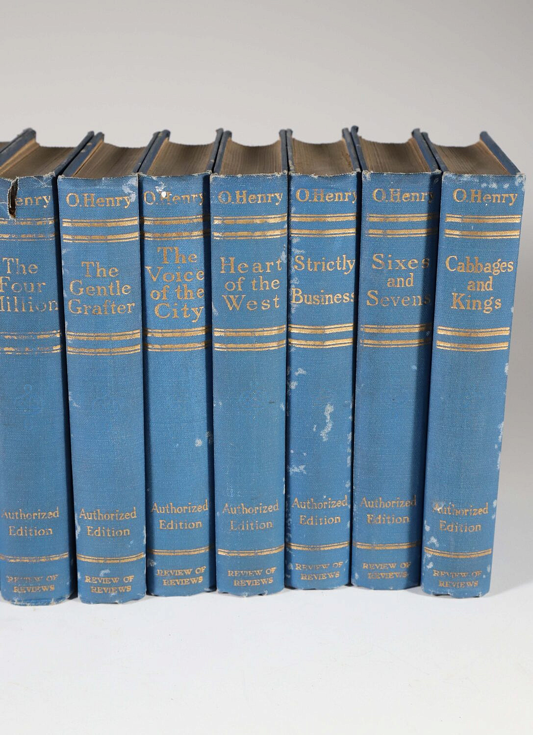 12 Volumes “O. Henry” Review of Reviews, including Rolling Stones, Whirligigs, The Trimmed Lamp, Options, Roads of Destiny, The Four Million, The Gentle Grafter, The Voice of the City, Heart of the West, Strictly Business, Sixes and Sevens, and Cabbages and Kings.