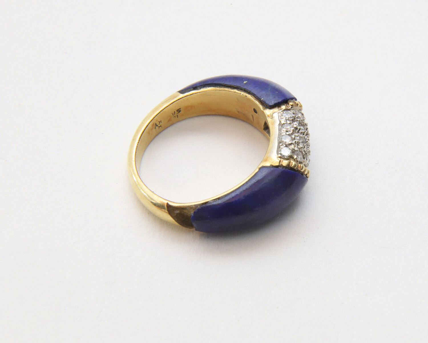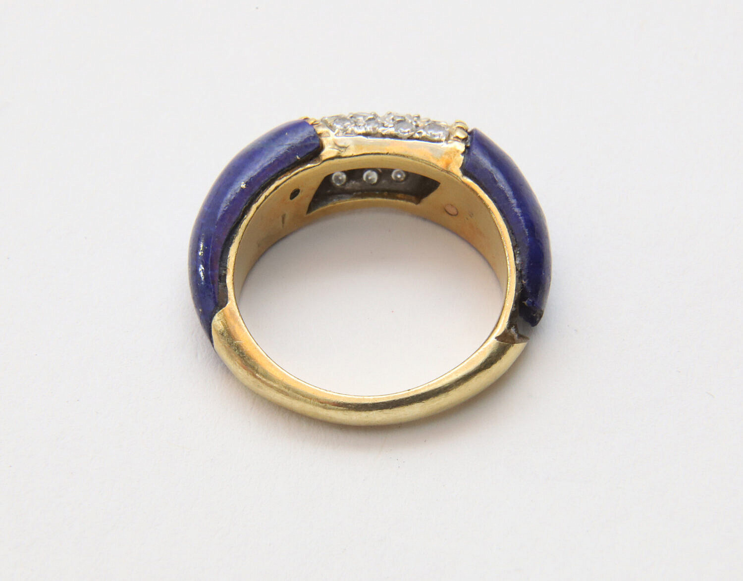 18k Gold Lapis and Diamond Ring, Set With 20 Small Diamonds, 2mm size lapis missing from lower side of ring