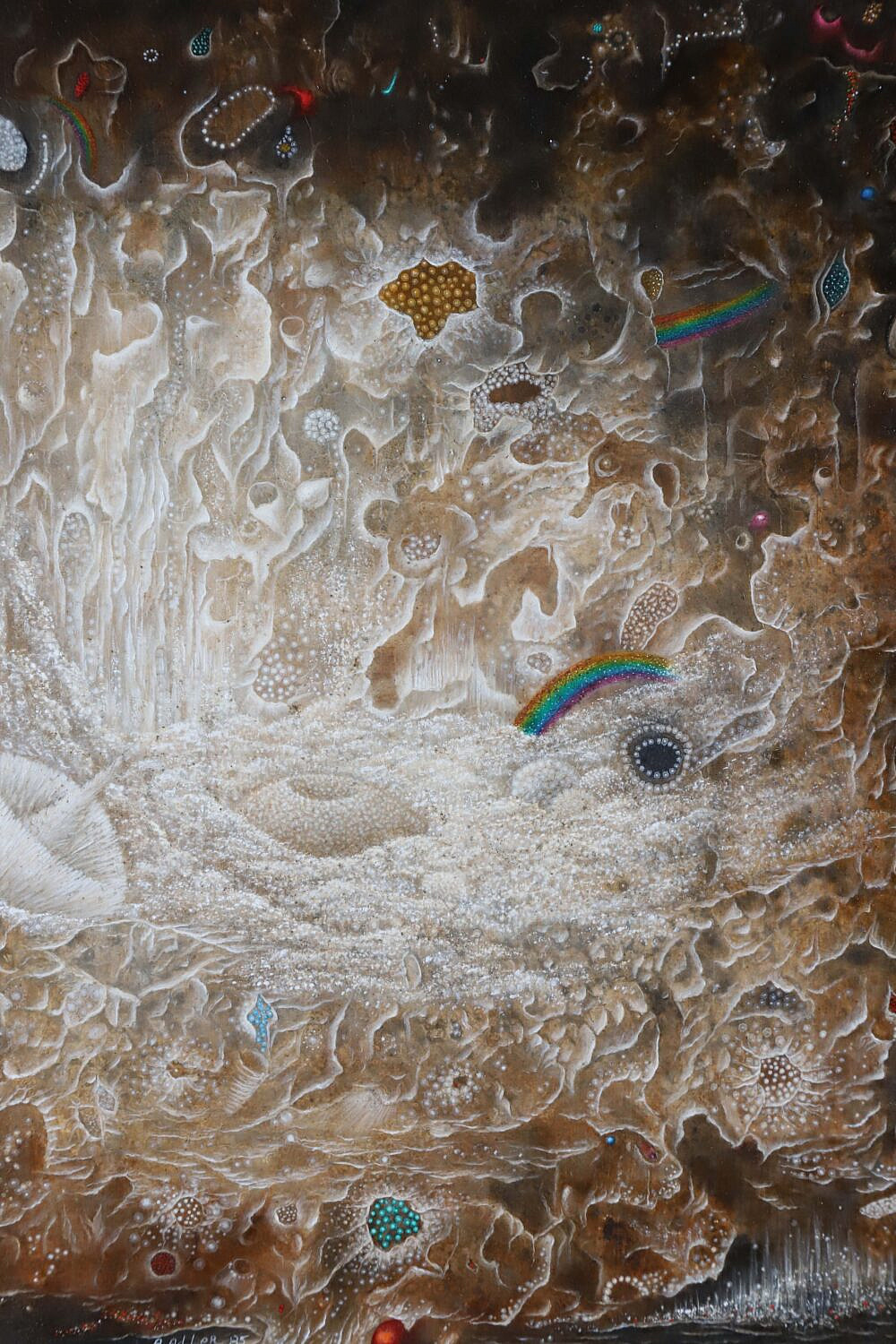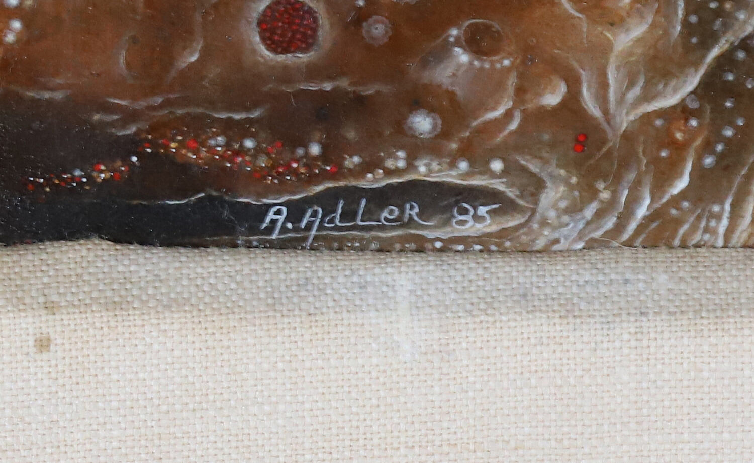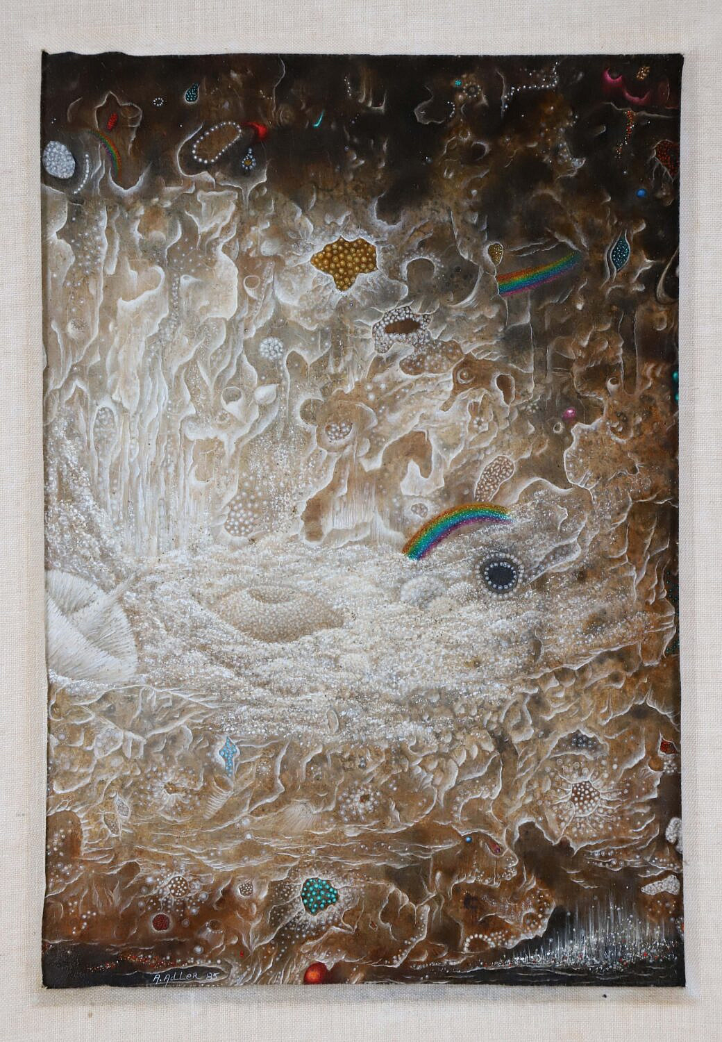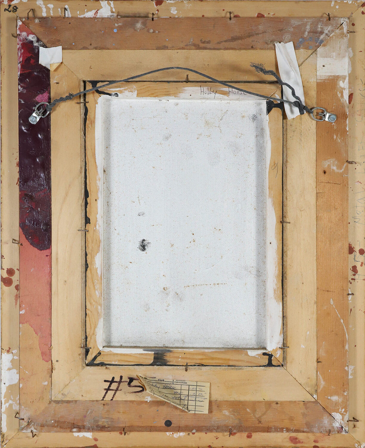 A. Adler Abstract Acrylic on Board “Hobby Horse”, signed lower left A. Adler, ’85, linen mat and gilt frame