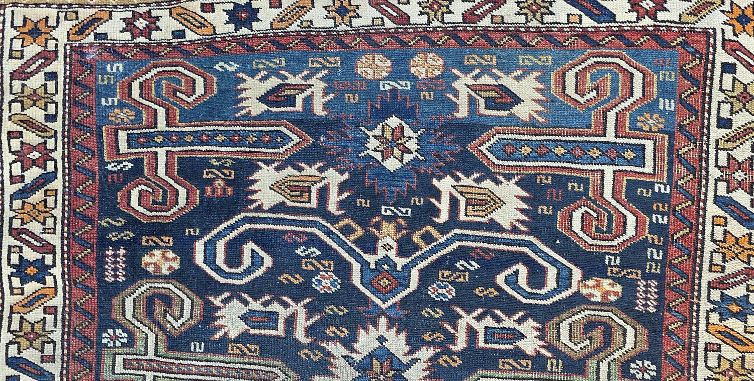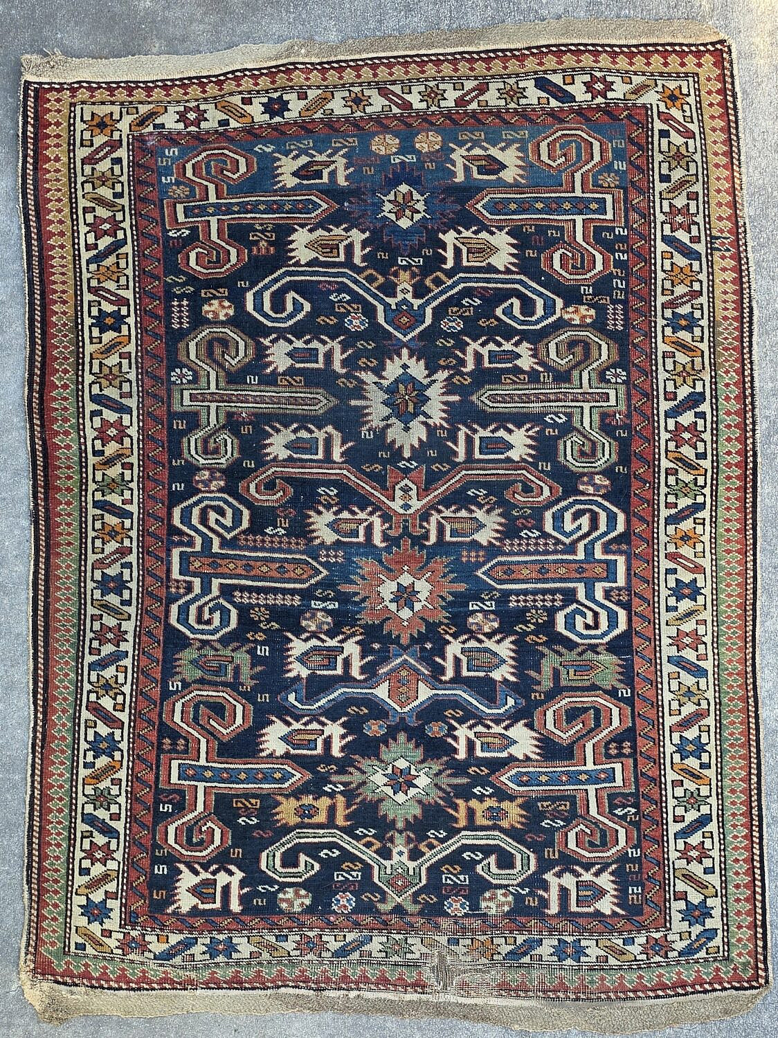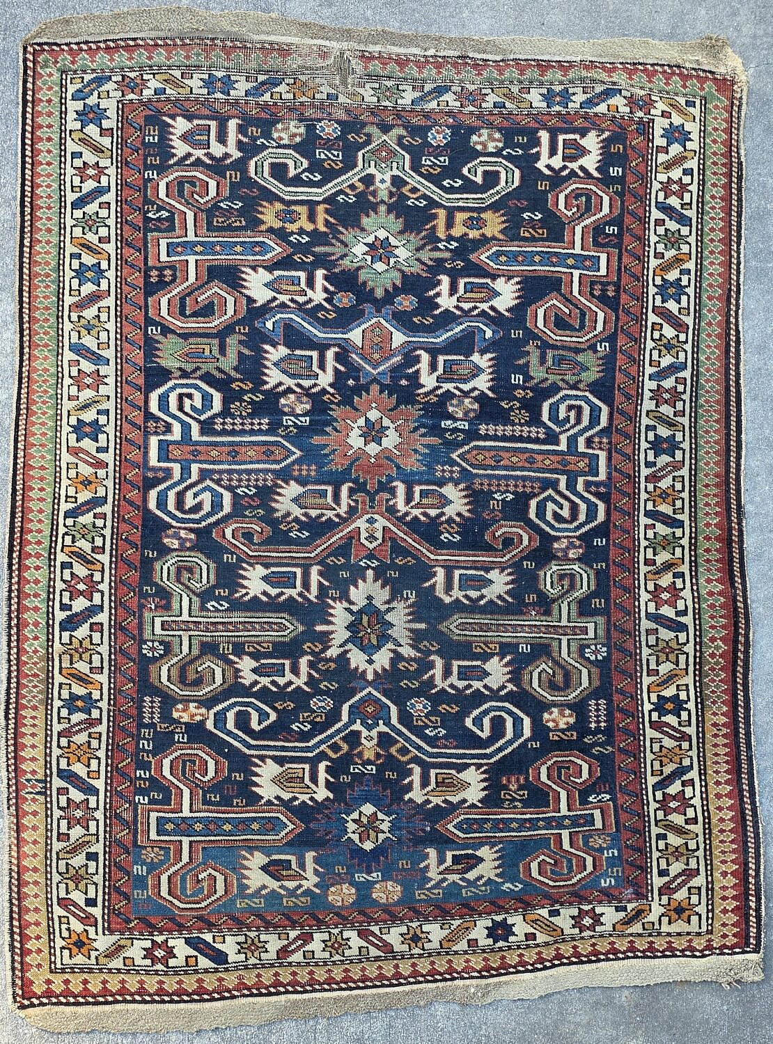 Antique Caucasian Kuba Oriental Scatter Rug Carpet