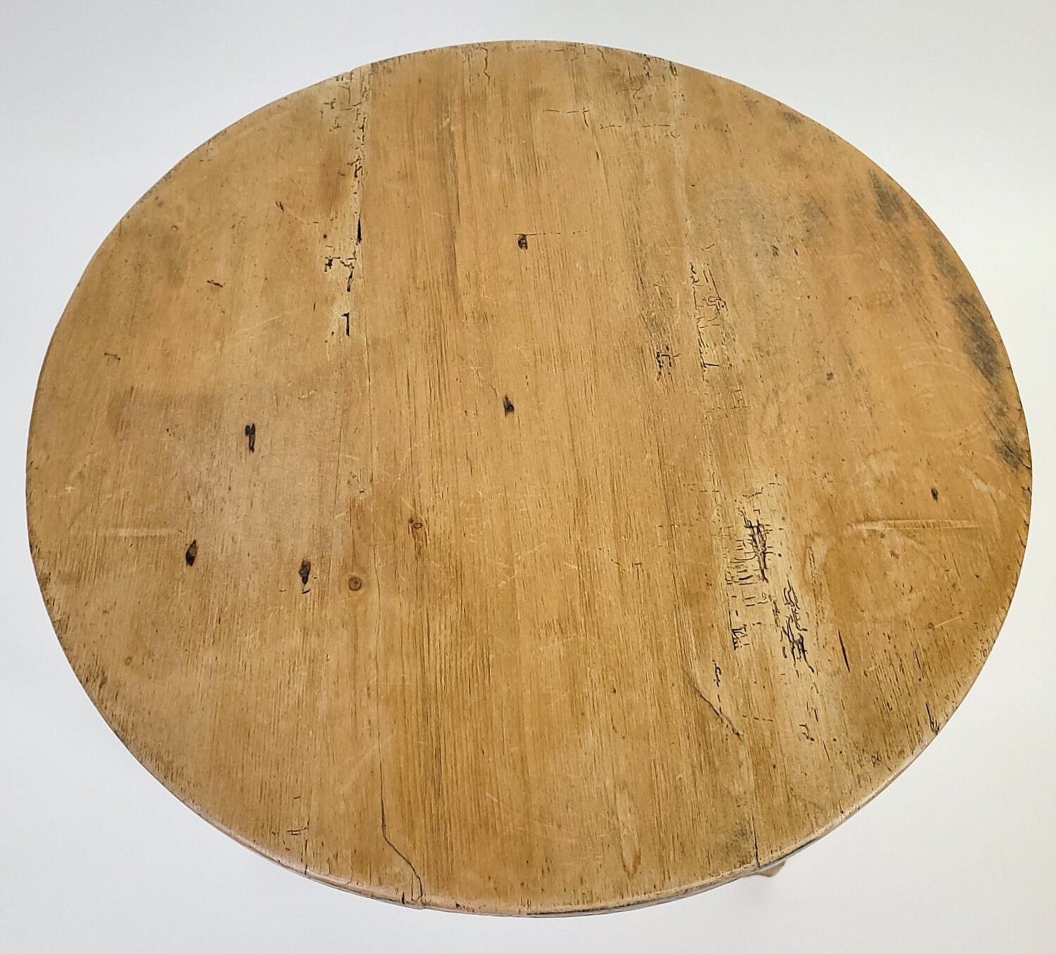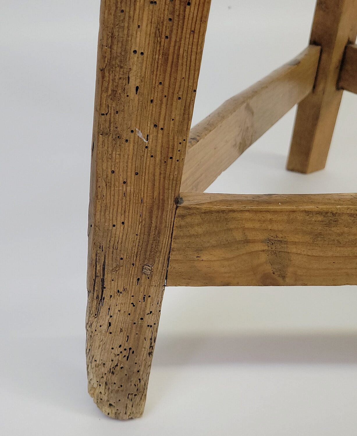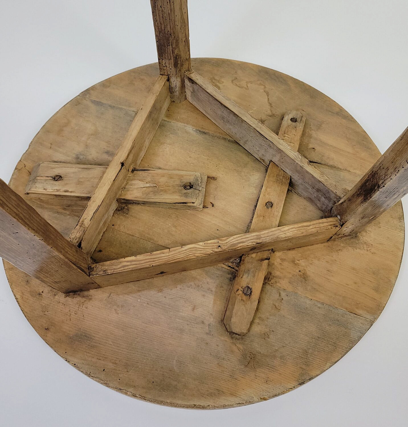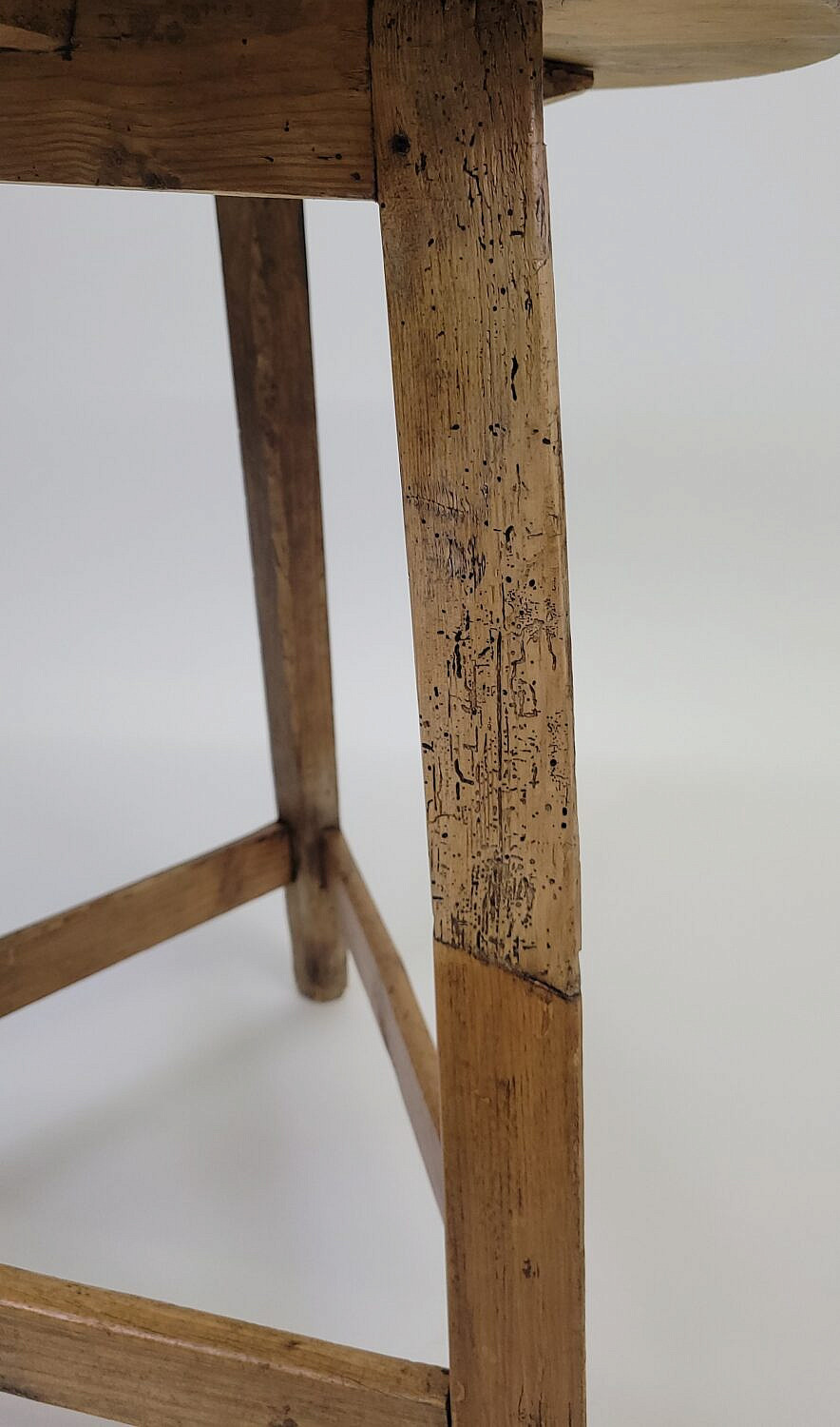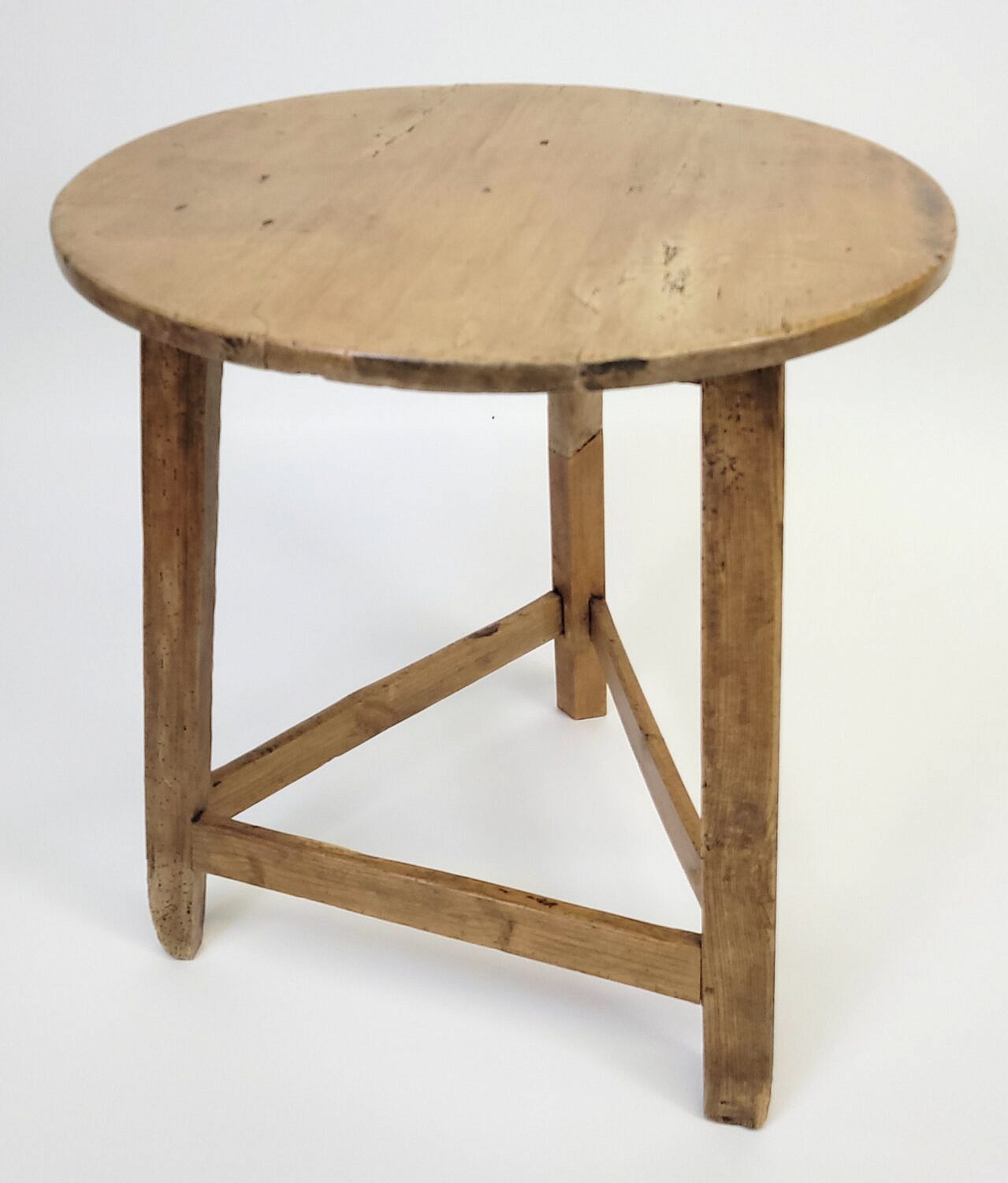 Antique English Pine Cricket Pub Table, 19th century, with triangular lower stretcher.
