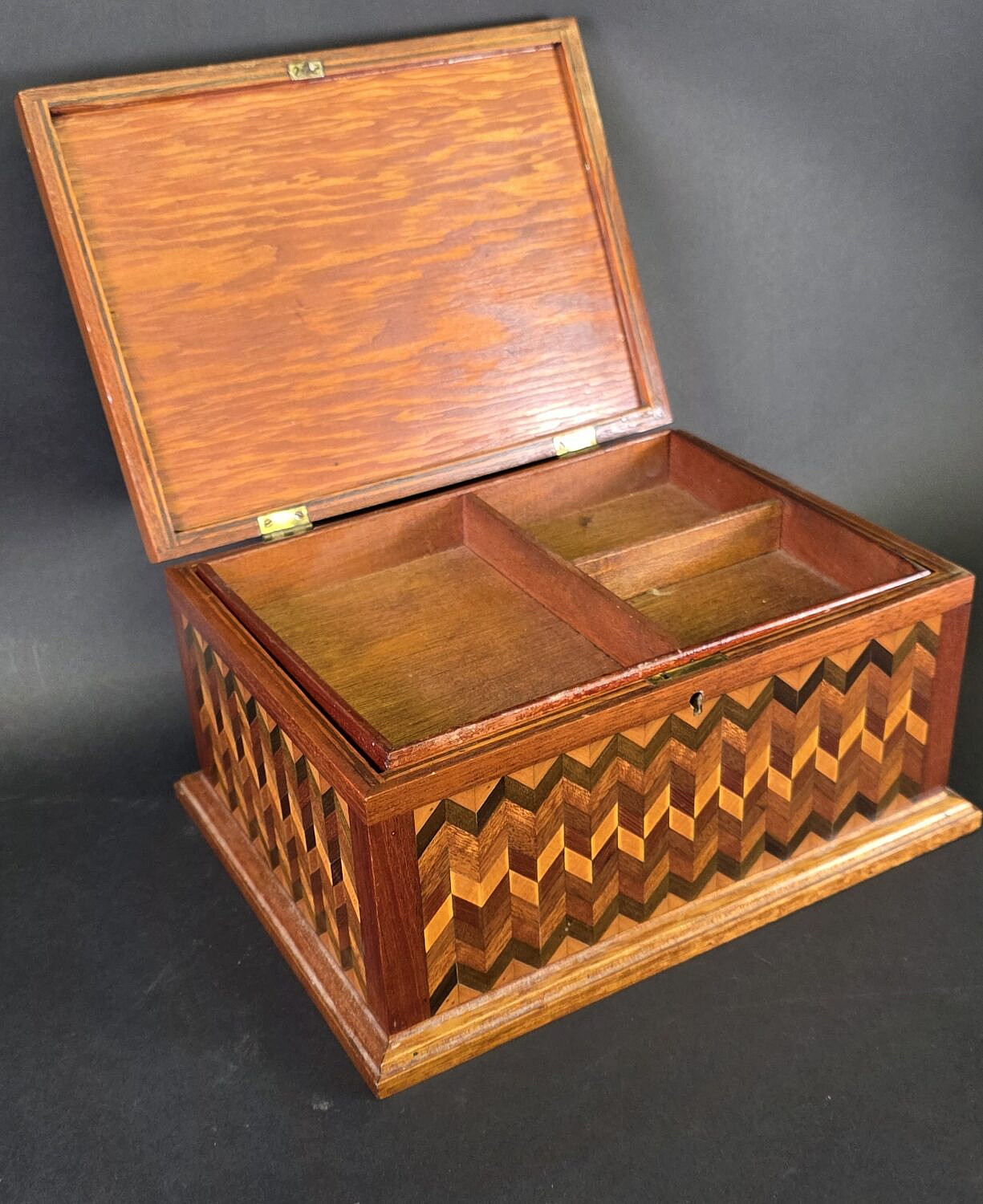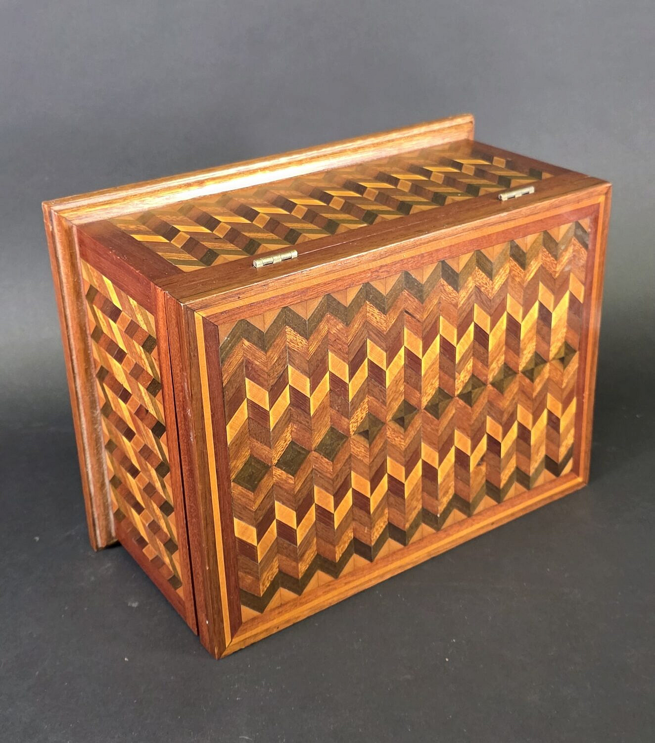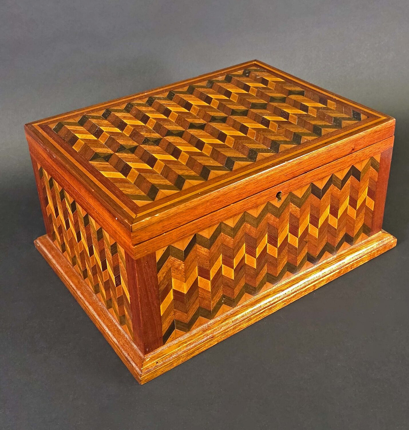 Antique Multiwood Geometric Inlaid Box, 19th century