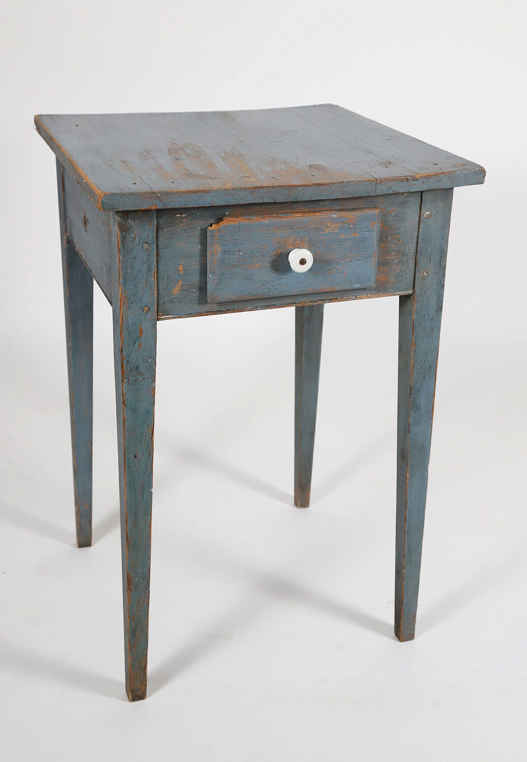 Antique Primitive Blue Painted One Drawer Hepplewhite Stand