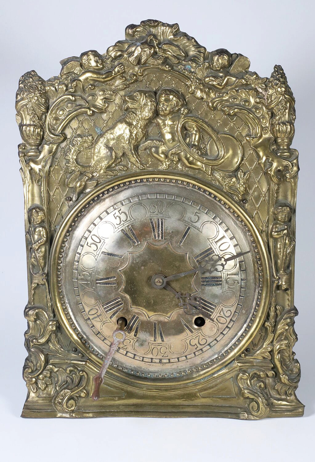 Antique Repousse Brass Dutch Wall Clock, 19th Century